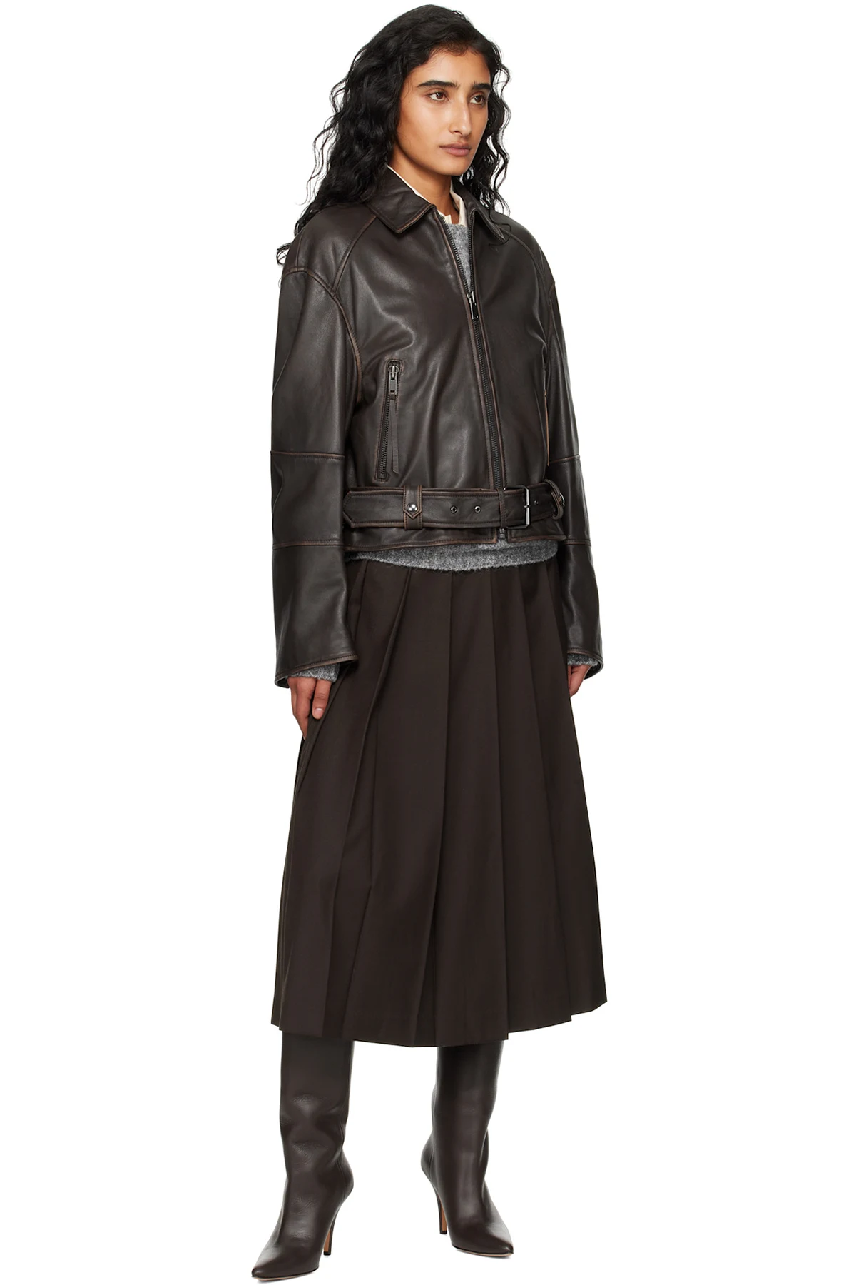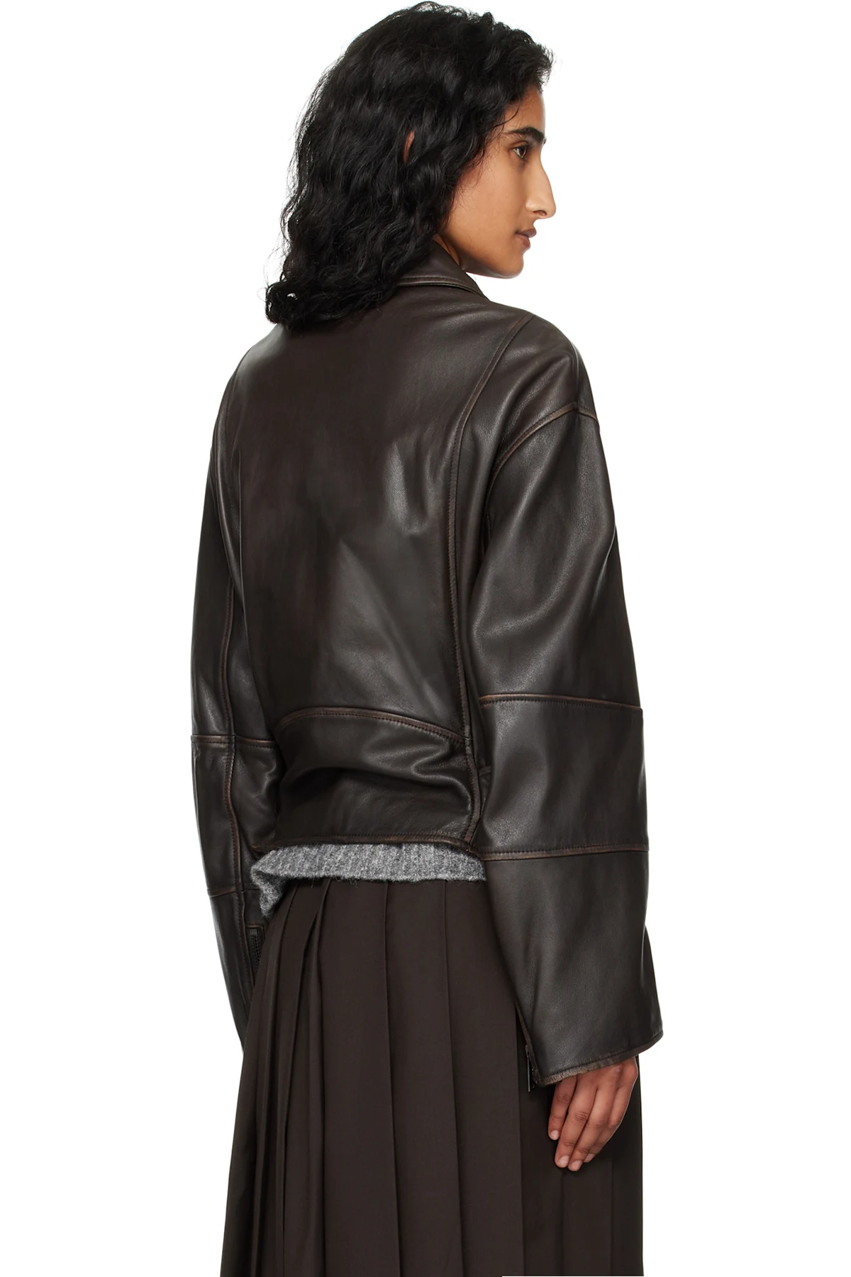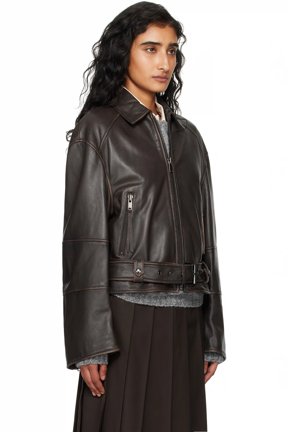Burgundy Carnaby Funnel Neck Leather Jacket