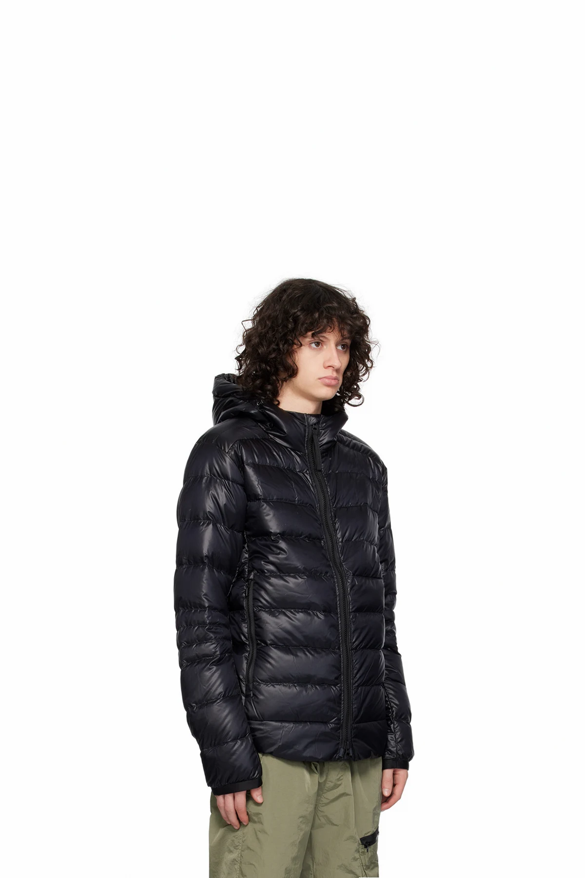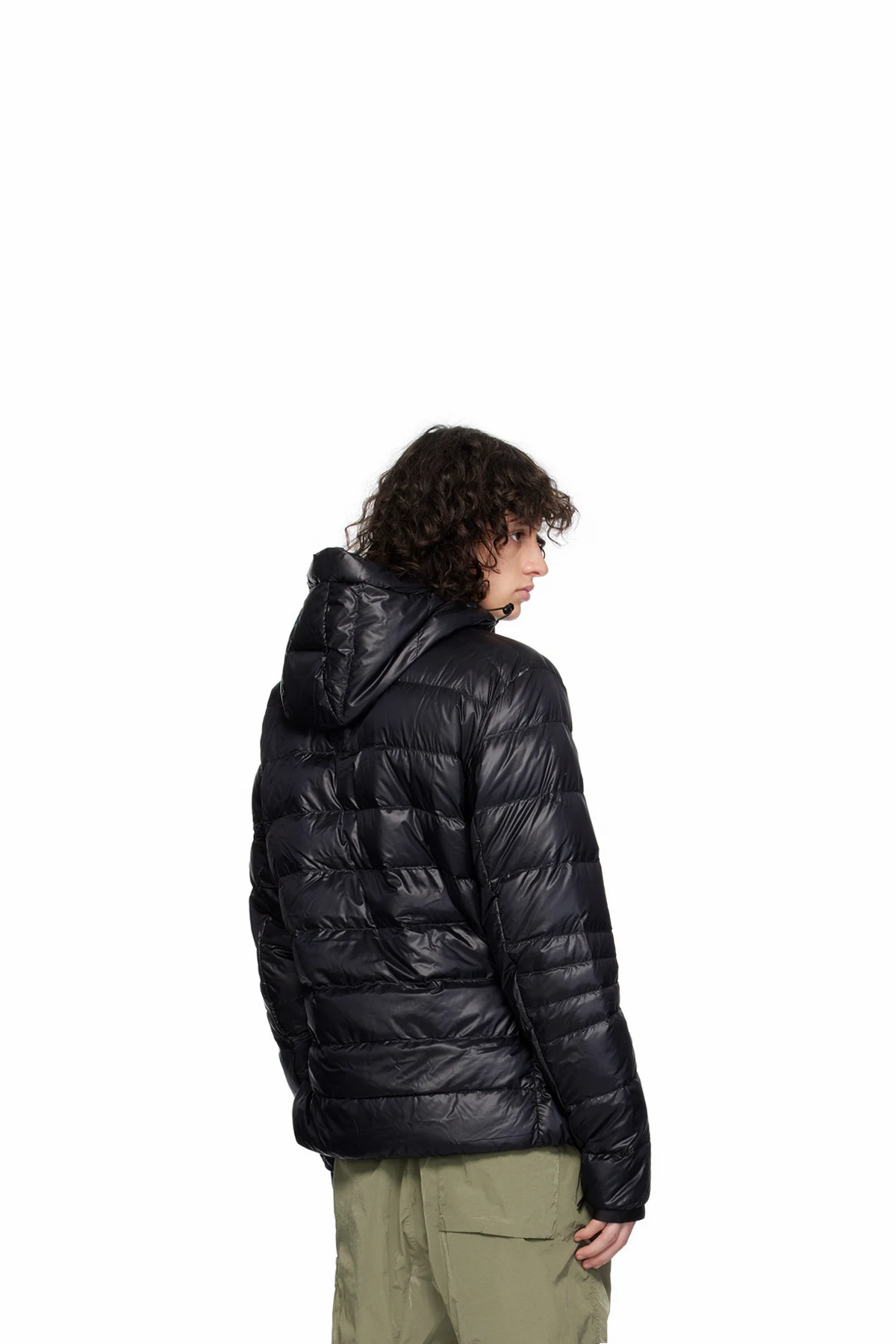 Packable down-filled quilted lightweight nylon ripstop jacket.