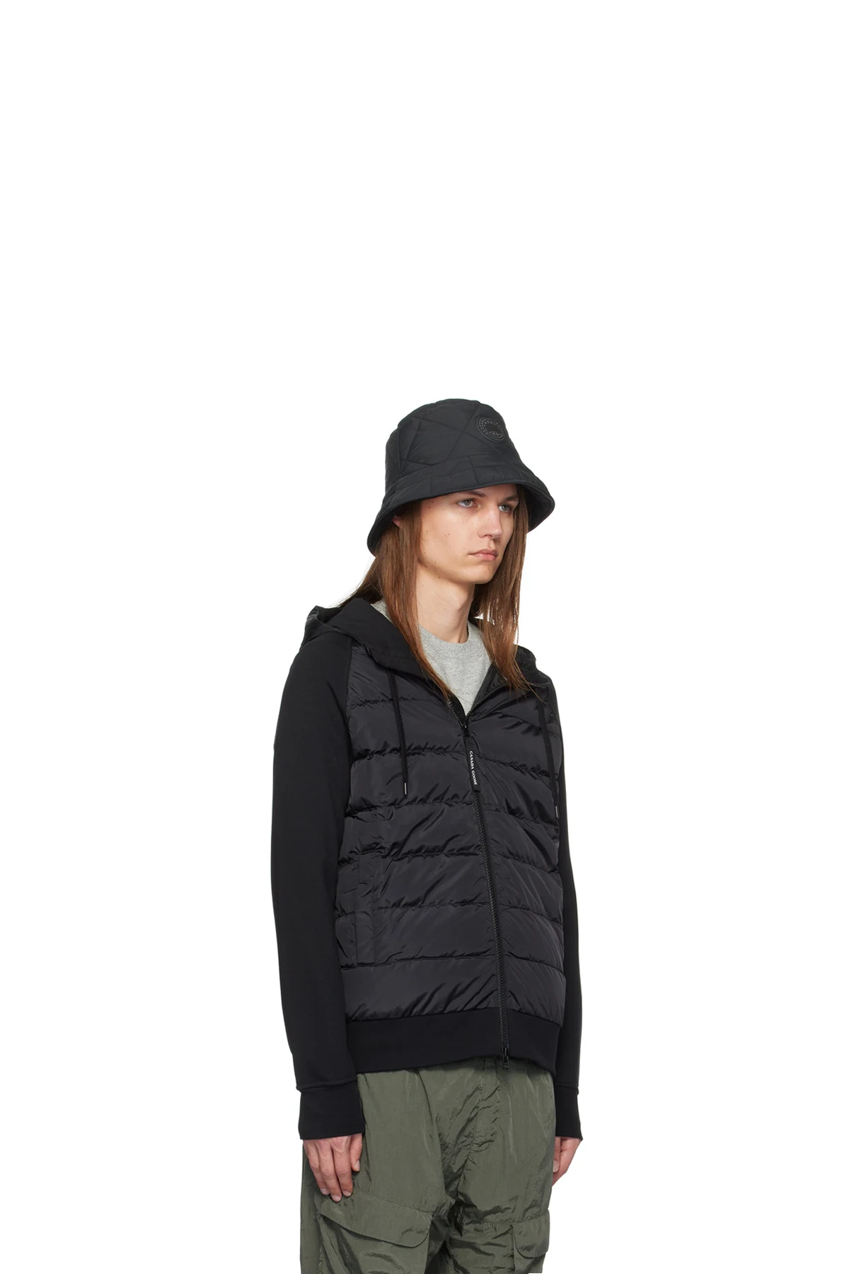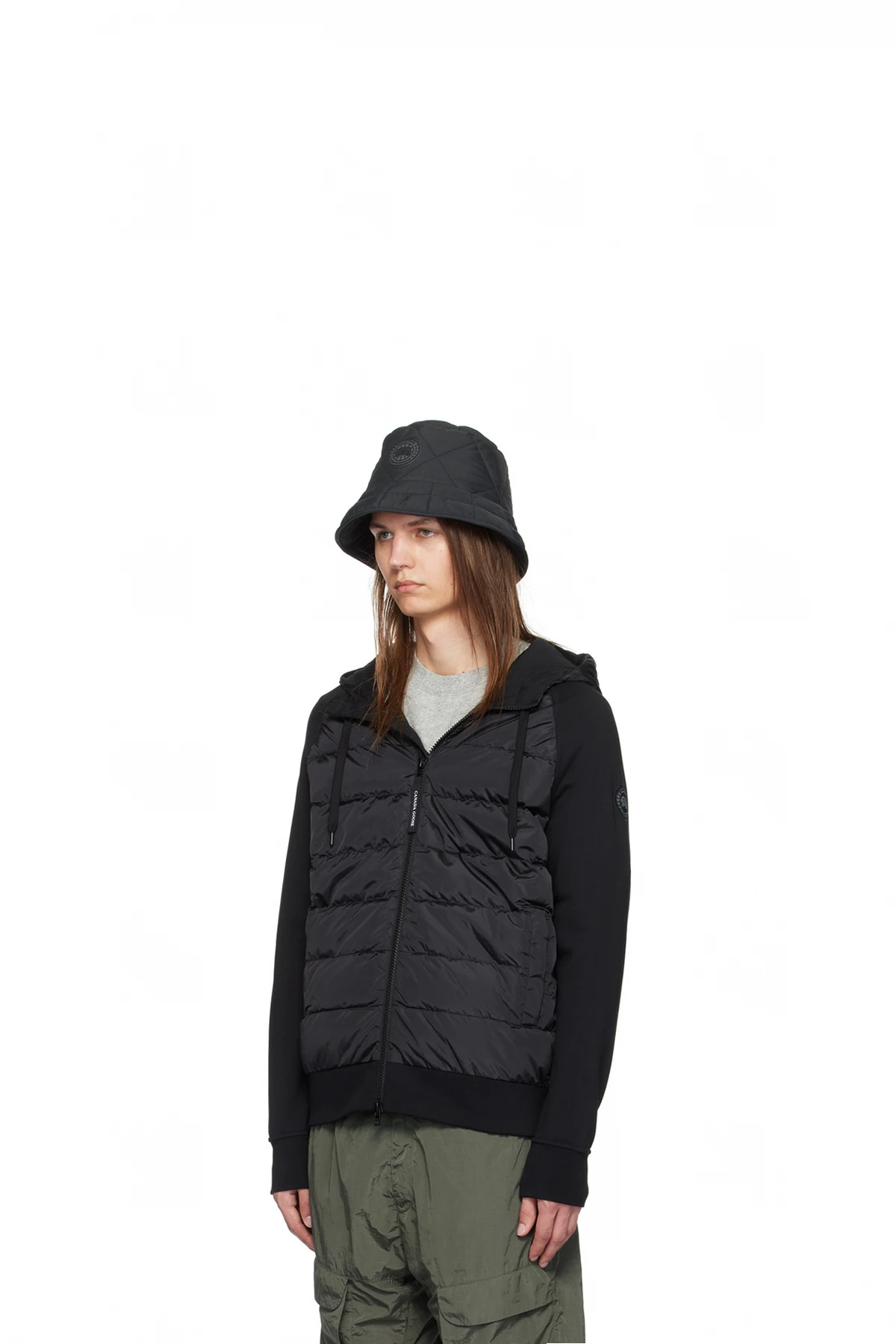 Down-filled quilted French terry and nylon satin jacket. Lightweight and breathable.