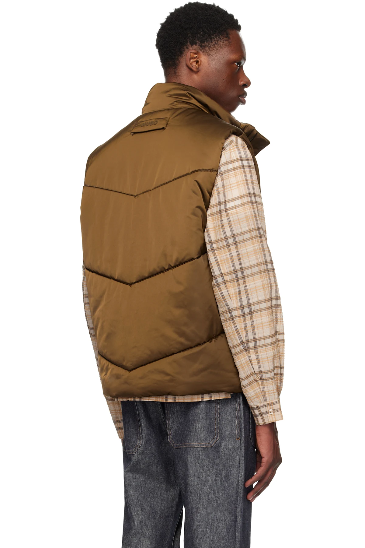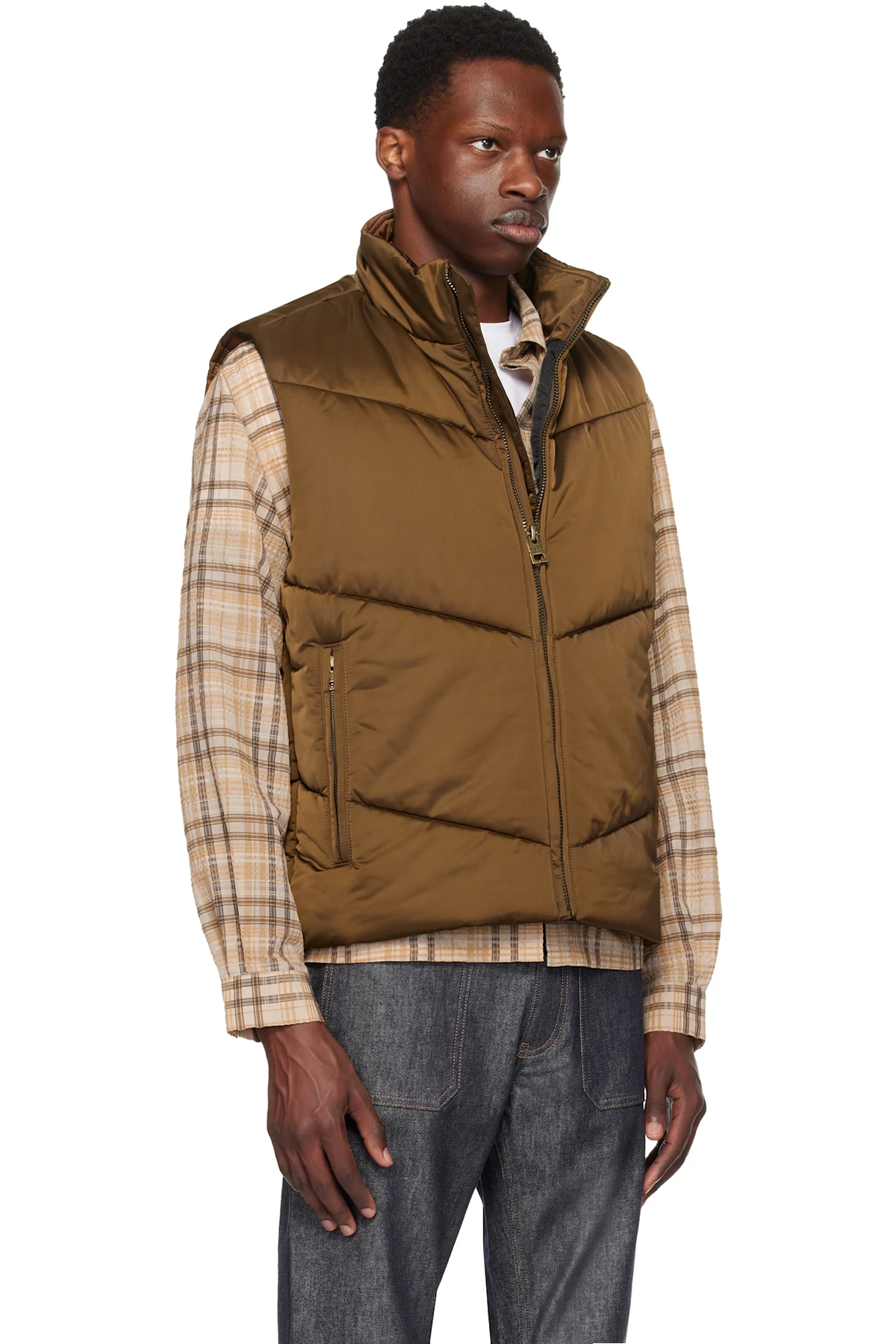 Insulated and quilted polyester satin vest. Water-repellent.
