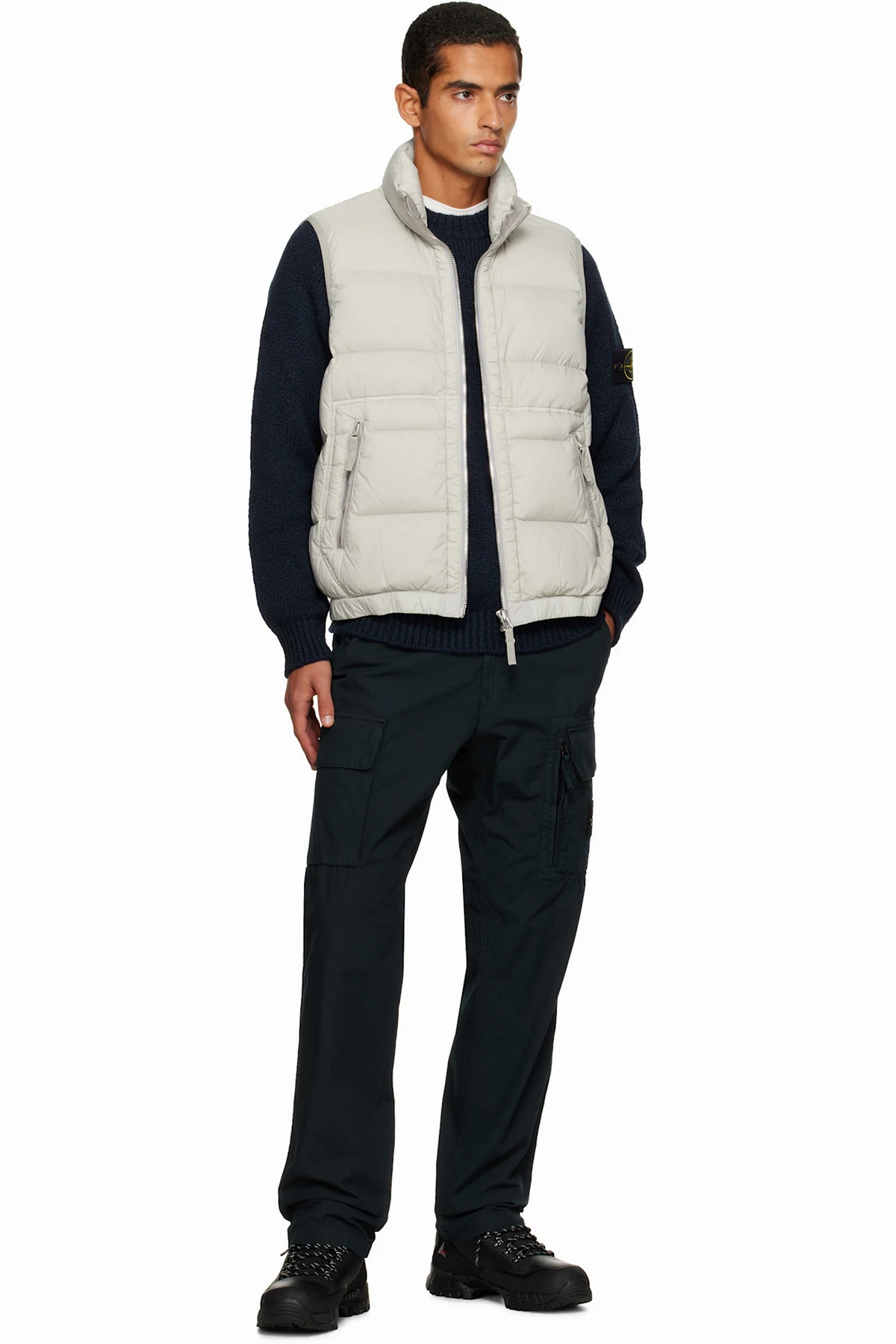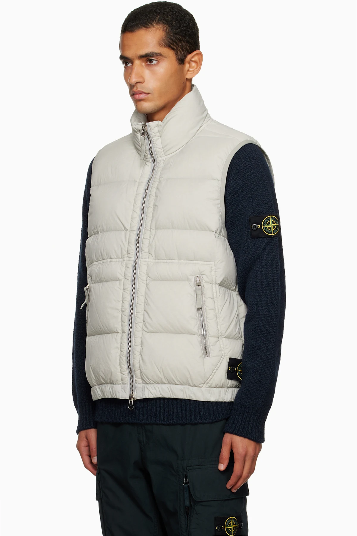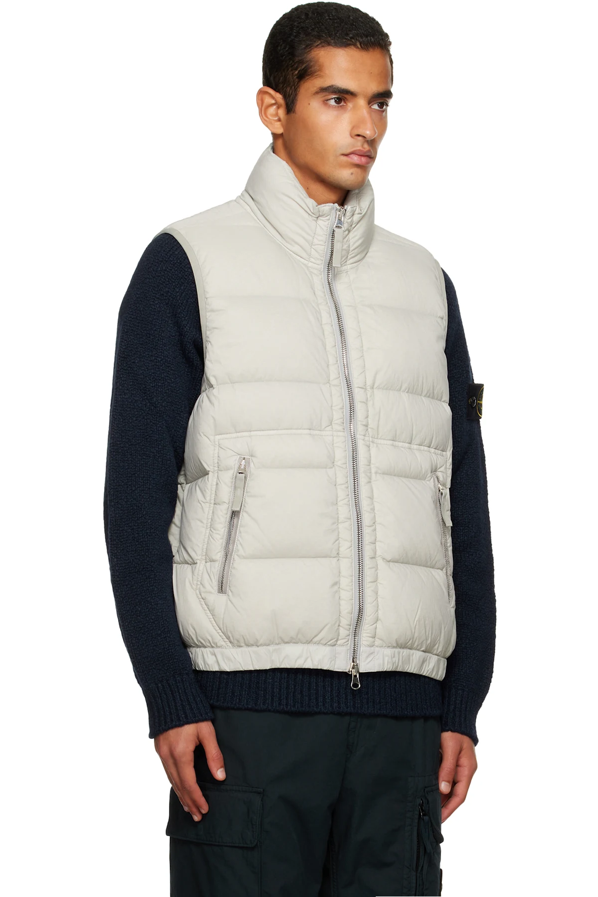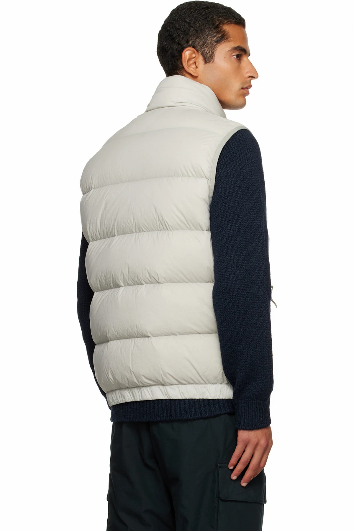 Down-filled, quilted, and crinkled stretch recycled nylon taffeta vest.