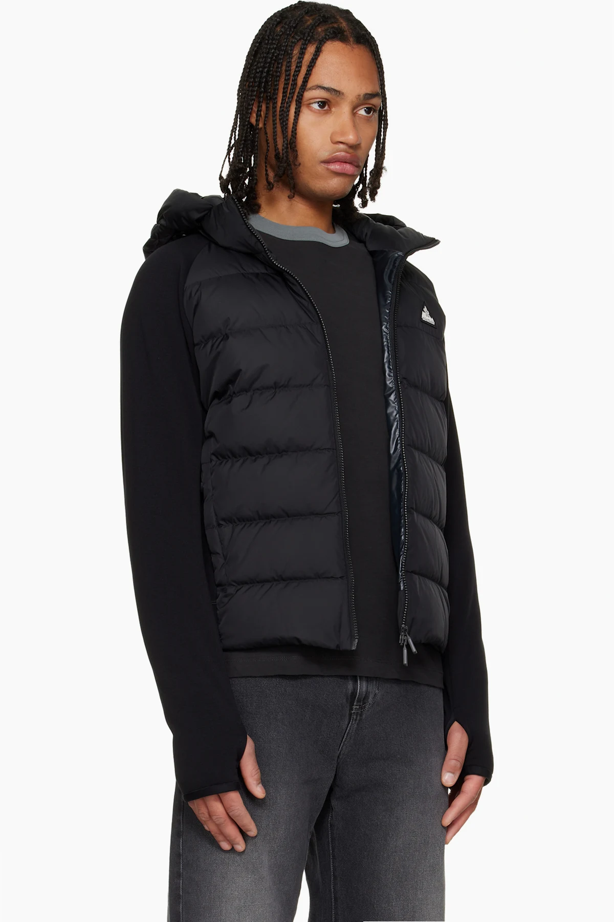Down-filled quilted taffeta and stretch Polartec® fleece jacket.