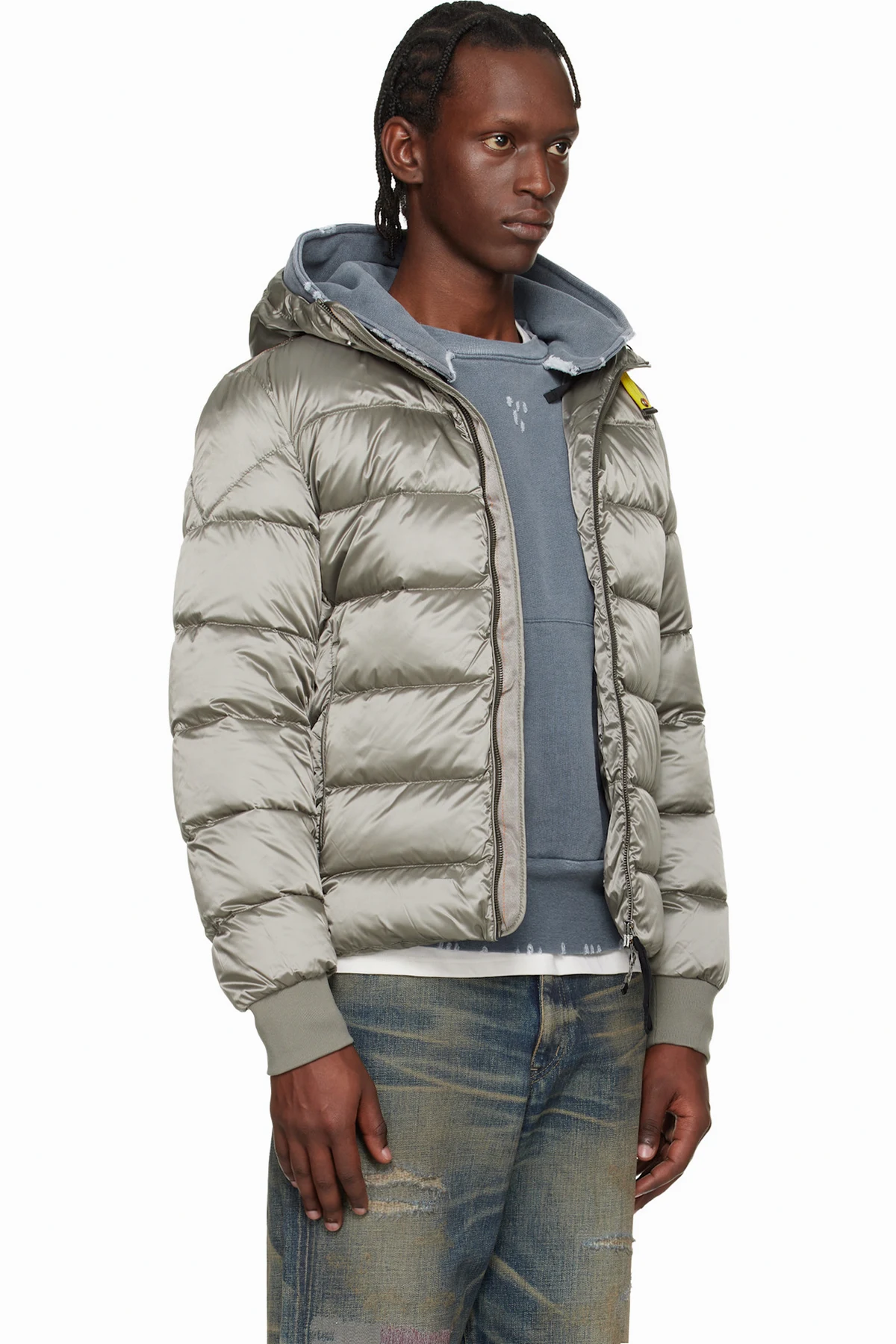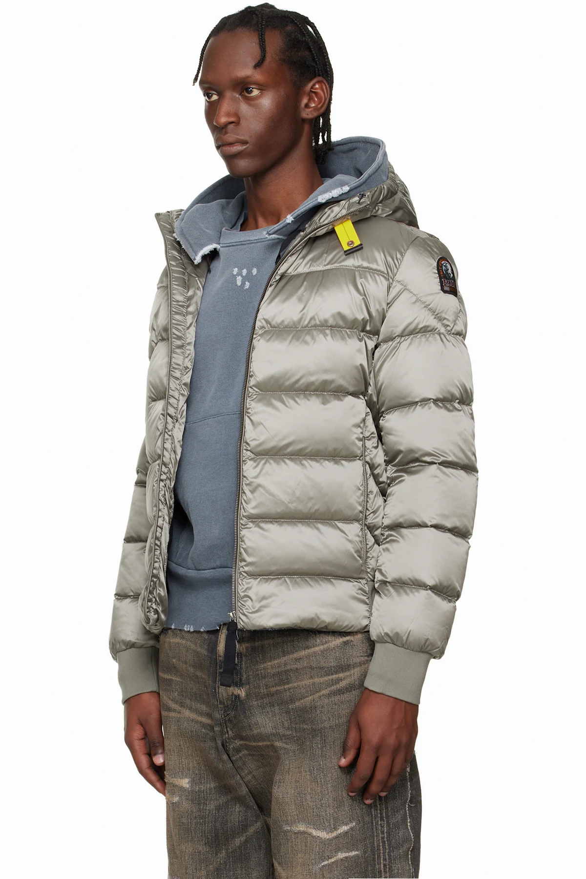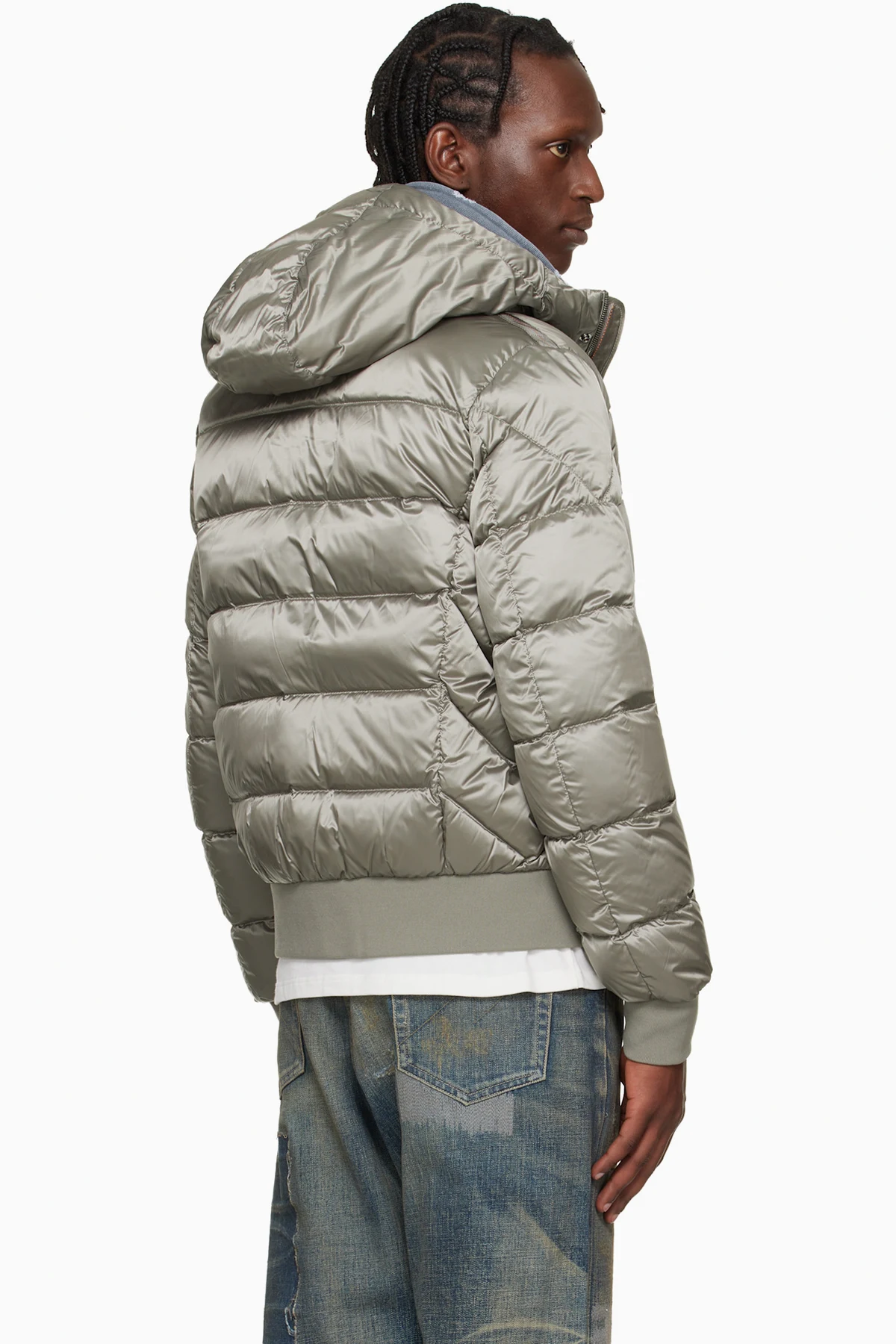 Down-filled and quilted nylon-blend satin jacket.
