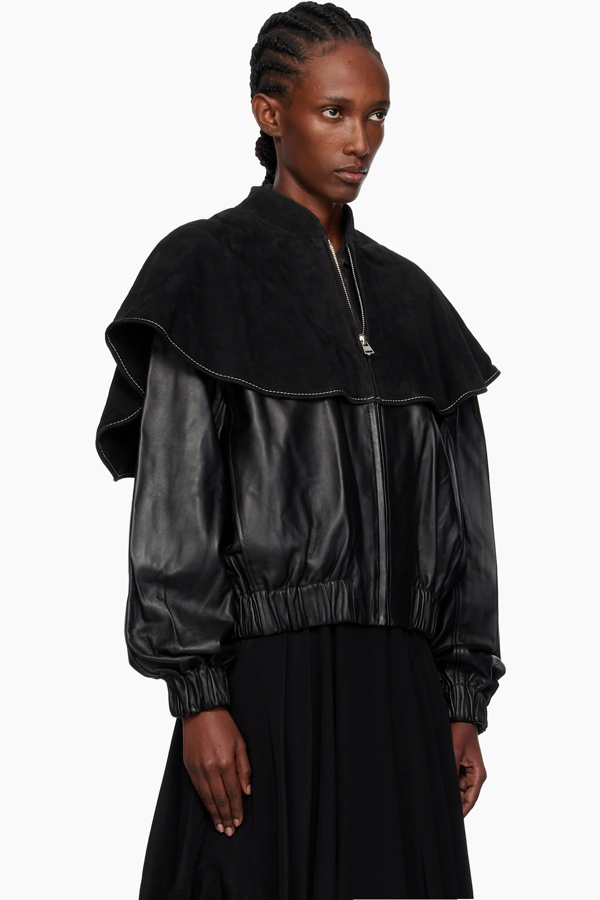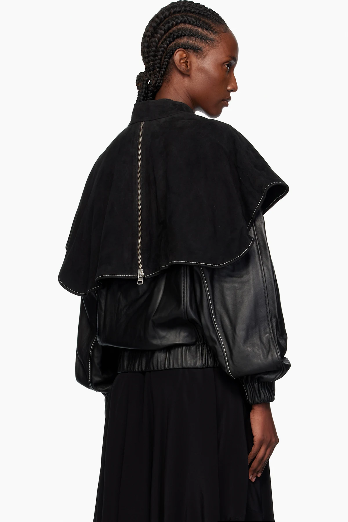 · Goatskin suede shawl-style overlay