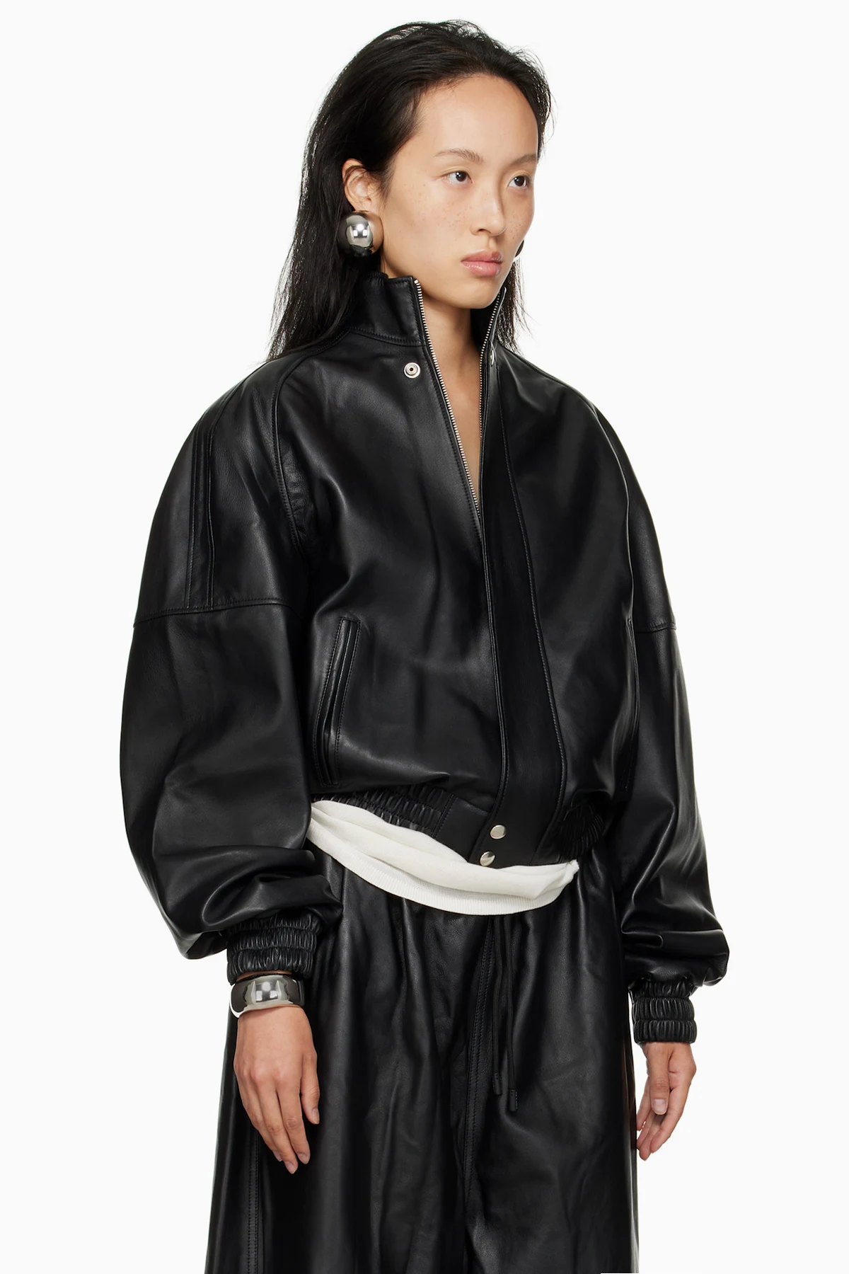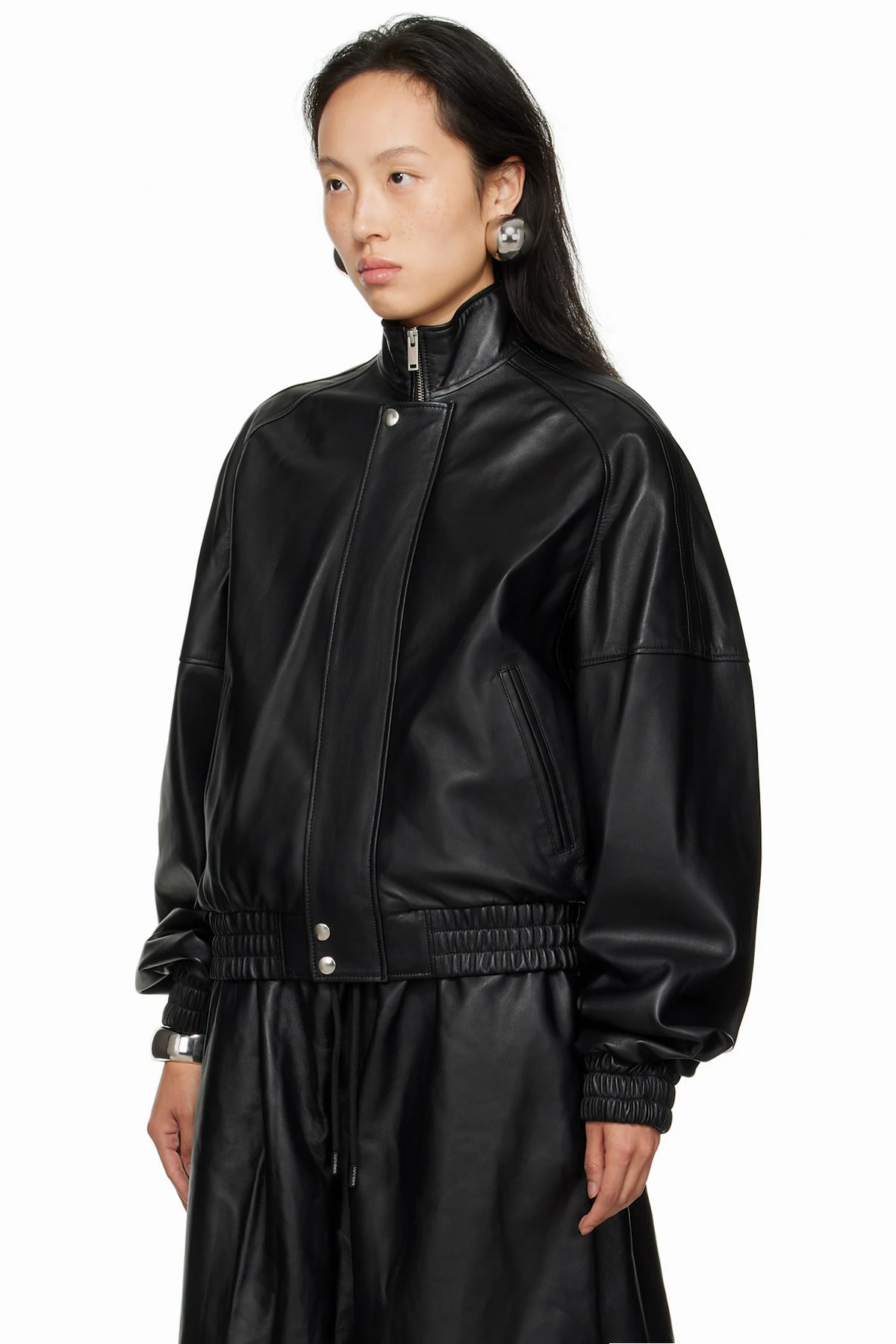 Burgundy Carnaby Funnel Neck Leather Jacket