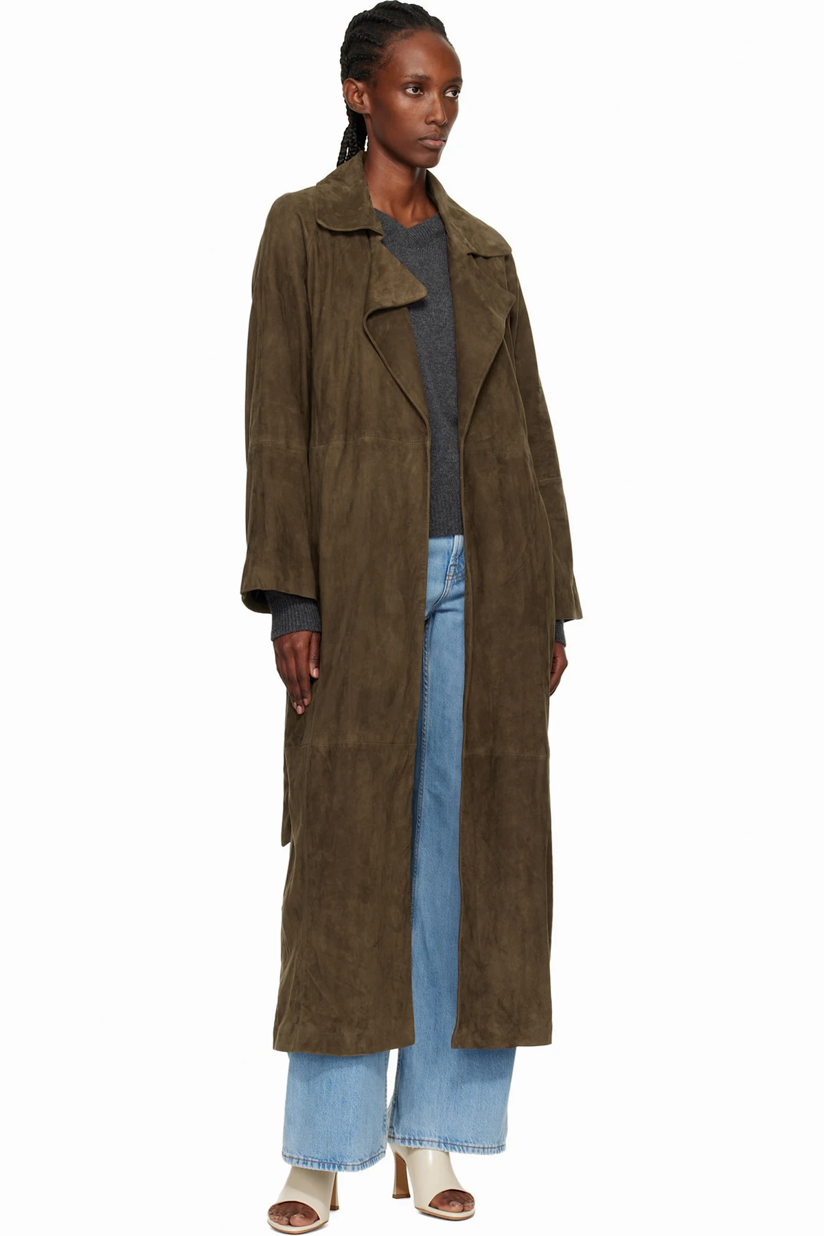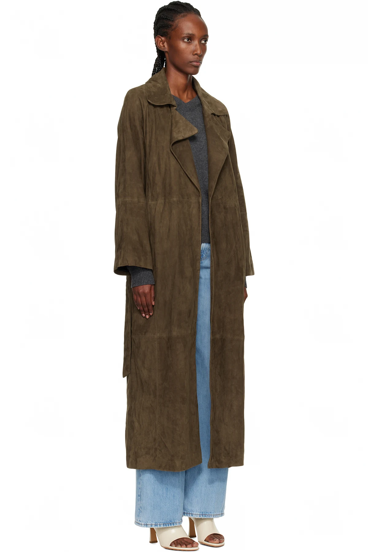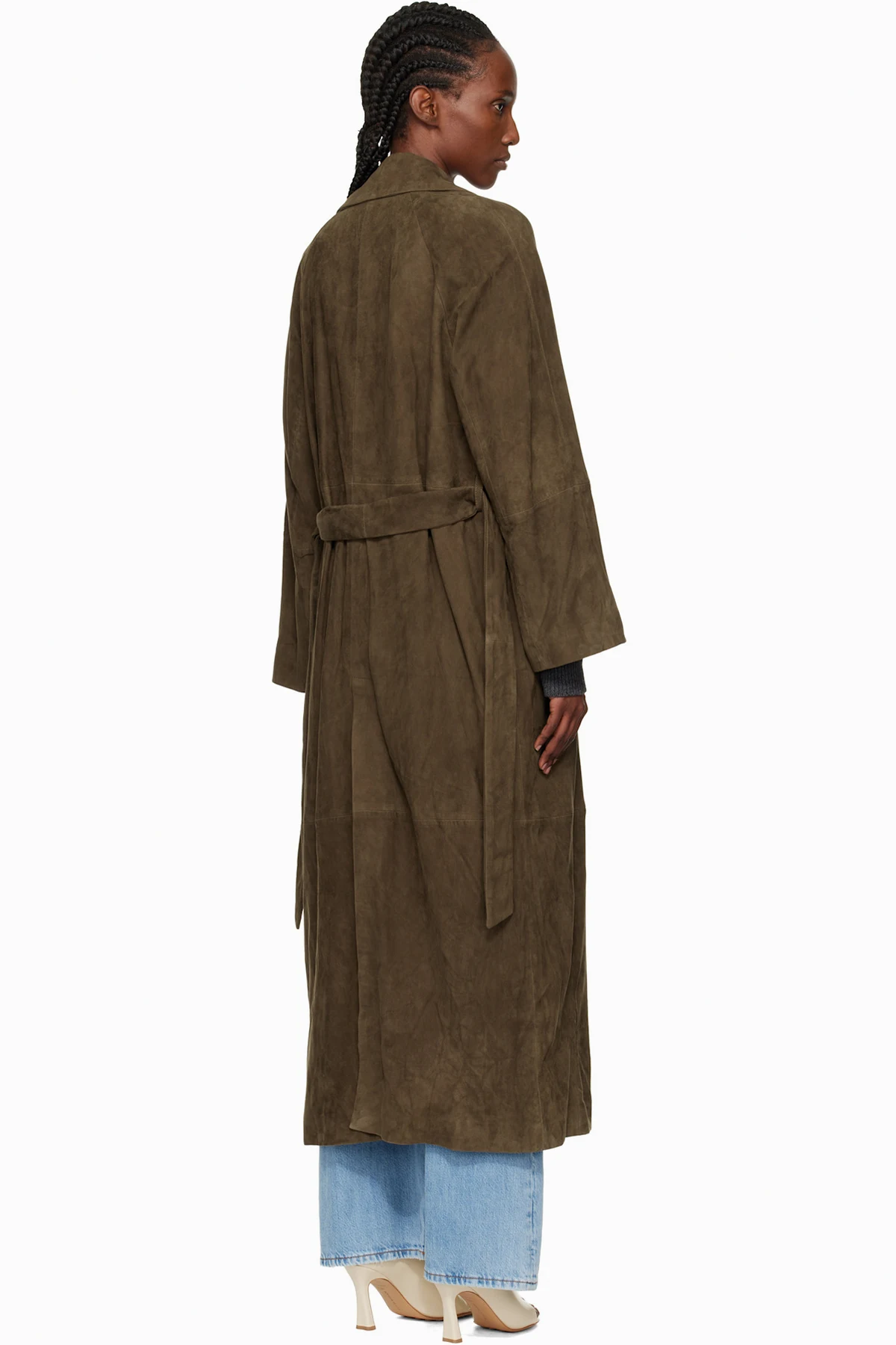 Green Althea Belted Suede Coat