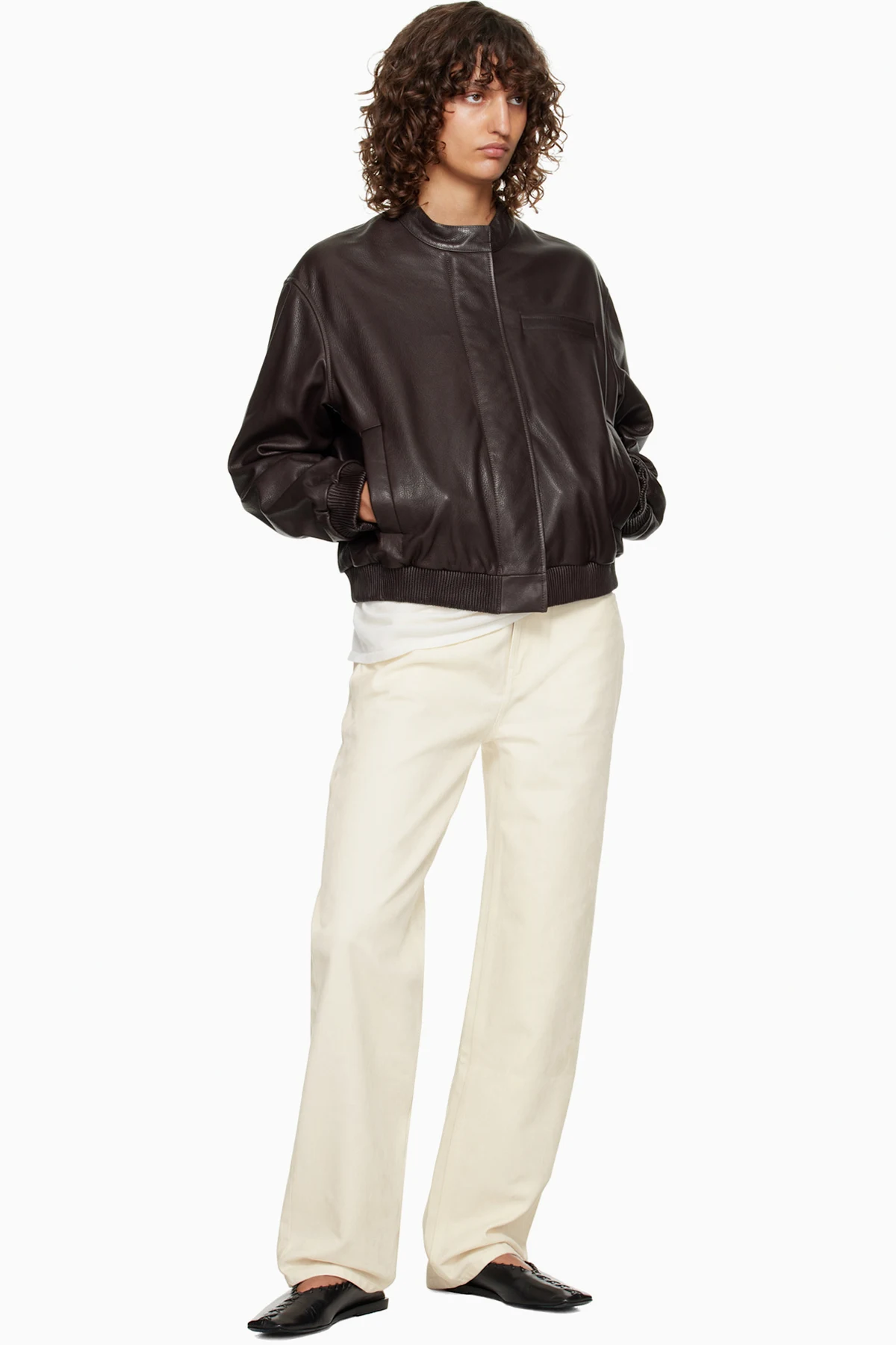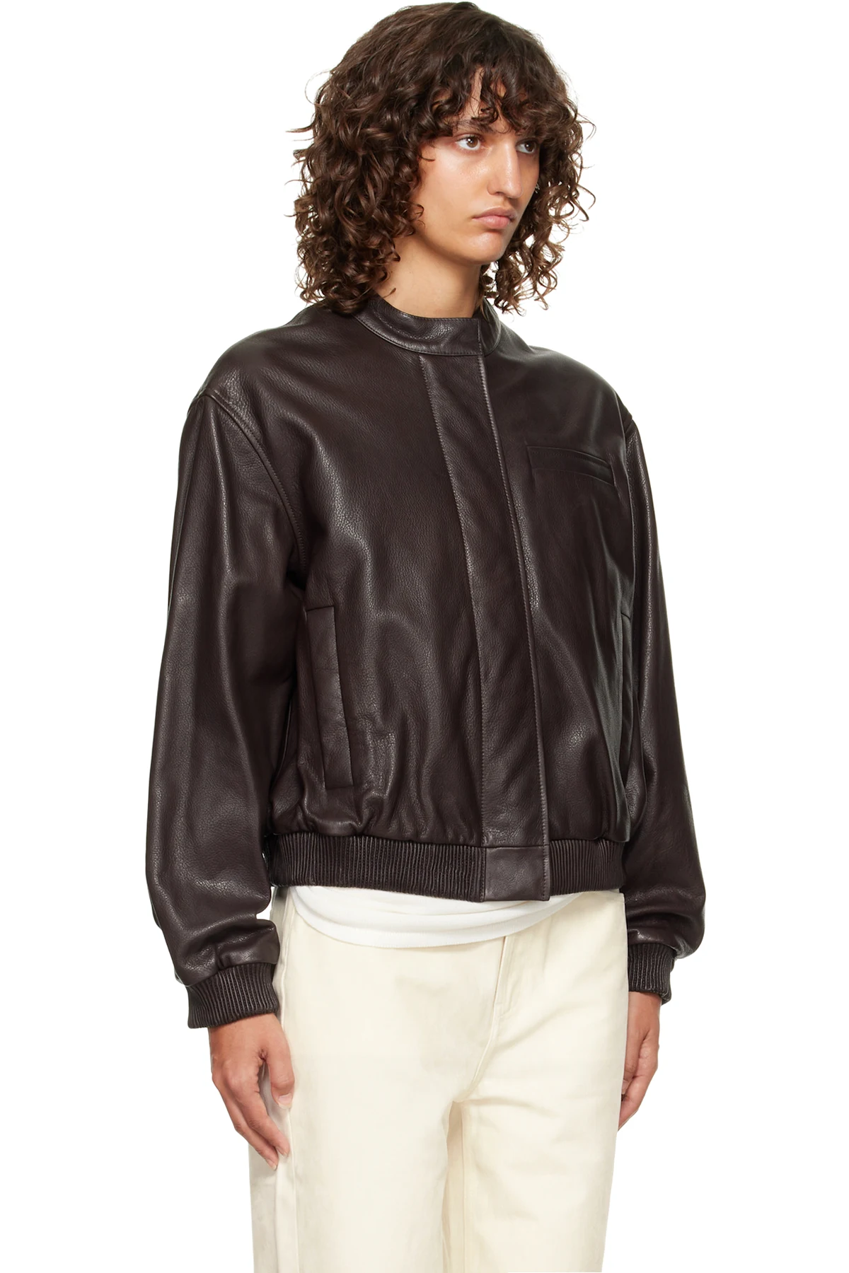 Burgundy Carnaby Funnel Neck Leather Jacket