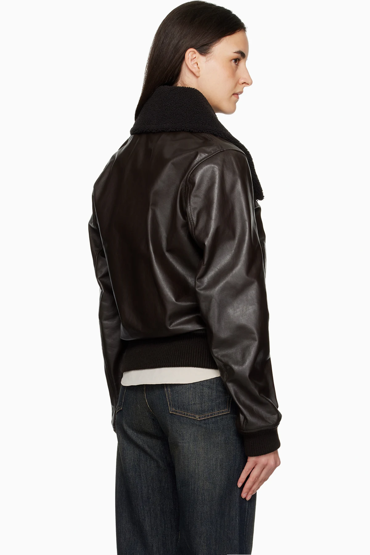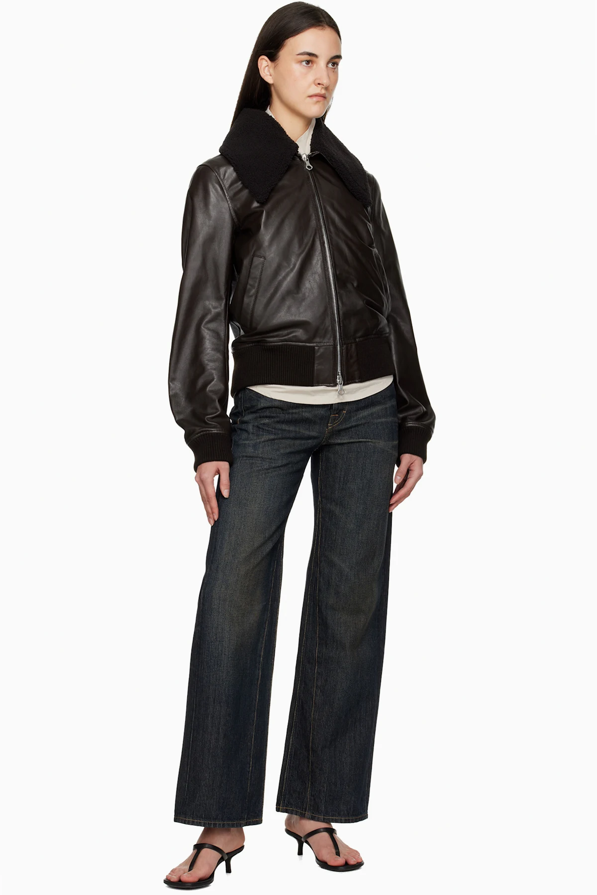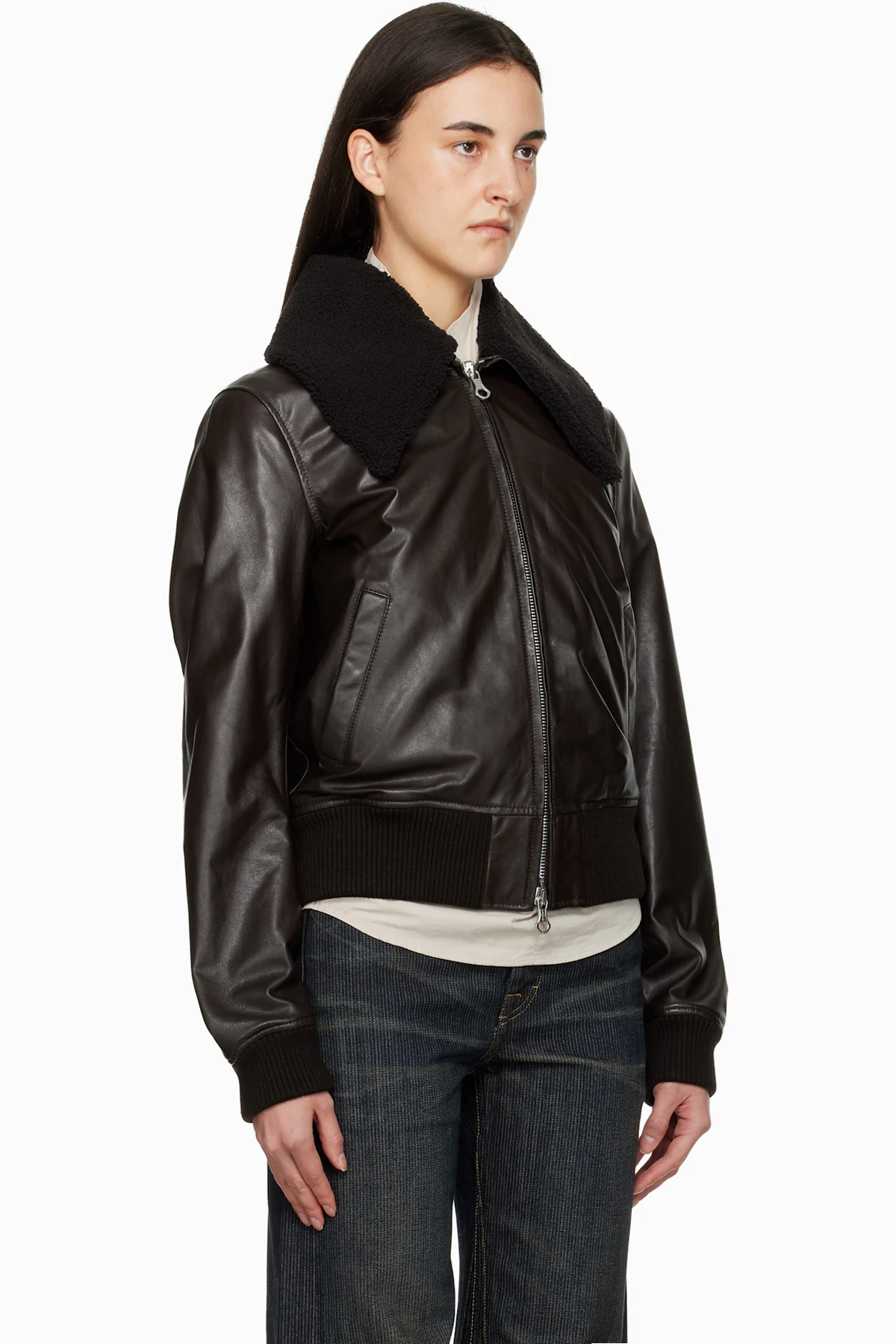 Body: 100% calfskin. Trim: 100% lambskin. Lining: 52% viscose, 48% cotton.