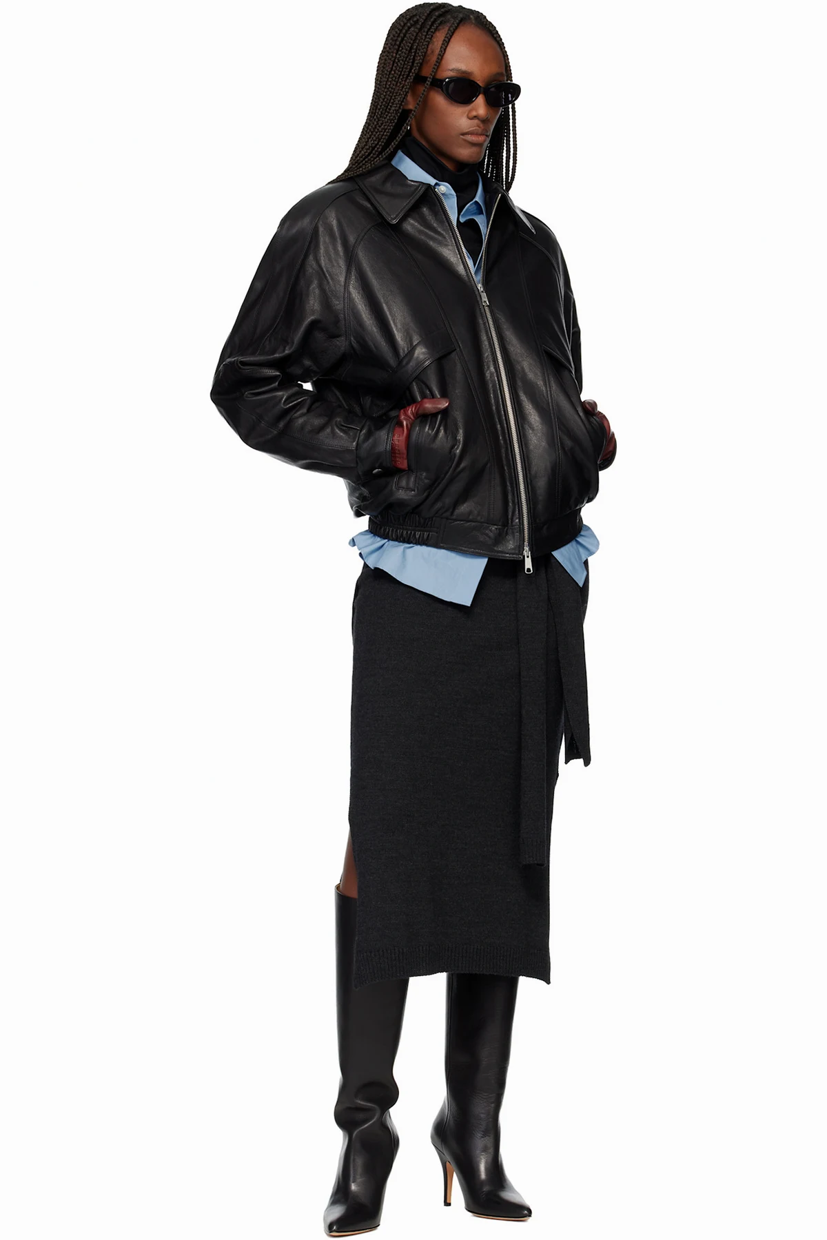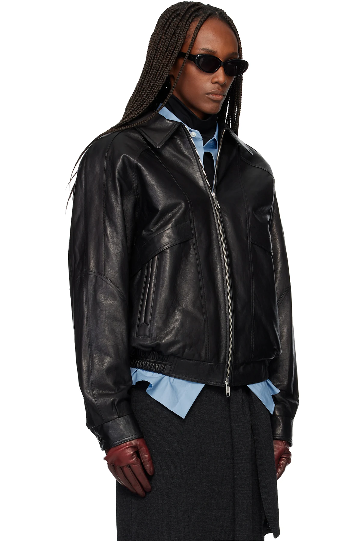 Burgundy Carnaby Funnel Neck Leather Jacket