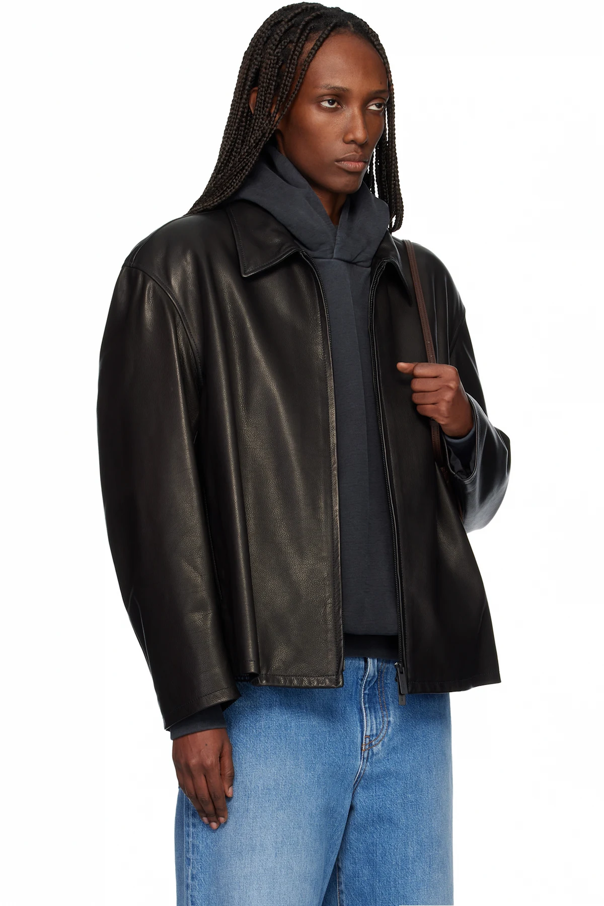 Grained leather jacket.
