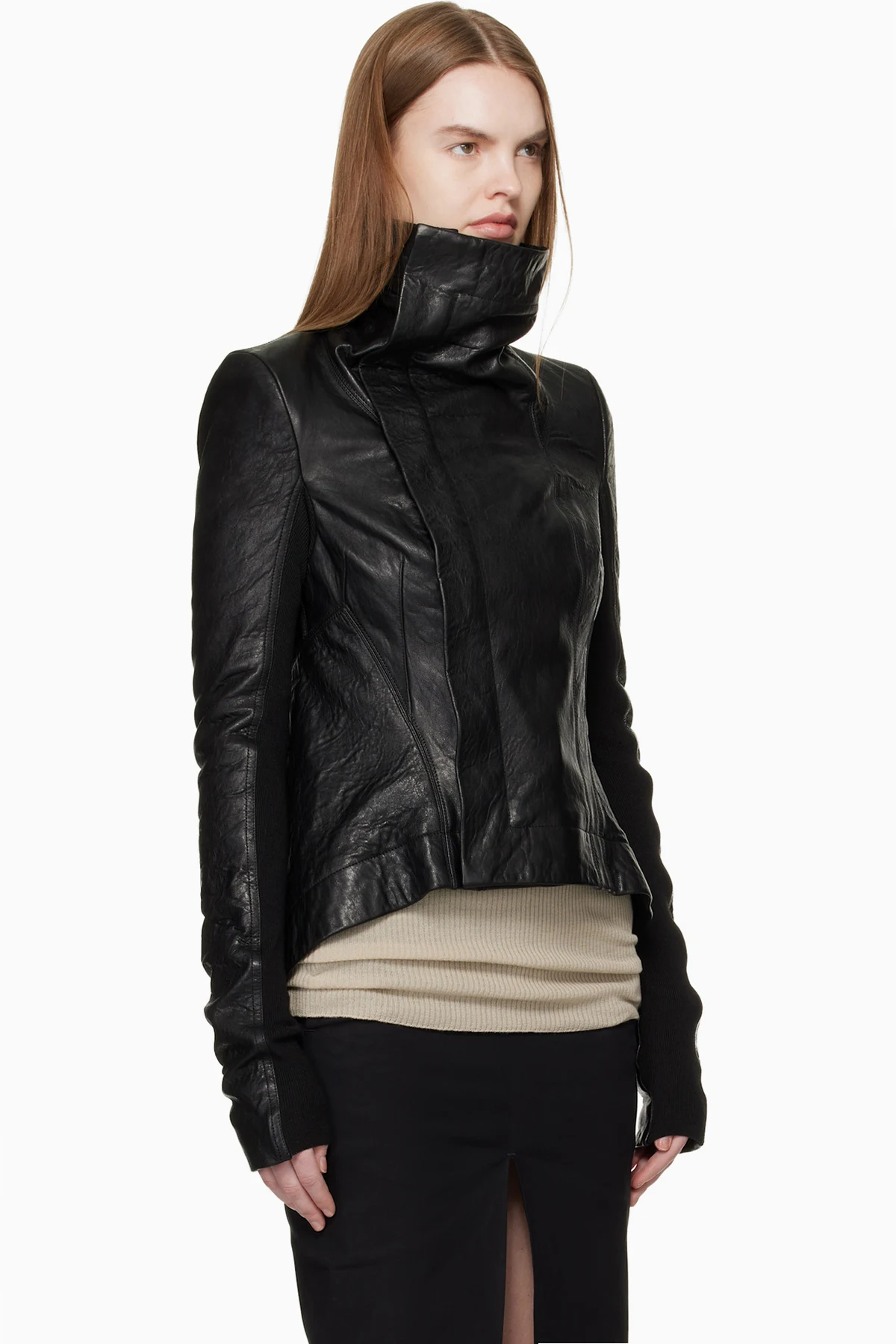 Black Carnaby Funnel Neck Leather Jacket