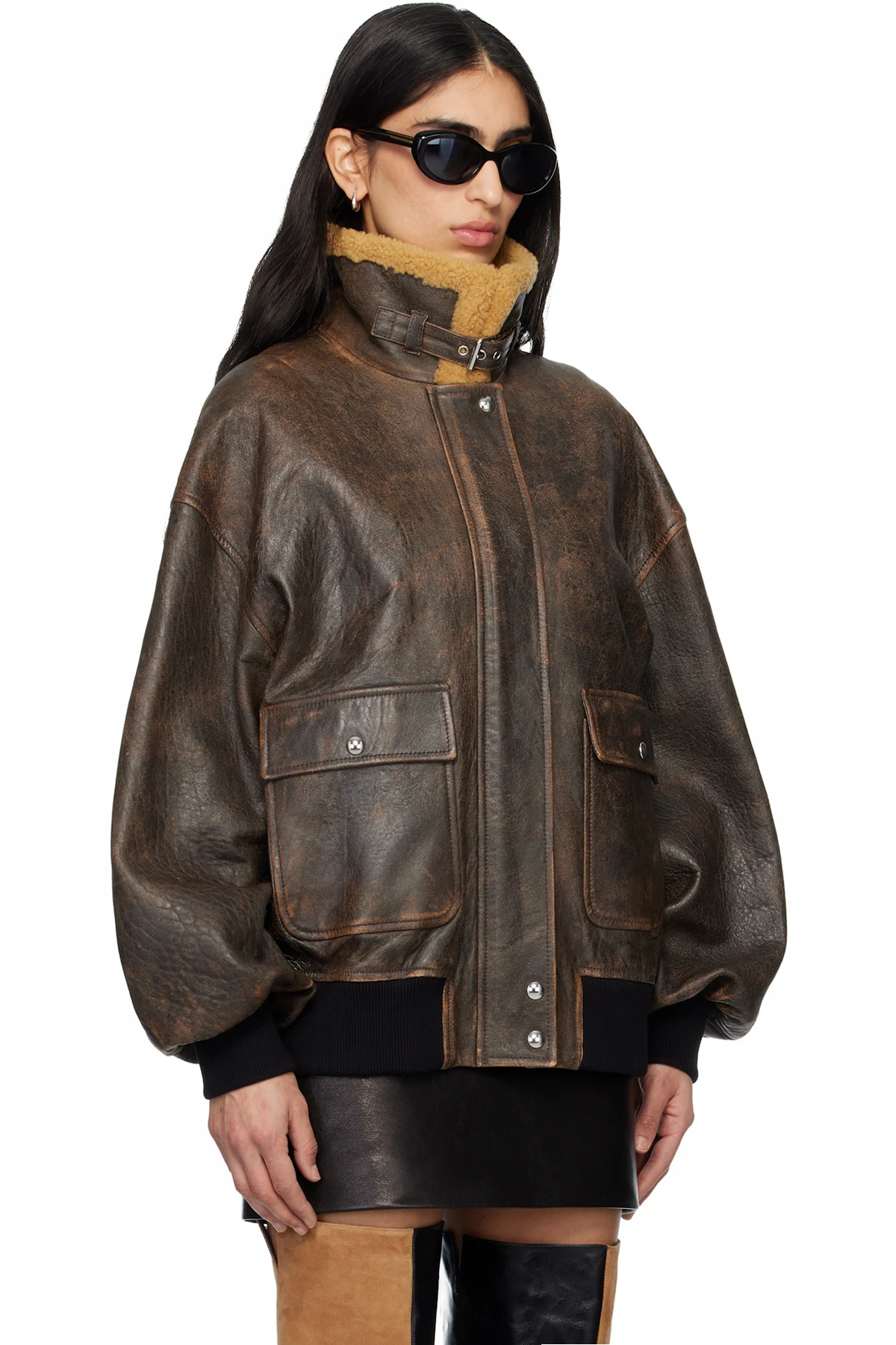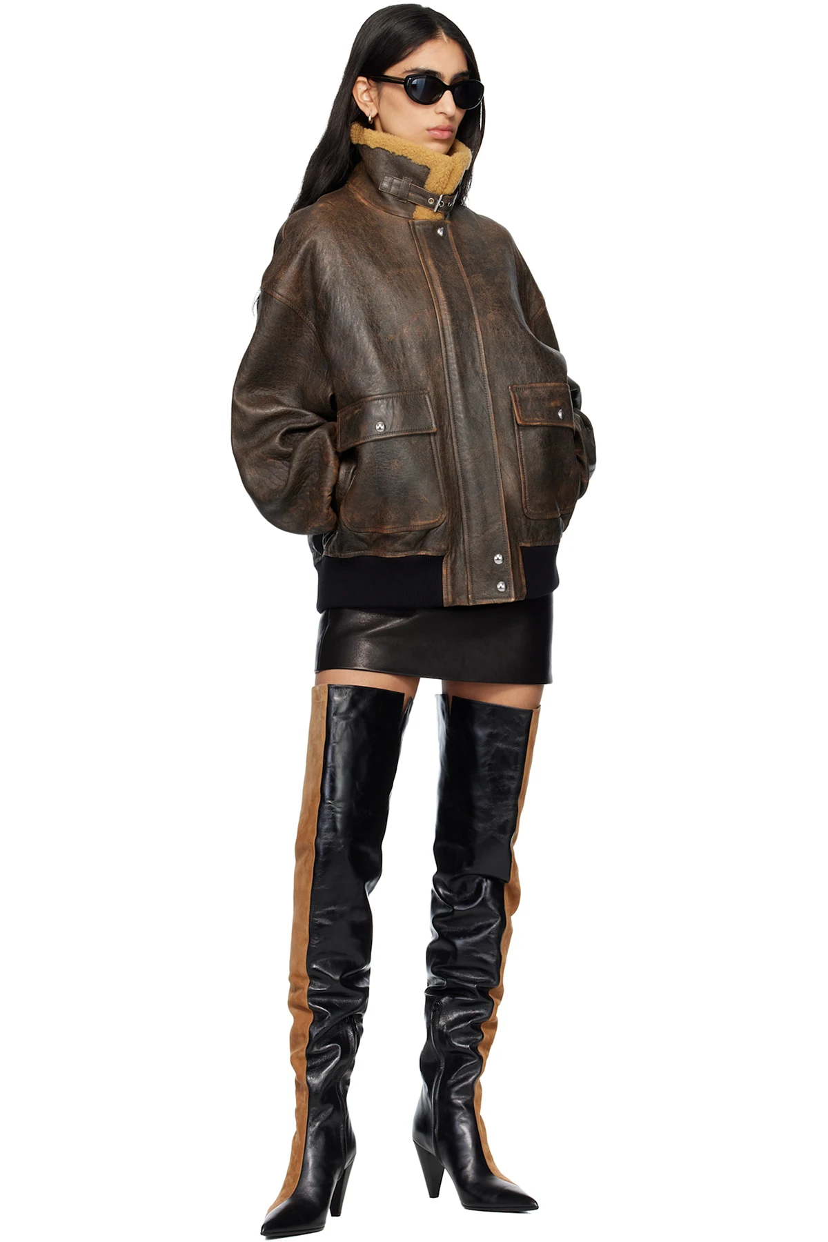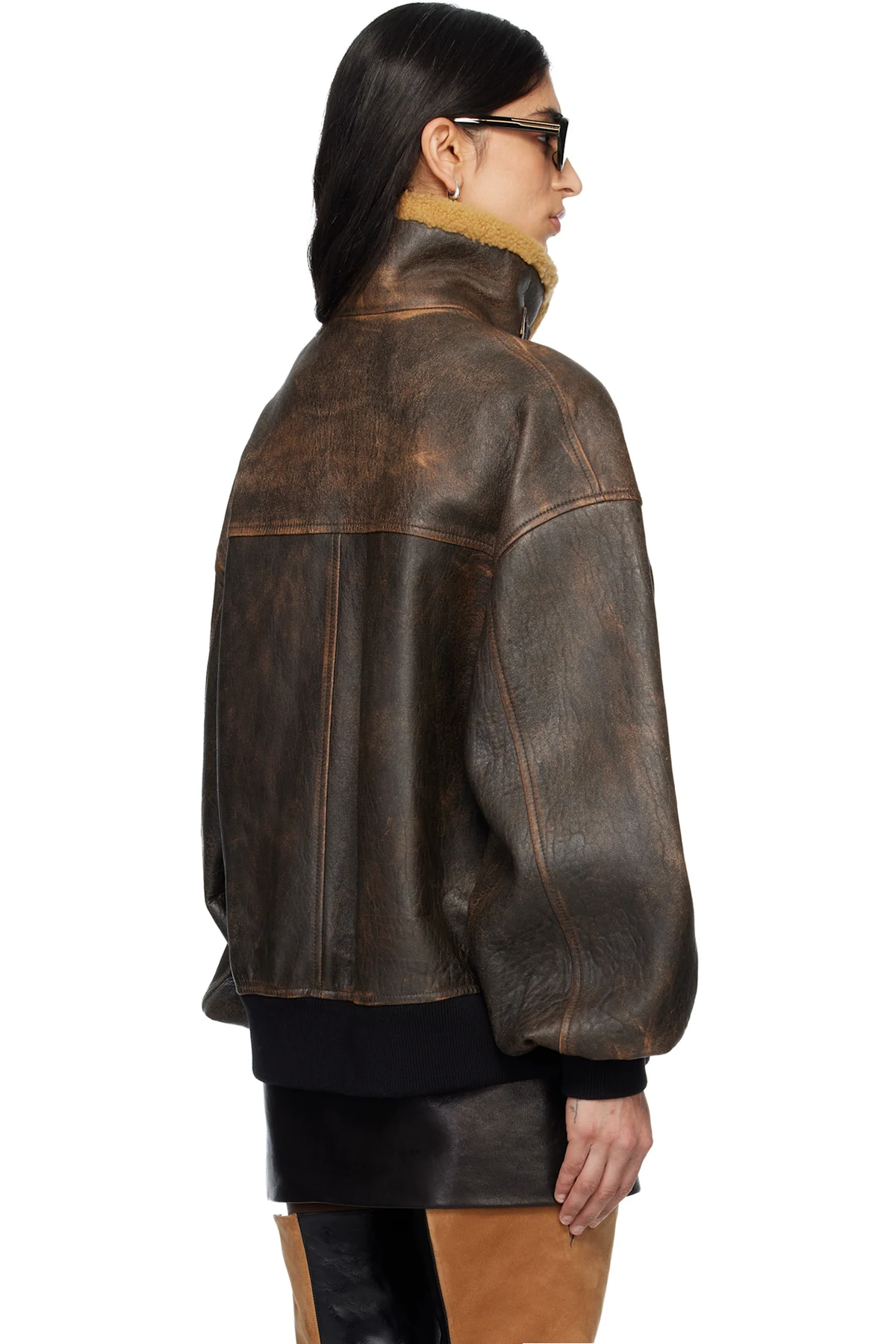 Body: 100% lambskin. Trim 1: 100% lamb shearling. Trim 2: 93% cotton, 4% polyamide, 3% elastane. Lining: 100% cupro.