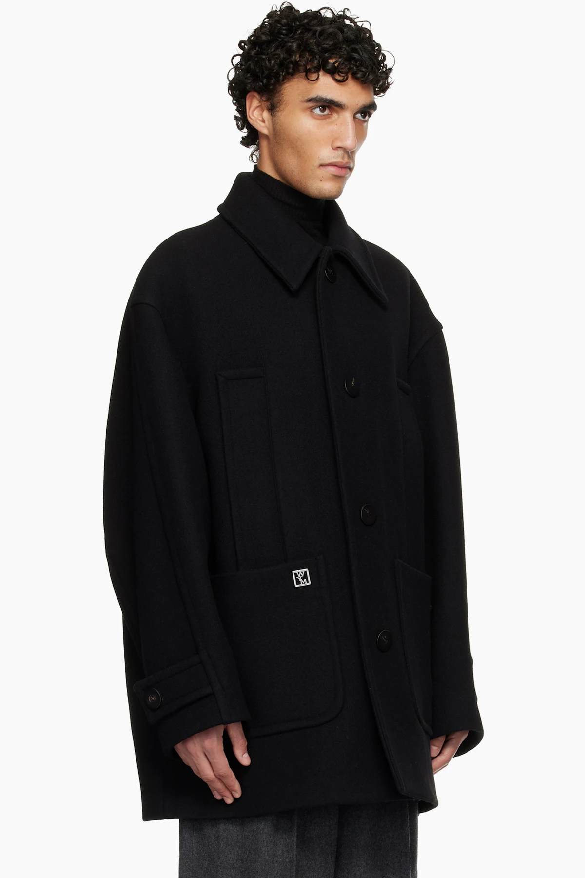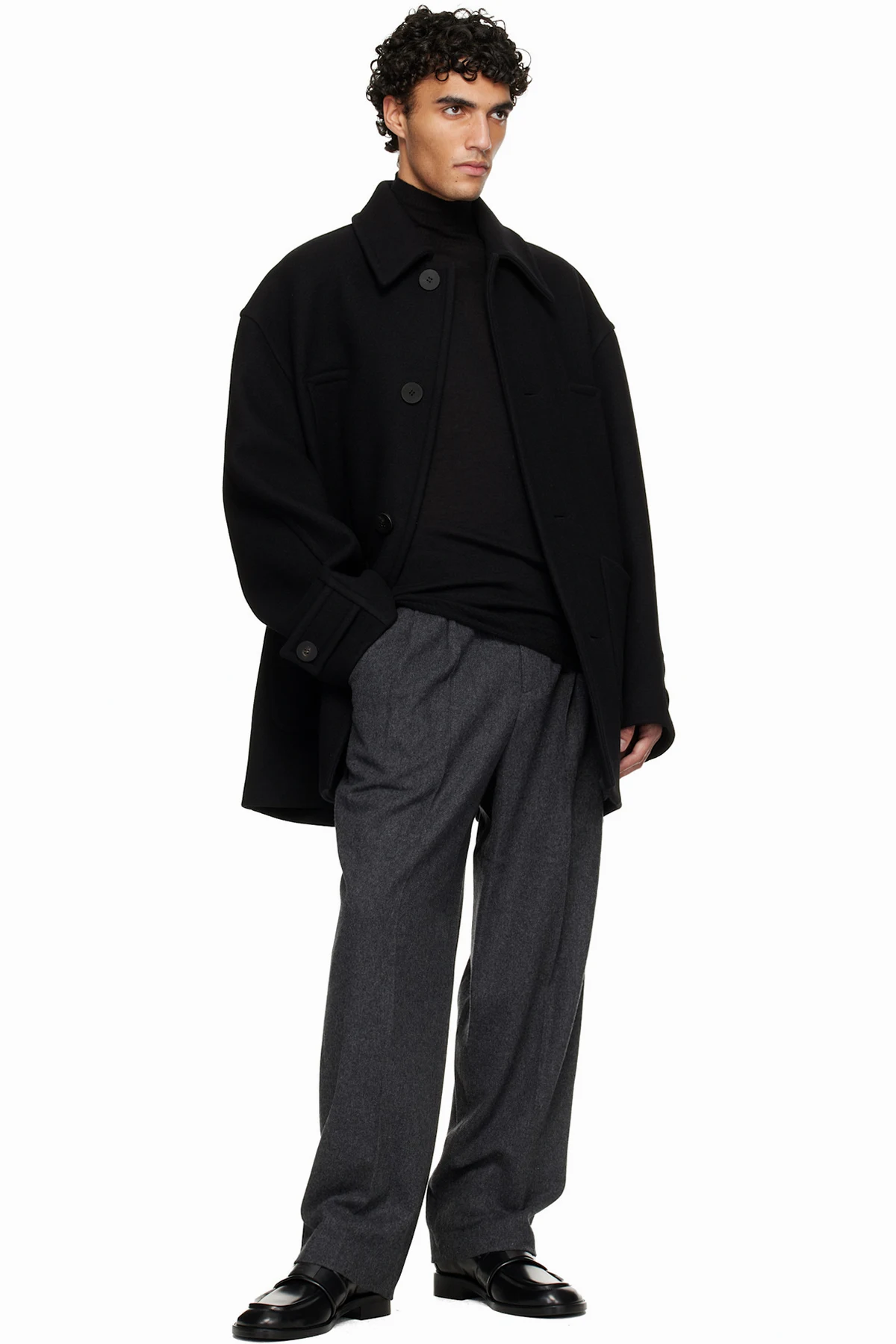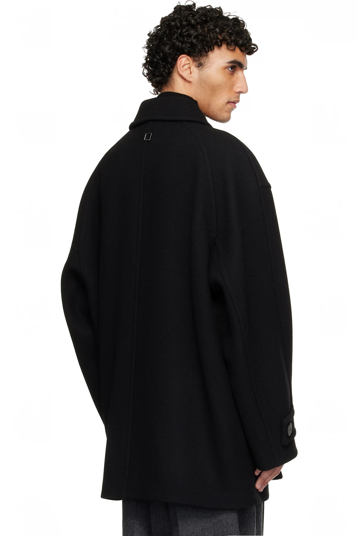 Black Wool Blend Half Coat