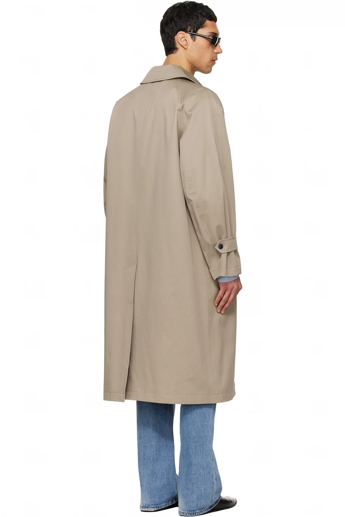 Beige Cotton Twill Single-Breasted Over Coat