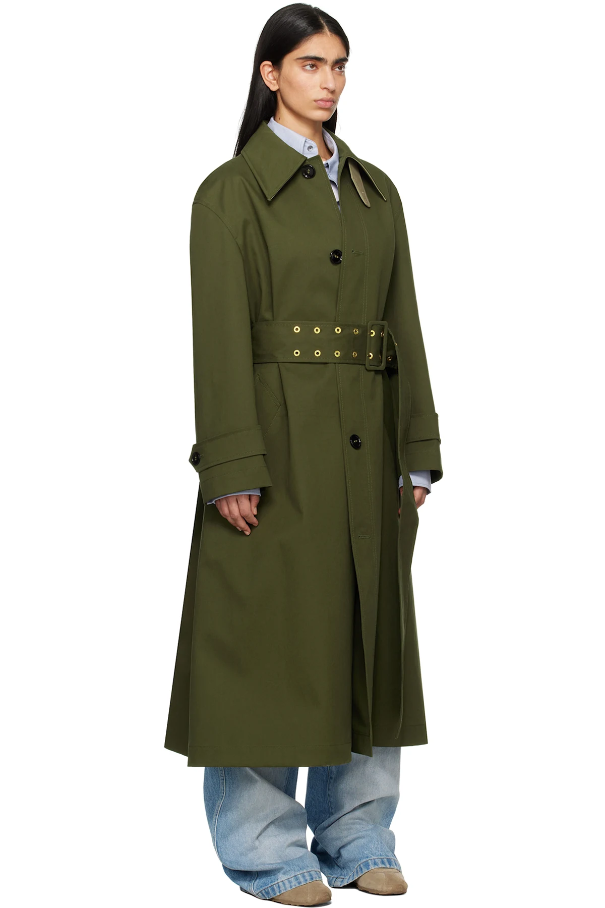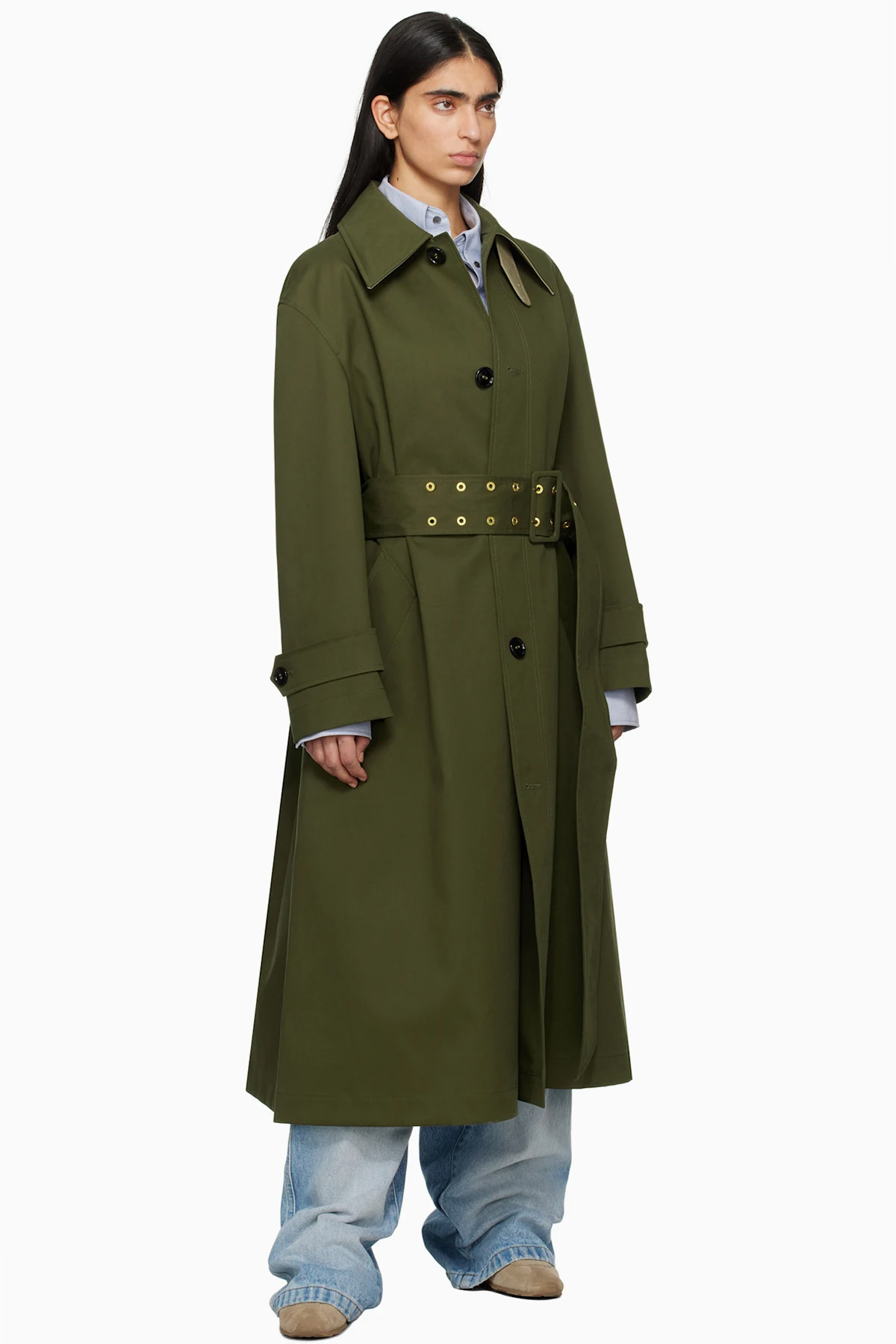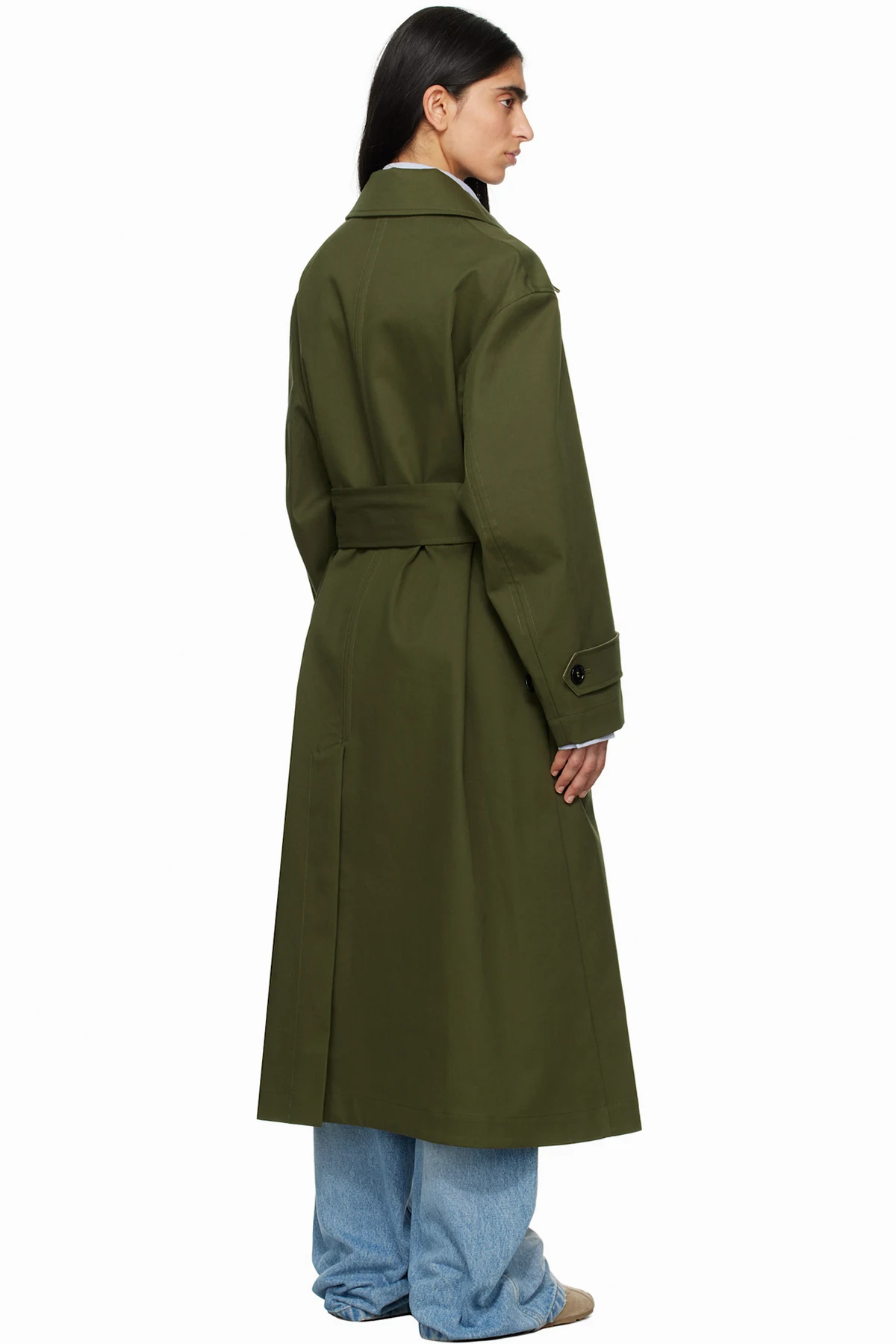 Green Cotton Belted Mac Coat