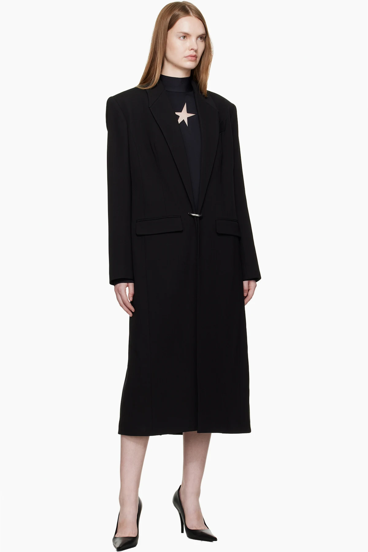 Black Pierced Tailored Coat