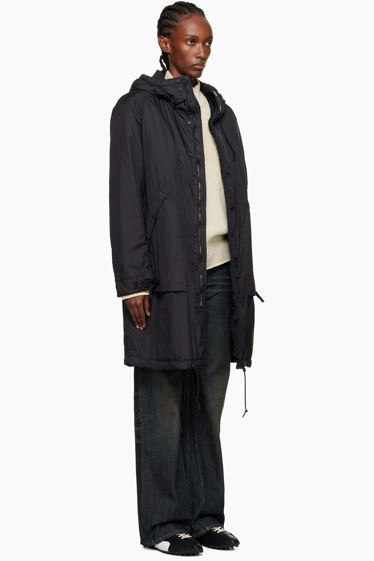 · Cord-lock drawstring at hem