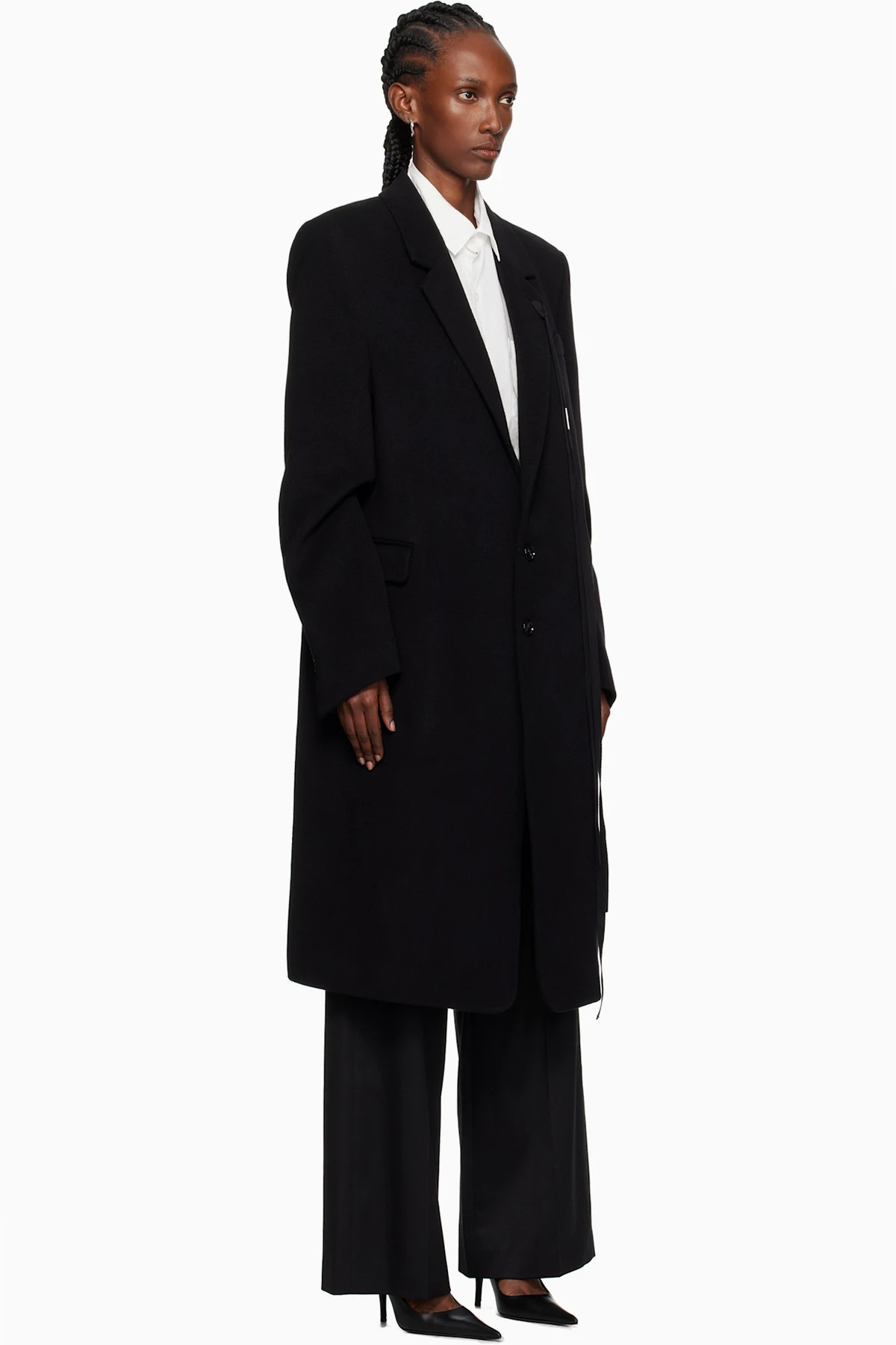 · Detachable grosgrain ribbon with logo plaque at lapel