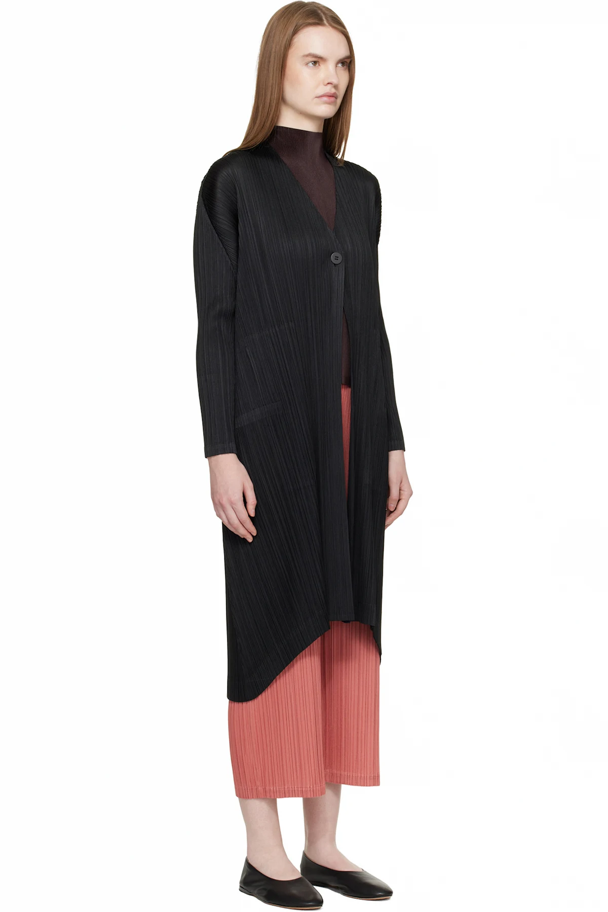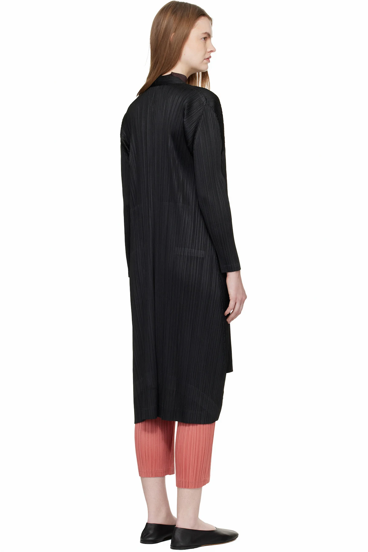 Garment-pleated tricot coat.
