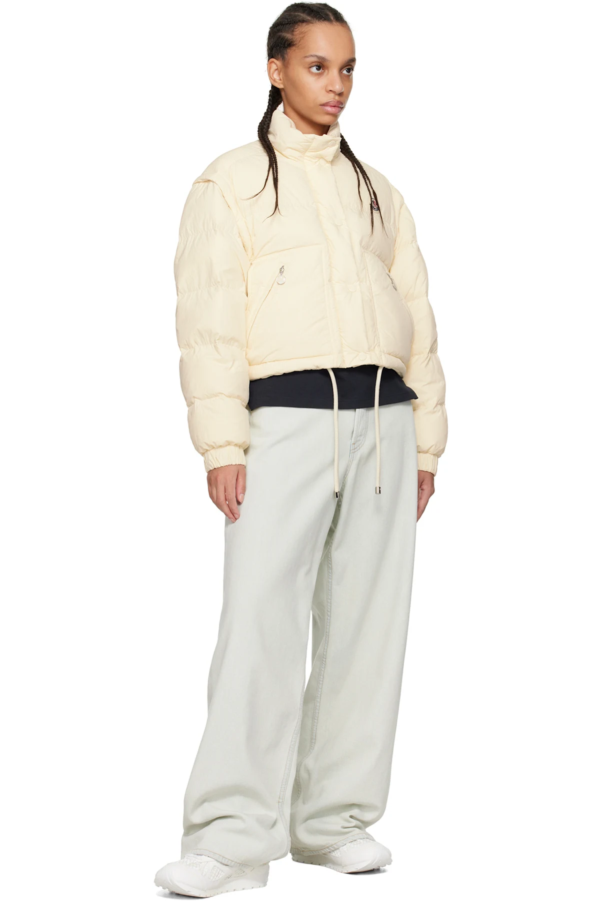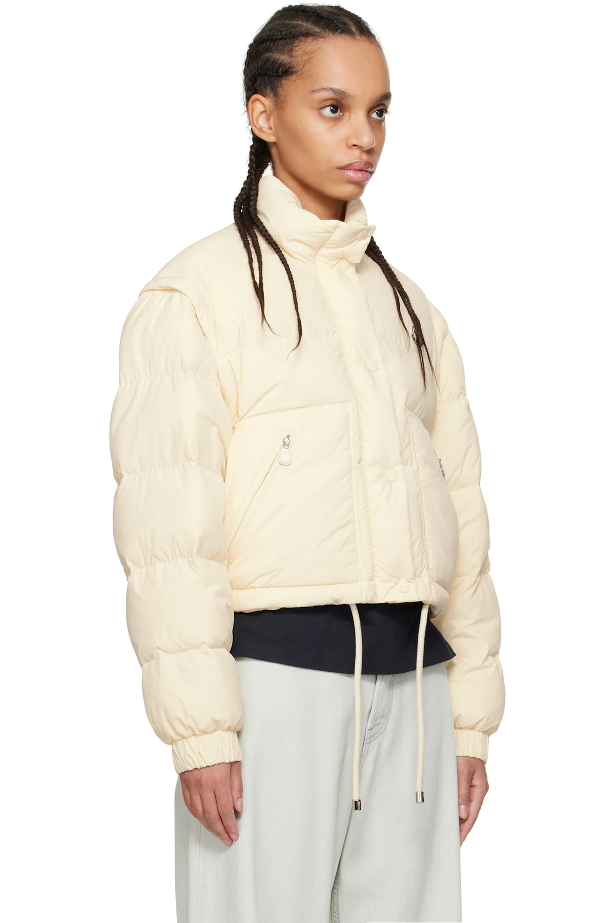 · Self-tie drawstring at cropped hem