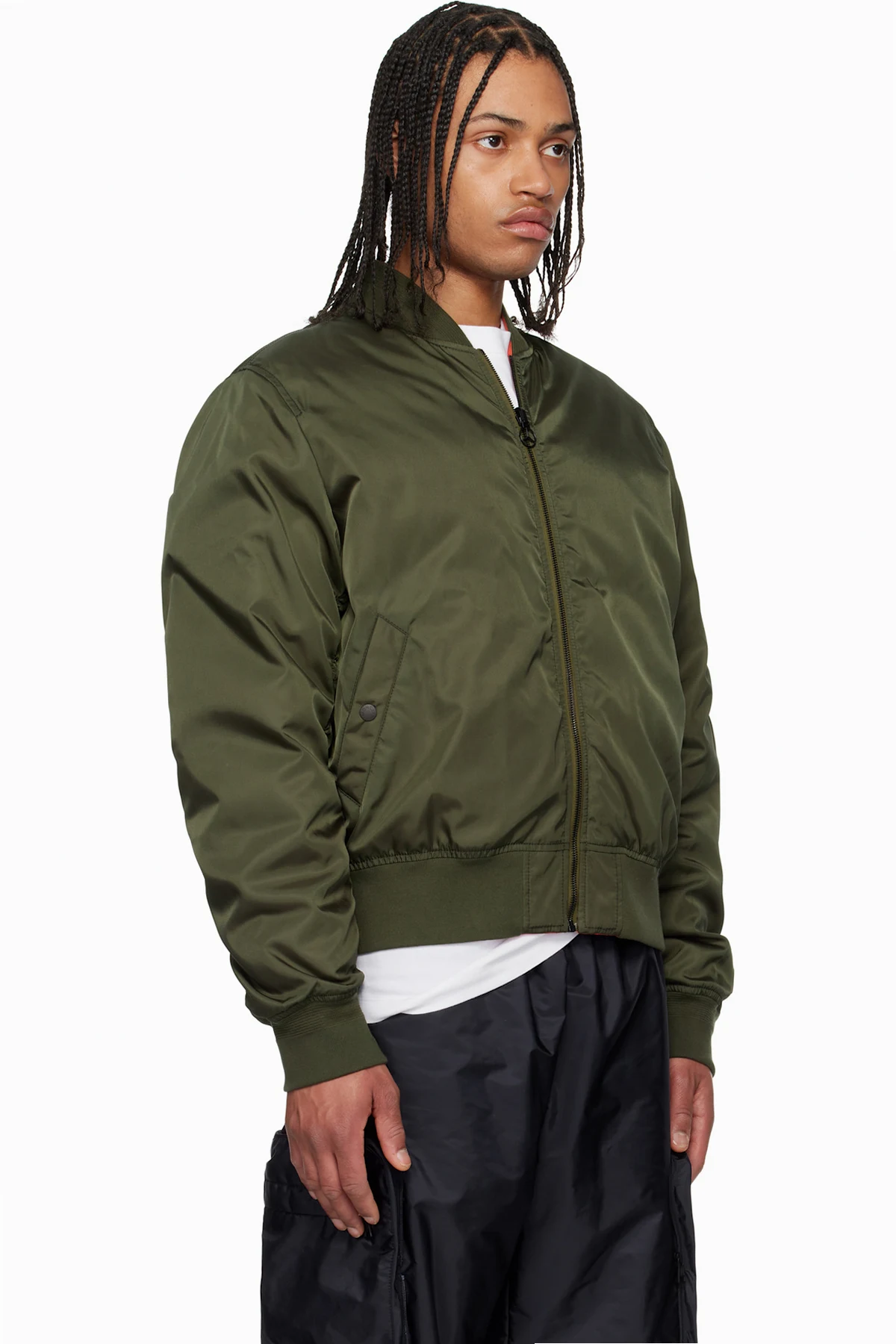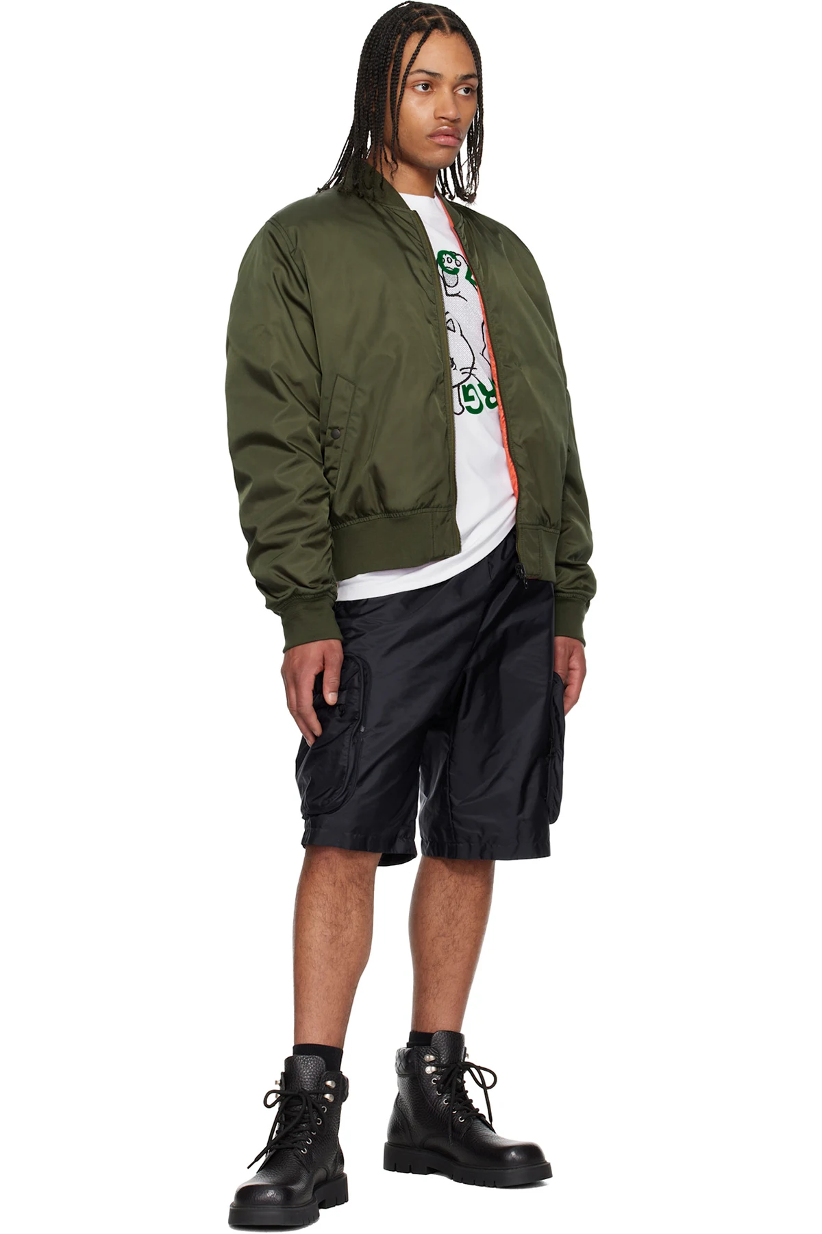Reverse in orange quilted nylon taffeta. Felted logo patch at sleeve.