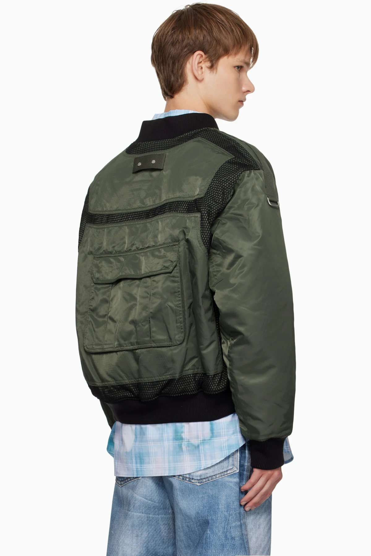 Insulated nylon twill bomber jacket.