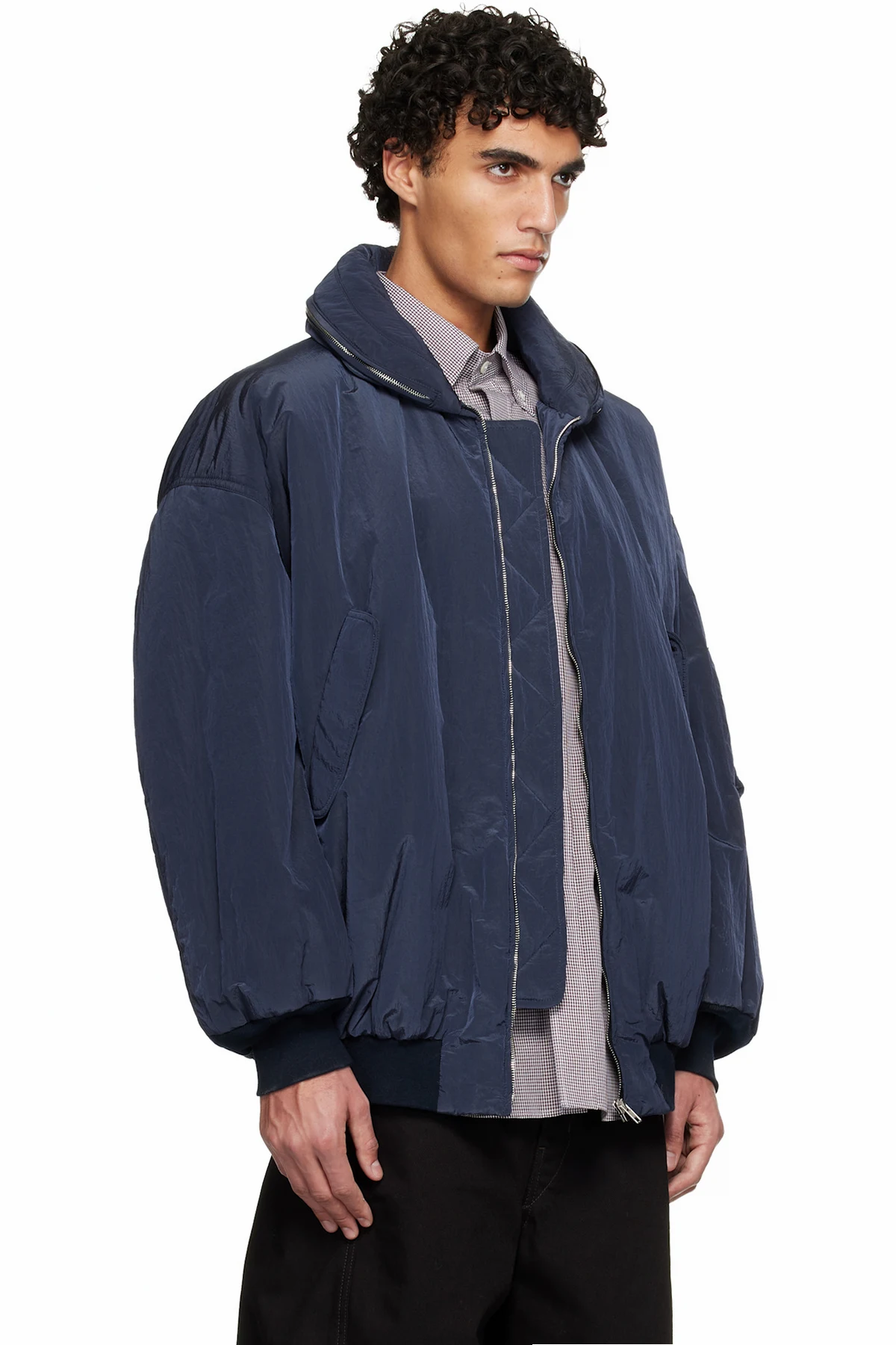 Padded crinkled taffeta bomber jacket.
