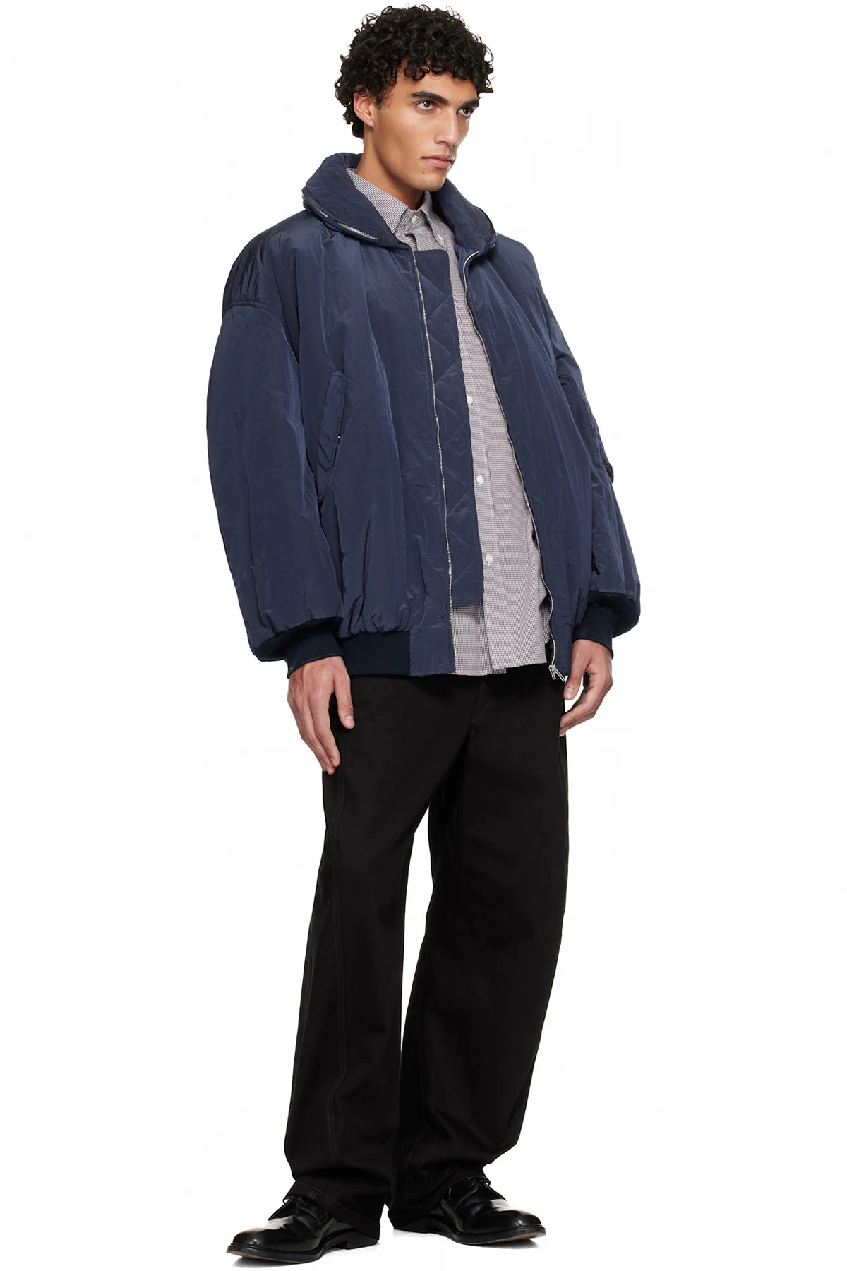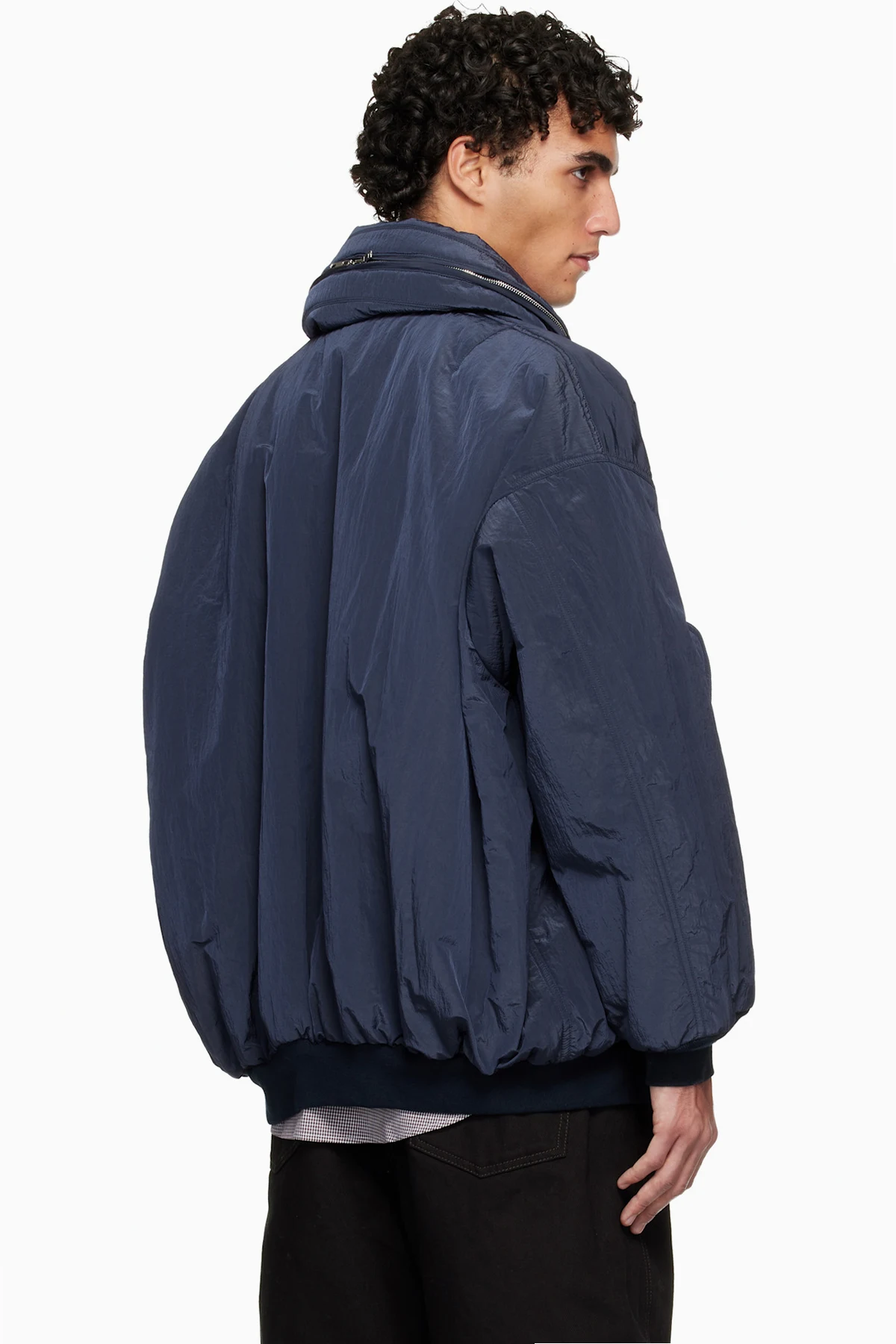 Navy Crinkled Bomber Jacket