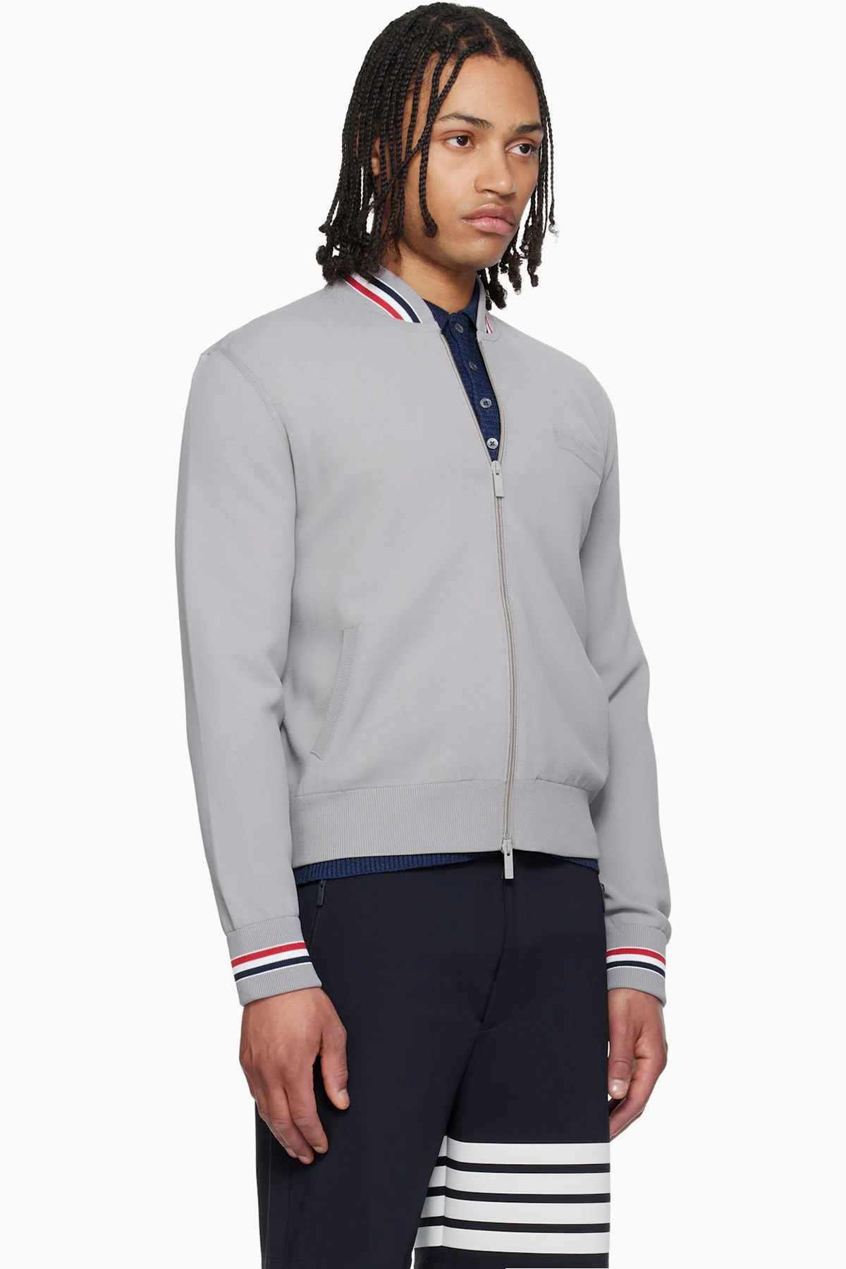 · Tricolor grosgrain flag at back collar