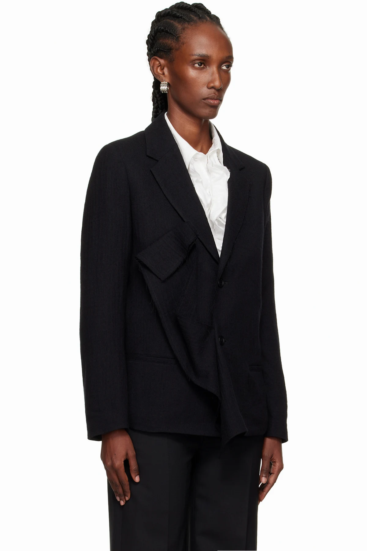 Black O-Left Front Drape Blazer
