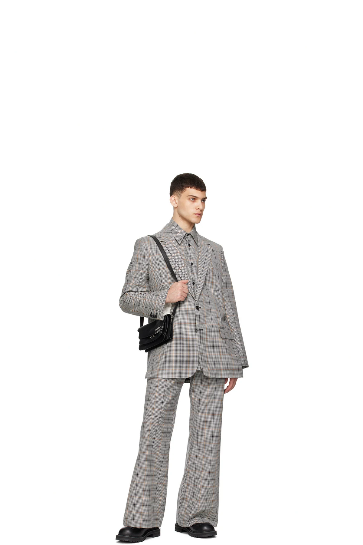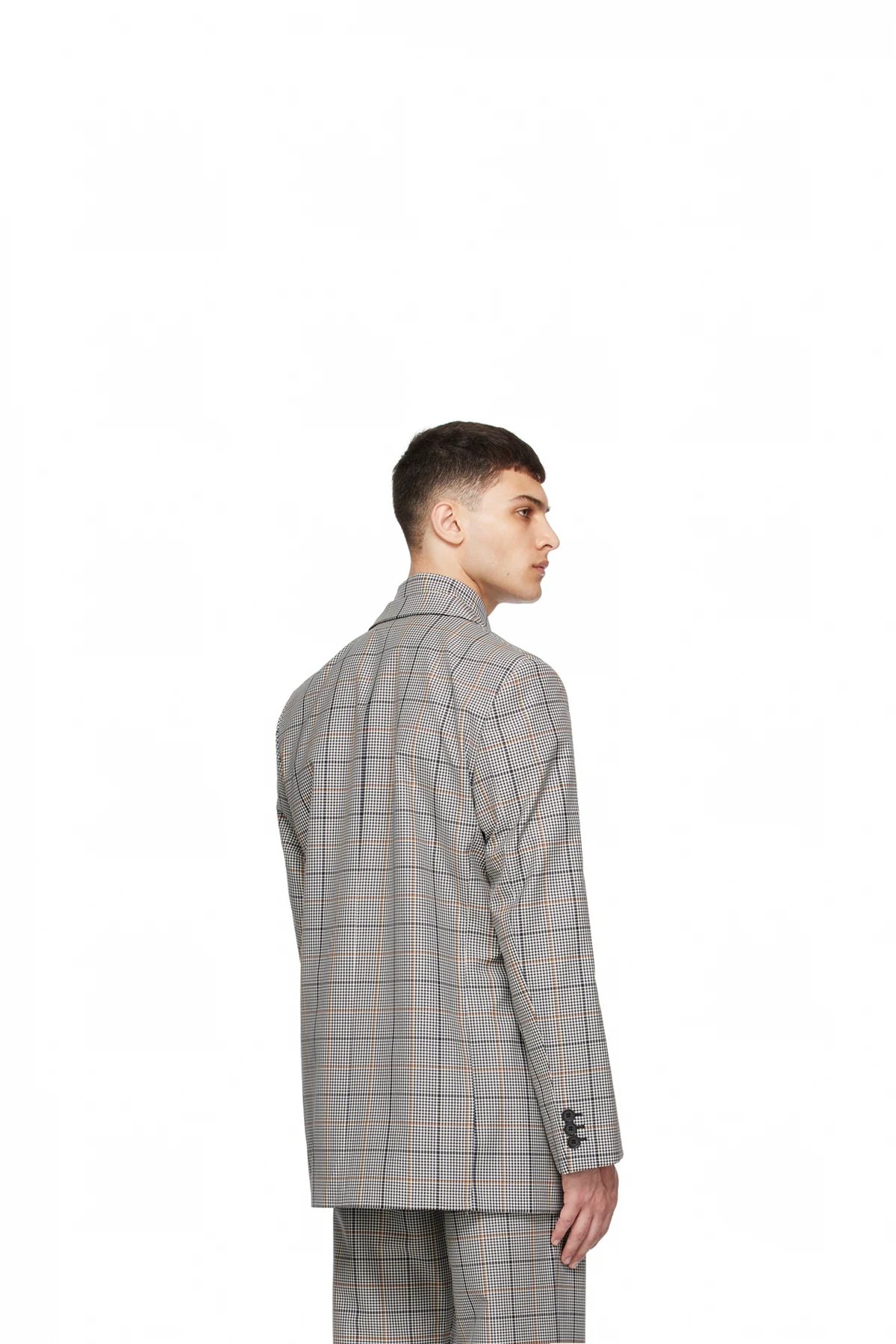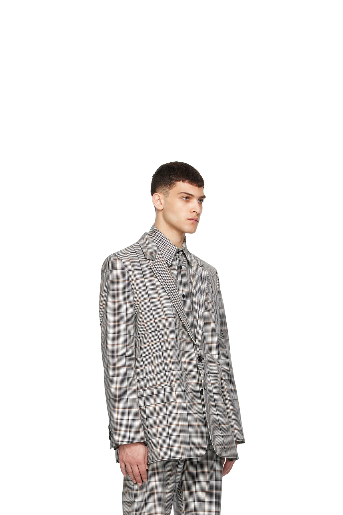 Virgin wool-blend canvas blazer. Check pattern throughout.