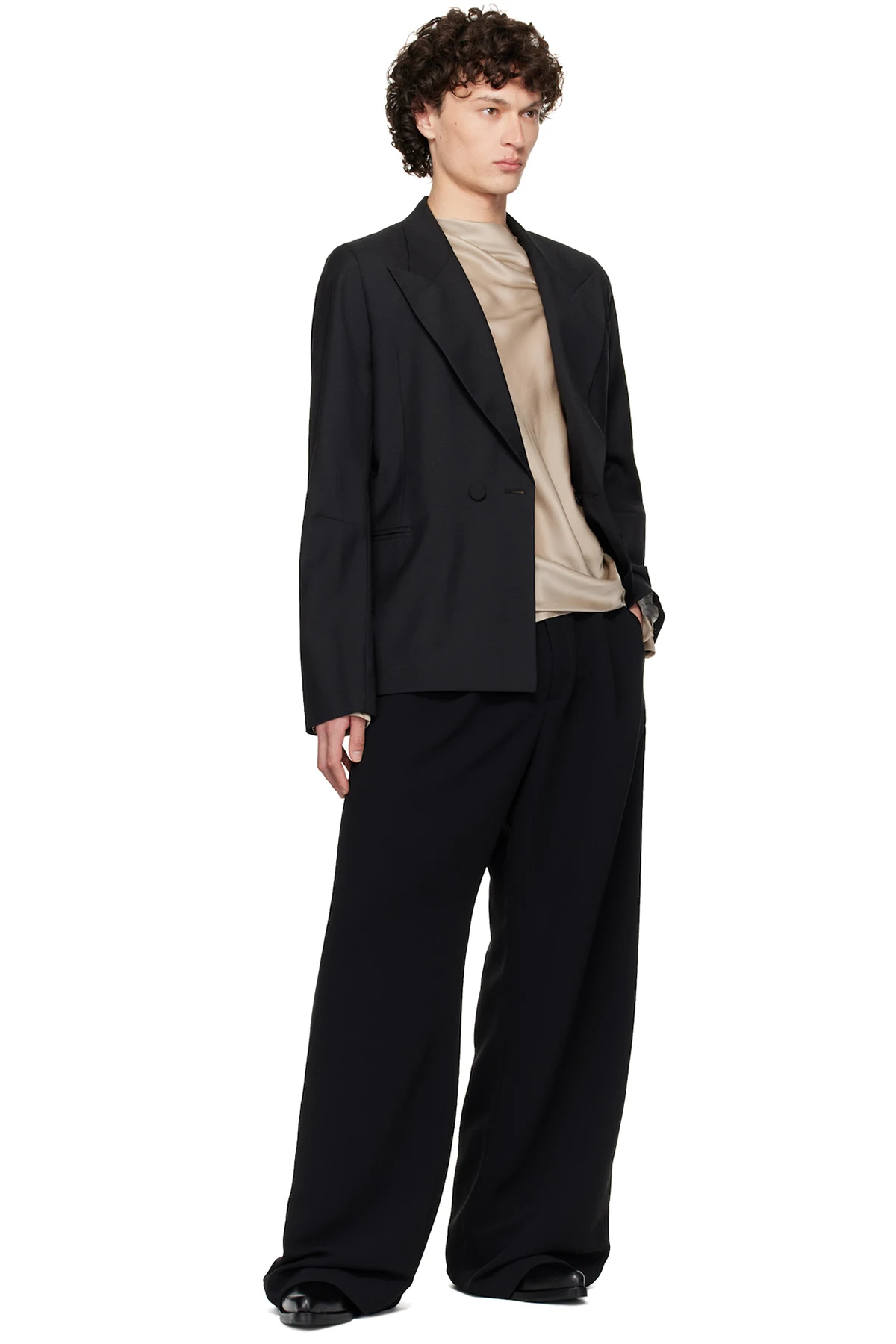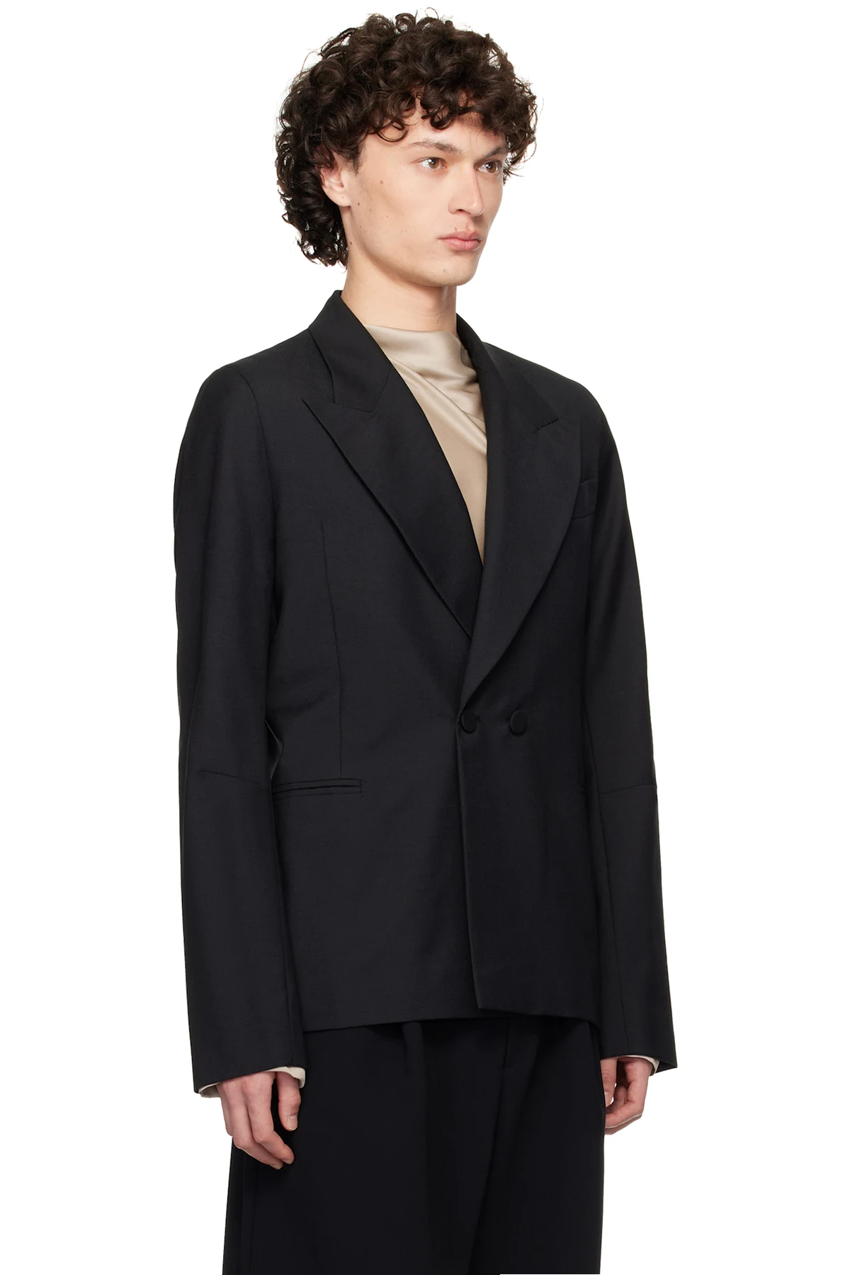 Black D Breasted Wool Blazer