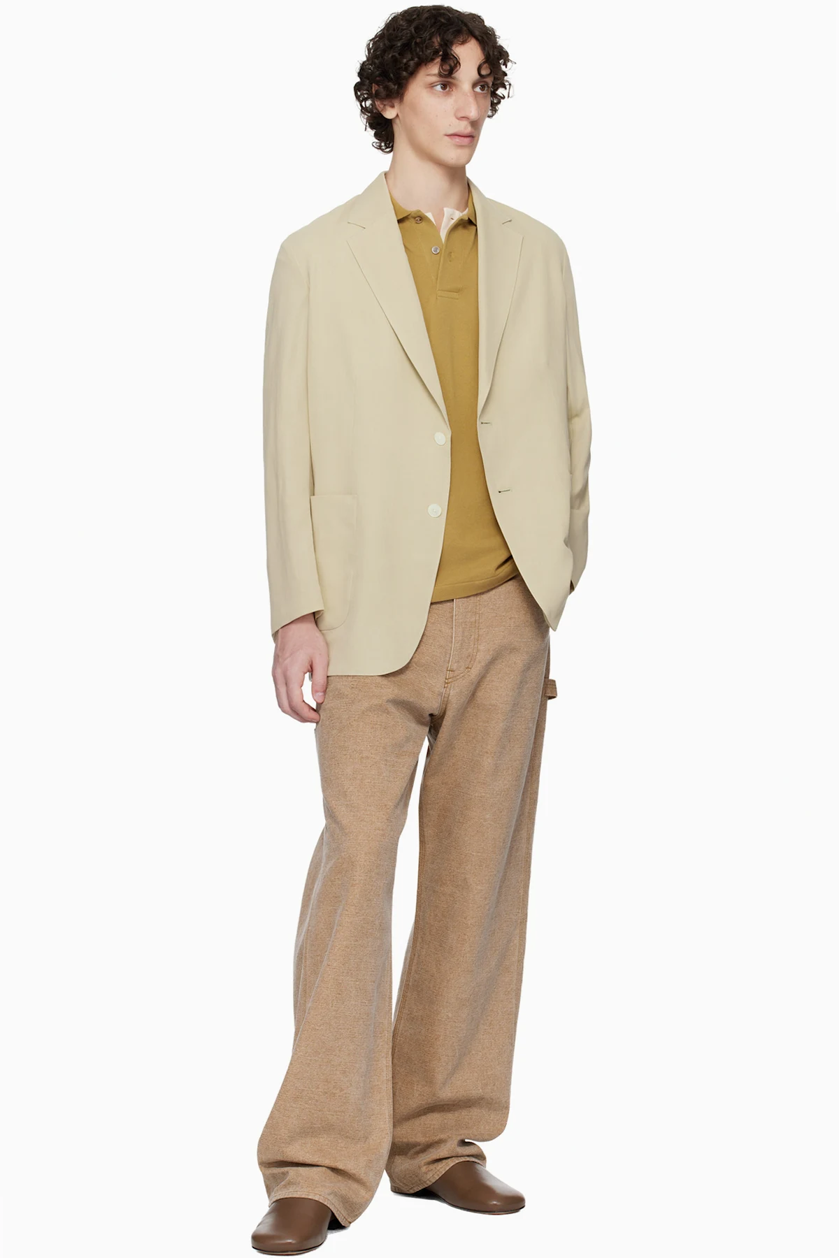 Lightweight extra-long staple cotton- and wool-blend gabardine blazer.