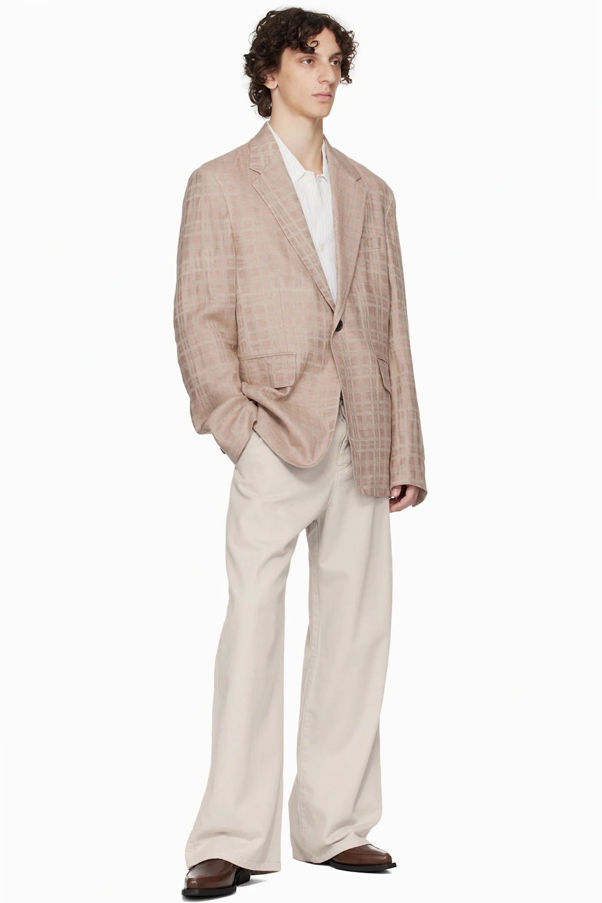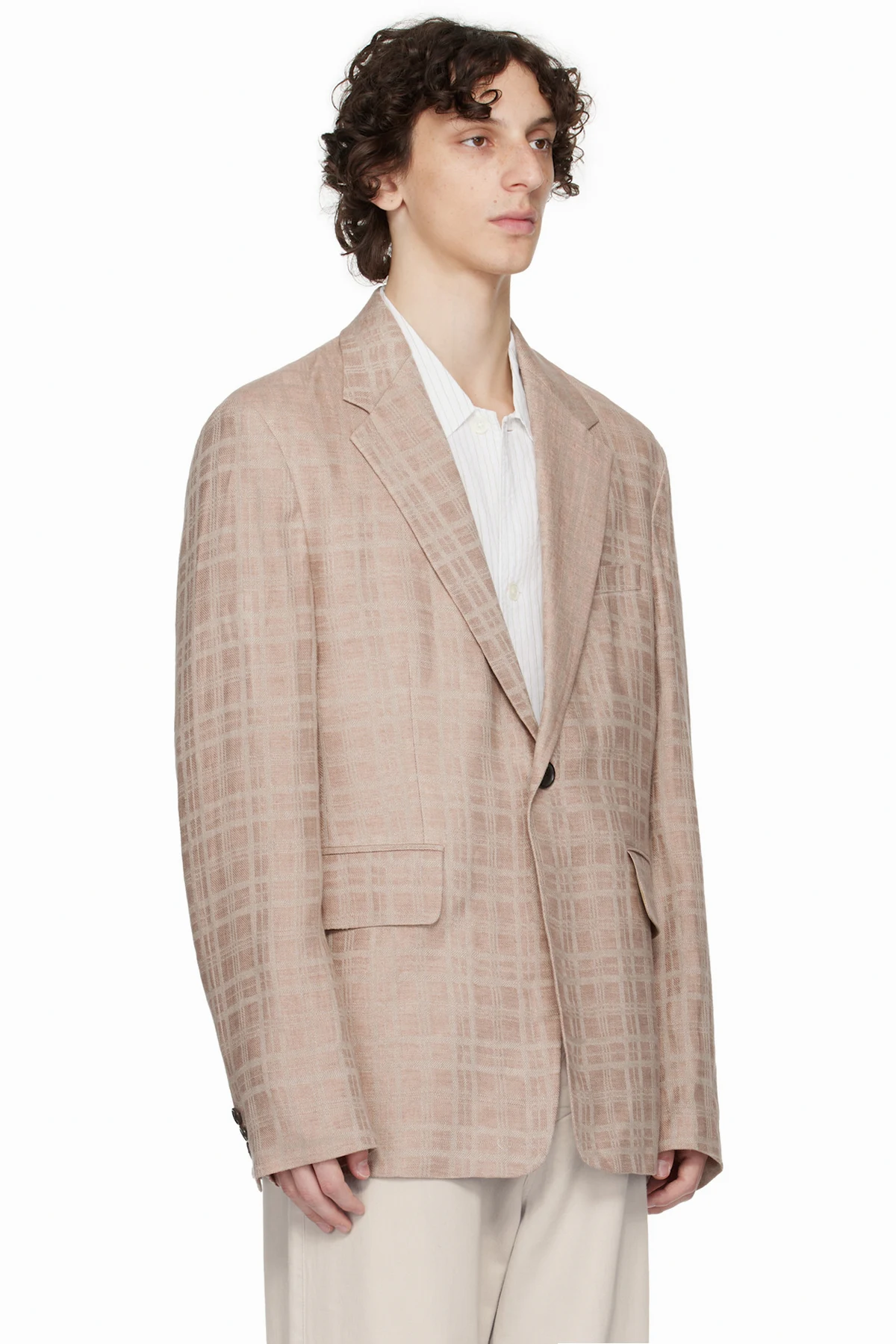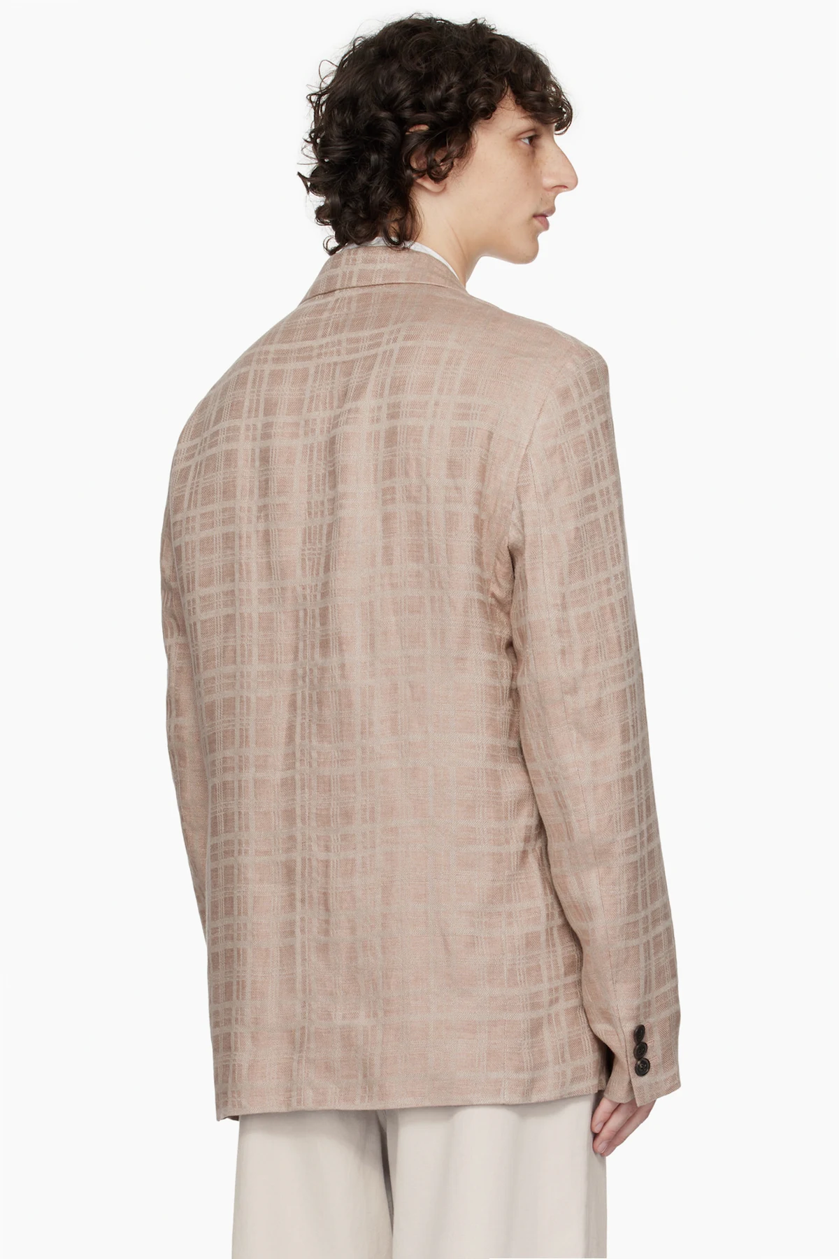 Linen hopsack blazer. Check pattern throughout.