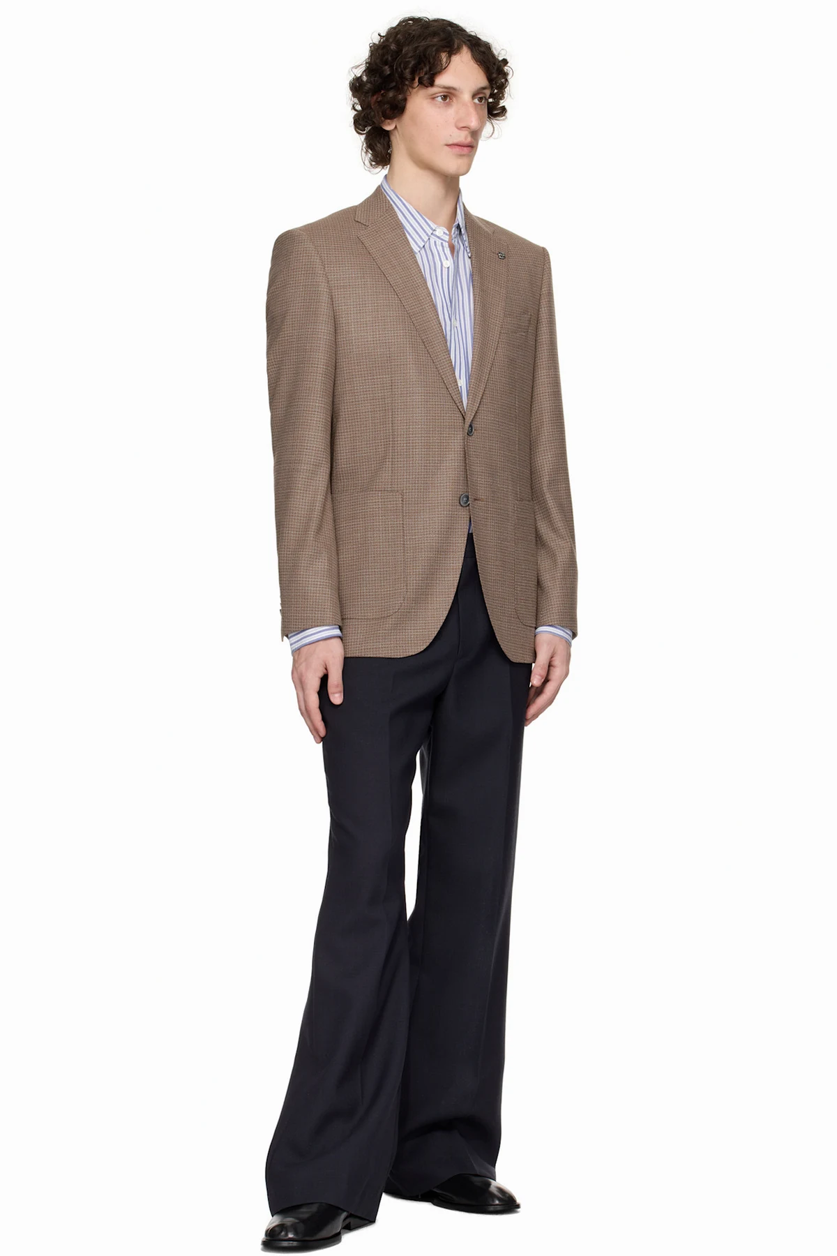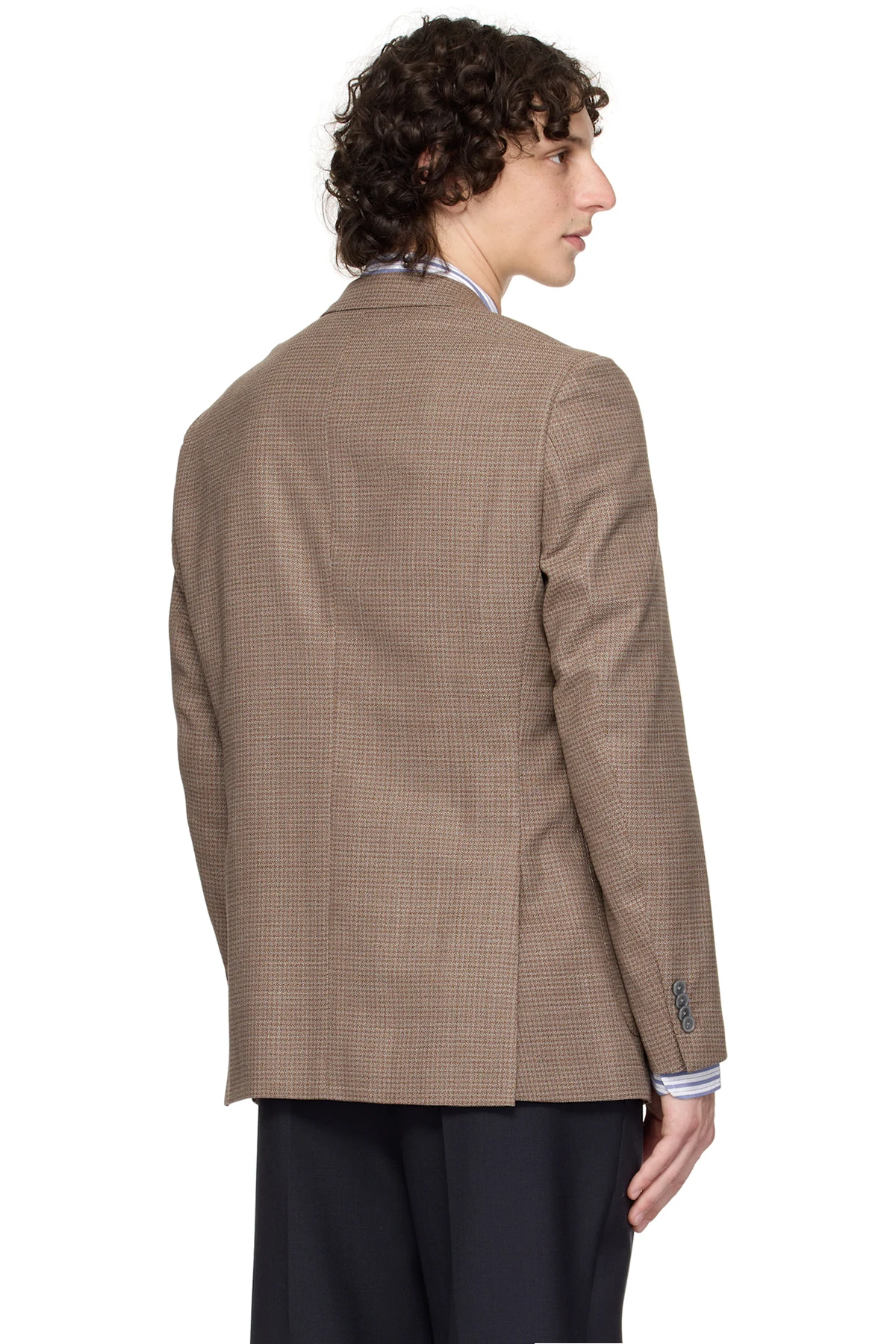 Brown Regular-Fit Patterned Wool Blend Blazer