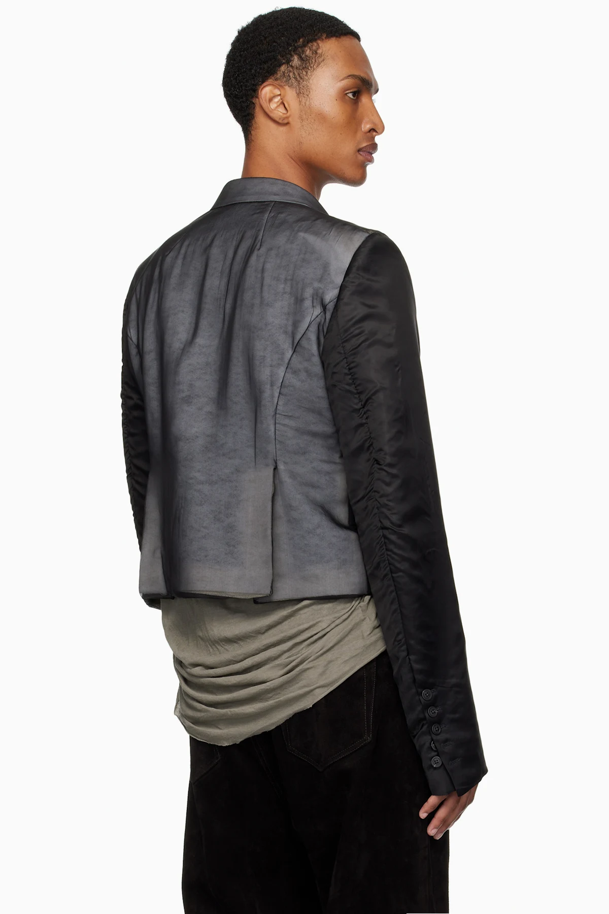 Sheer GOTS-certified organic silk chiffon and cupro satin blazer.