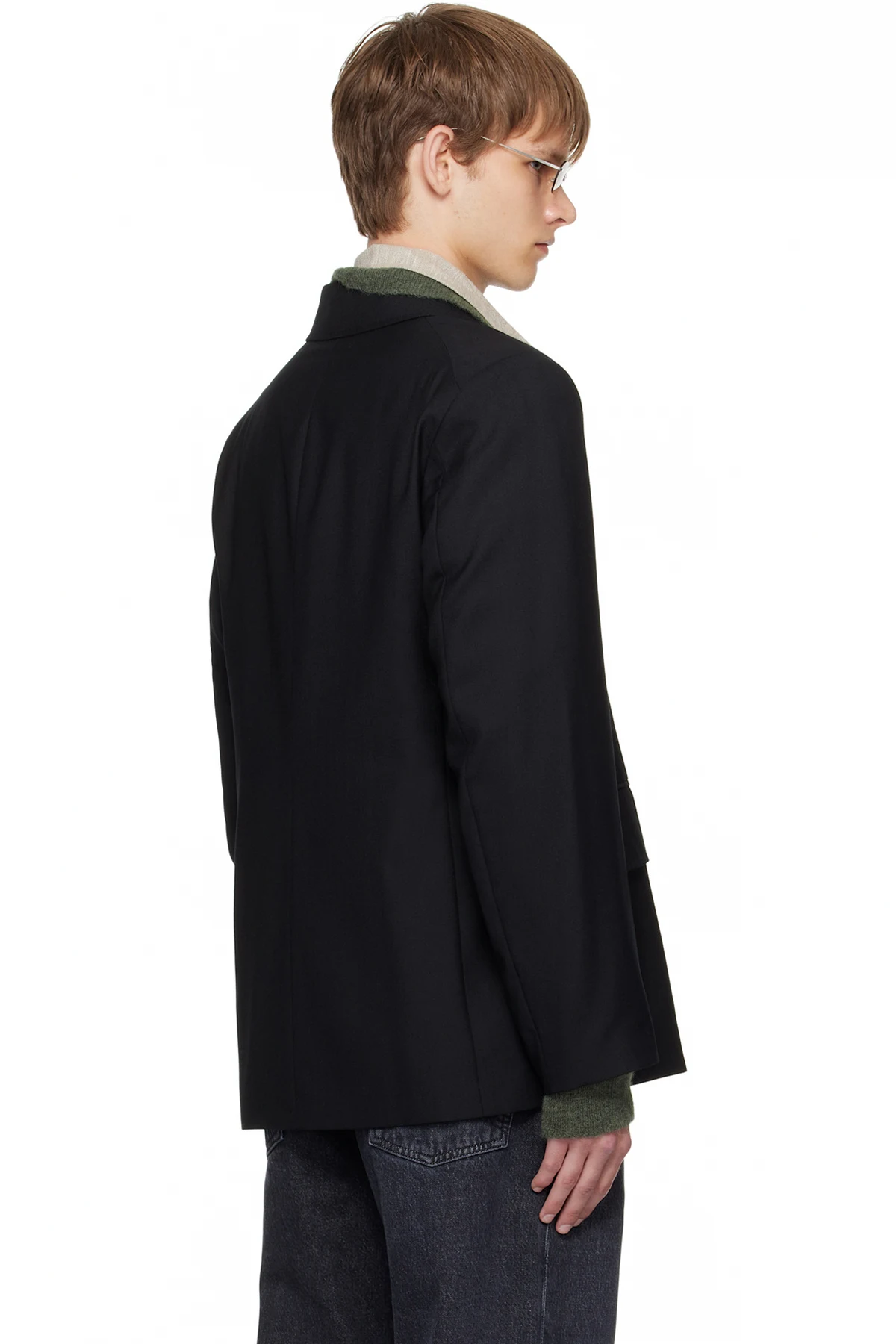 Basket-woven wool blazer.