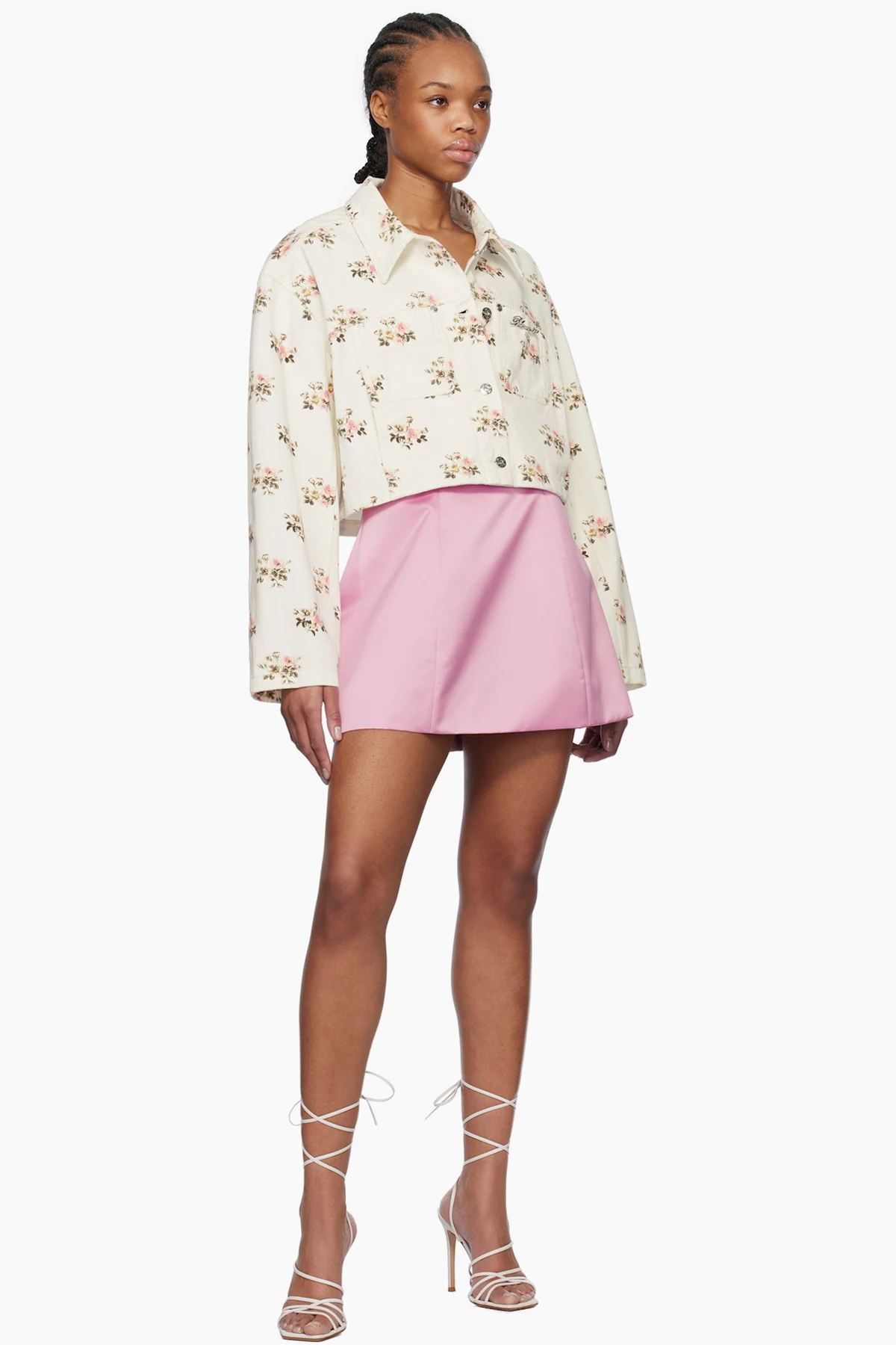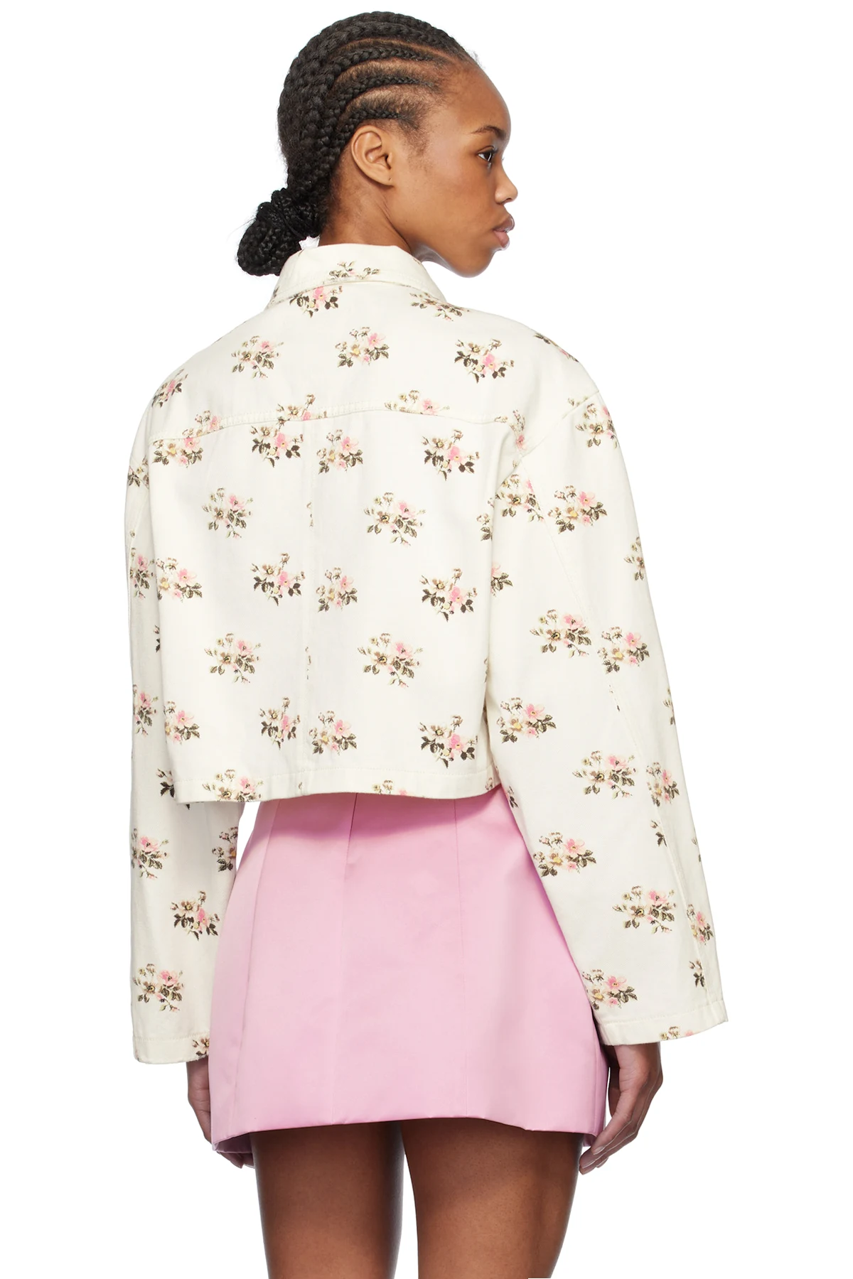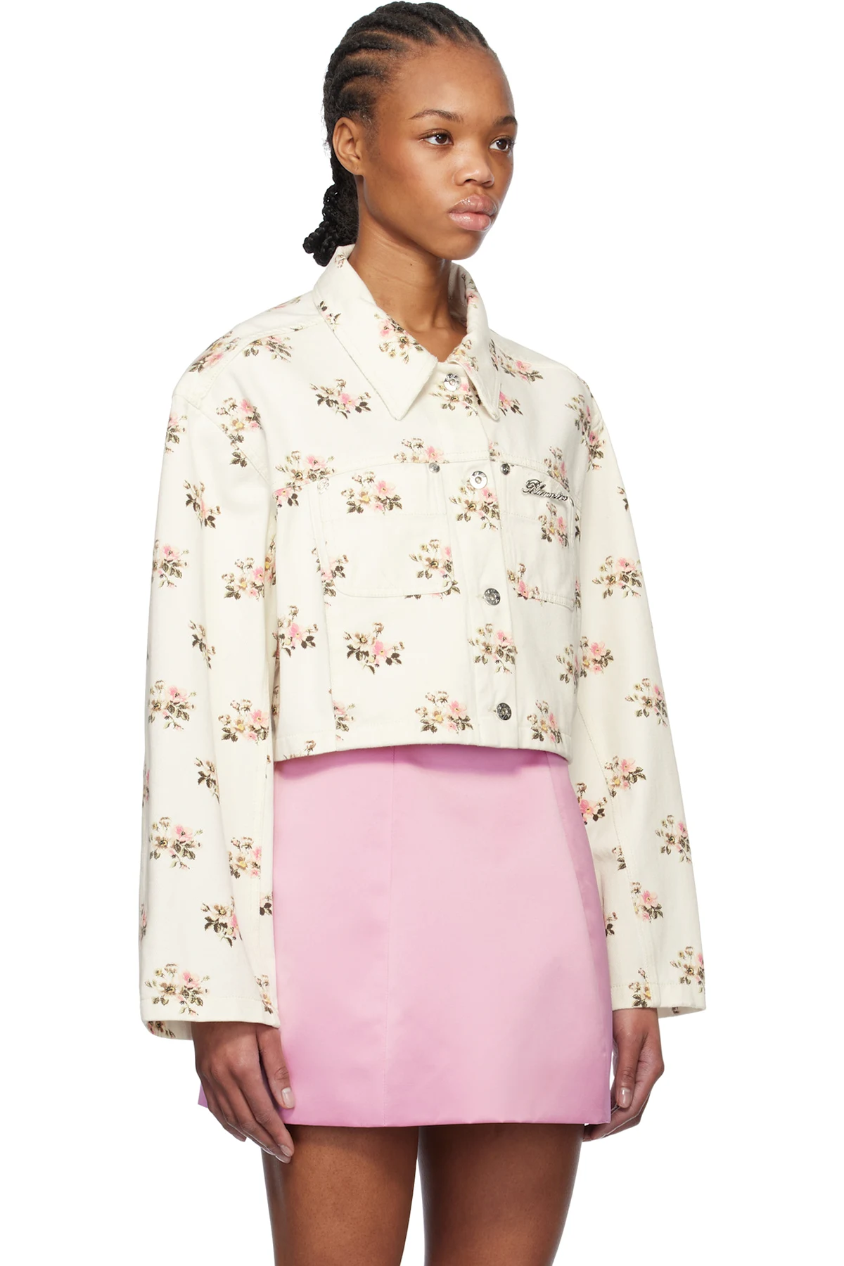 Non-stretch denim jacket. Floral pattern printed throughout.