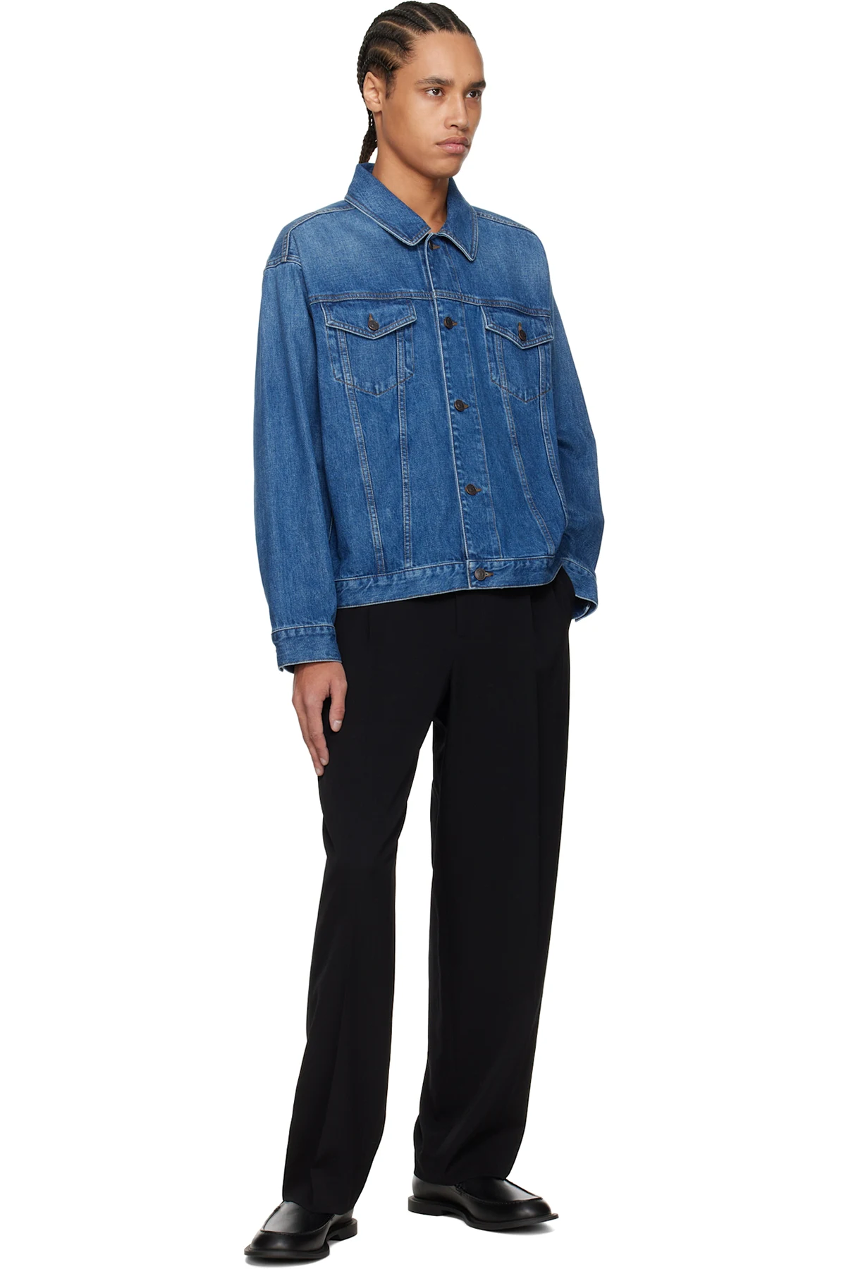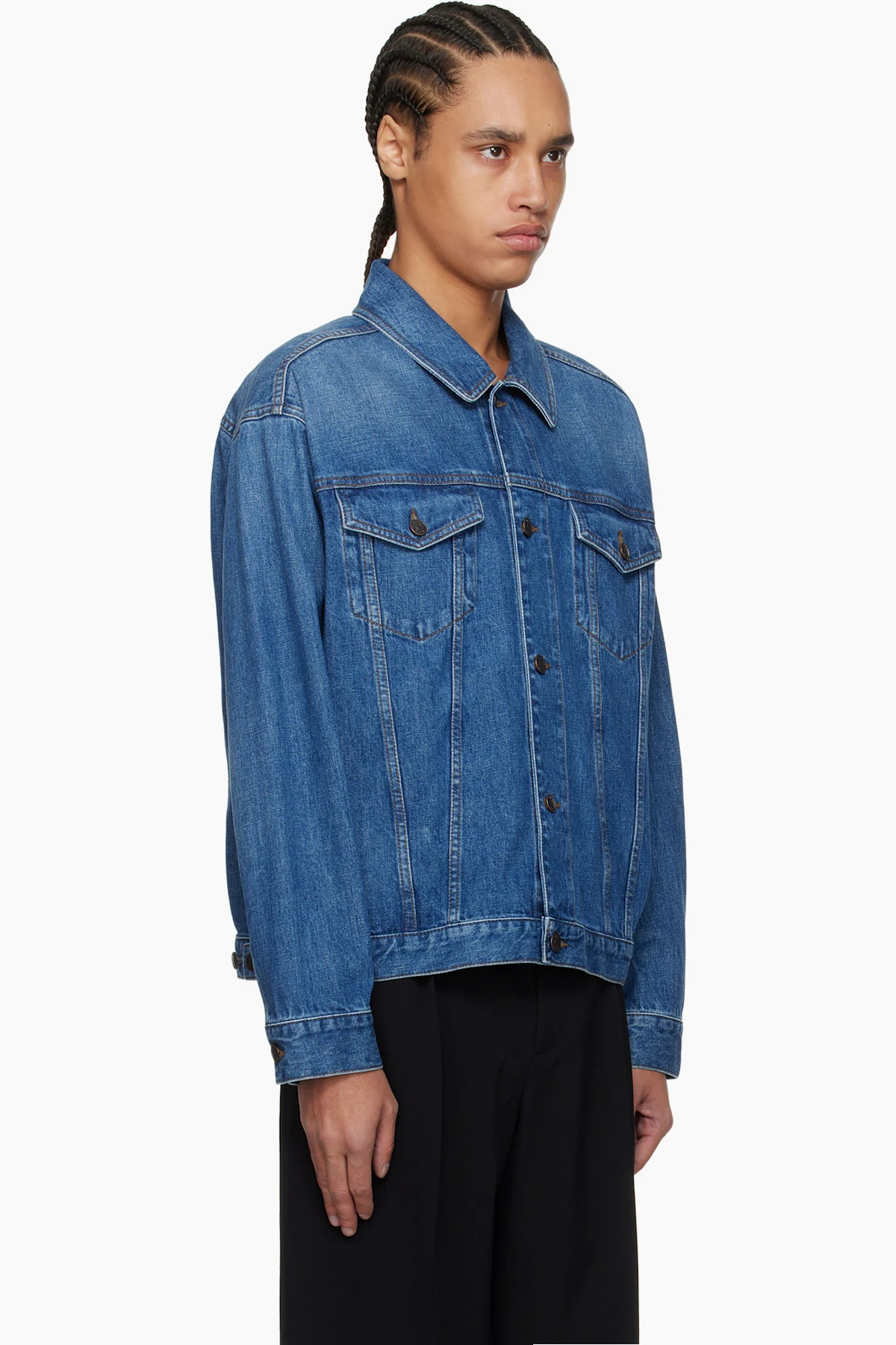 Non-stretch denim jacket. Fading throughout.