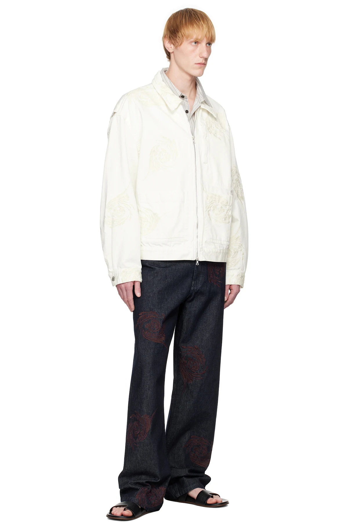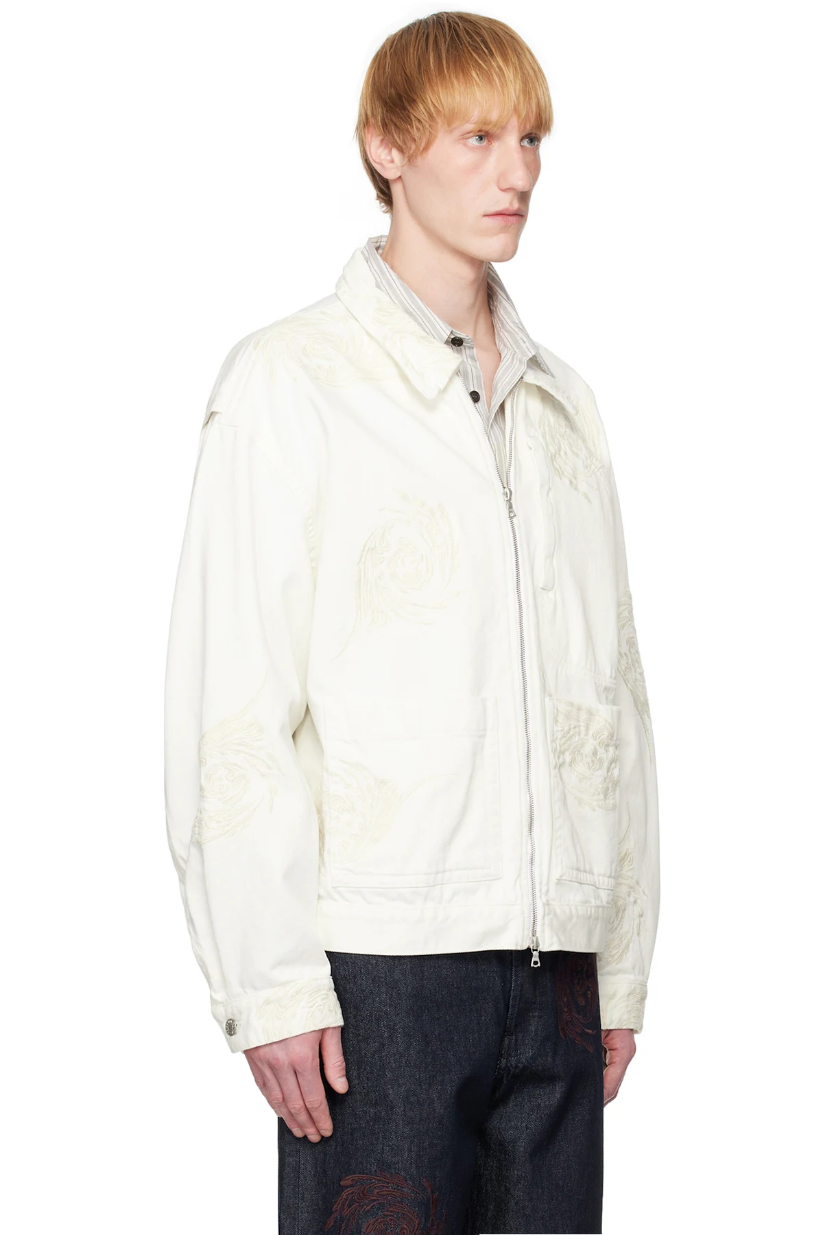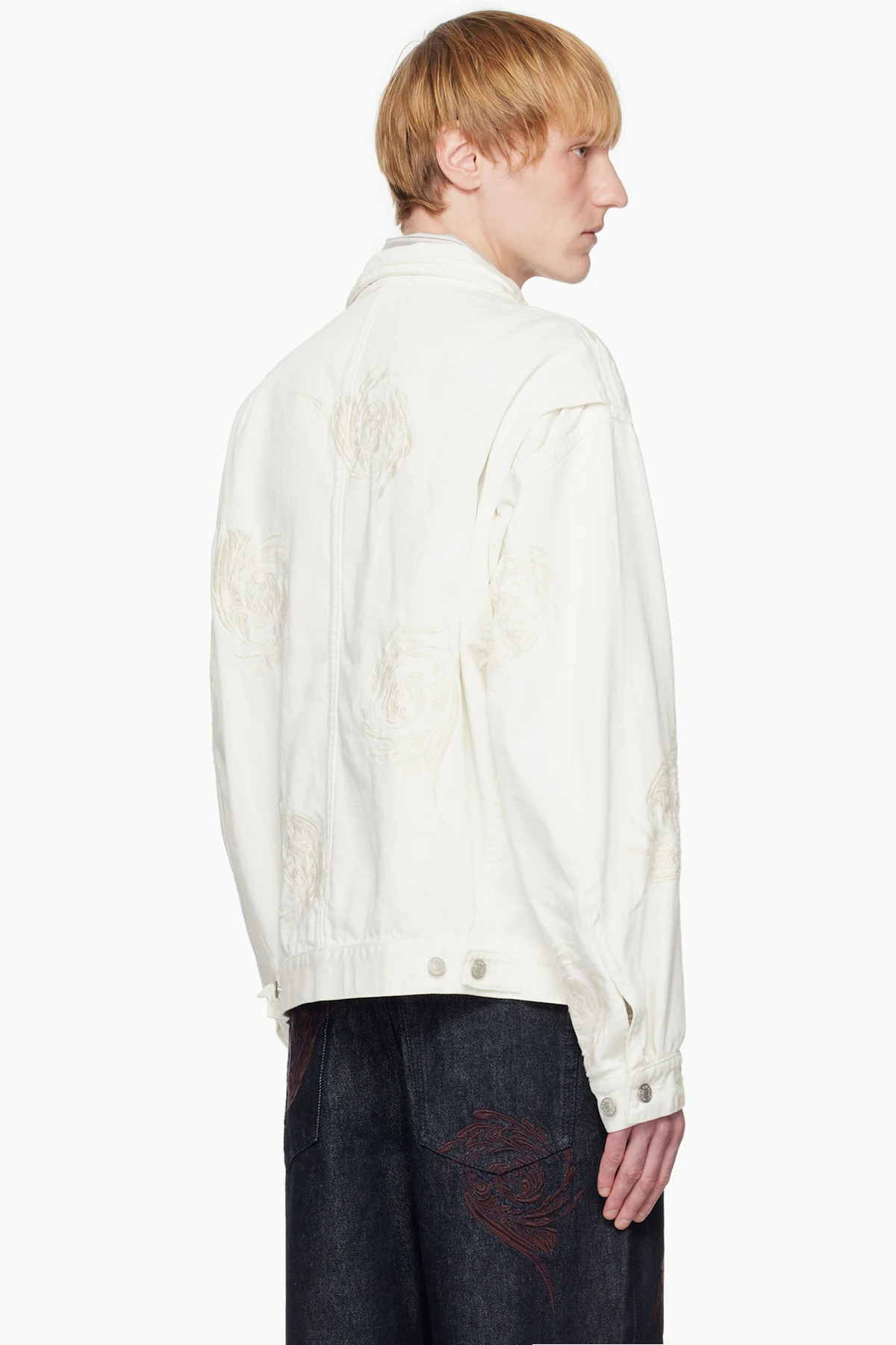Non-stretch denim jacket. Embroidered graphic pattern throughout.