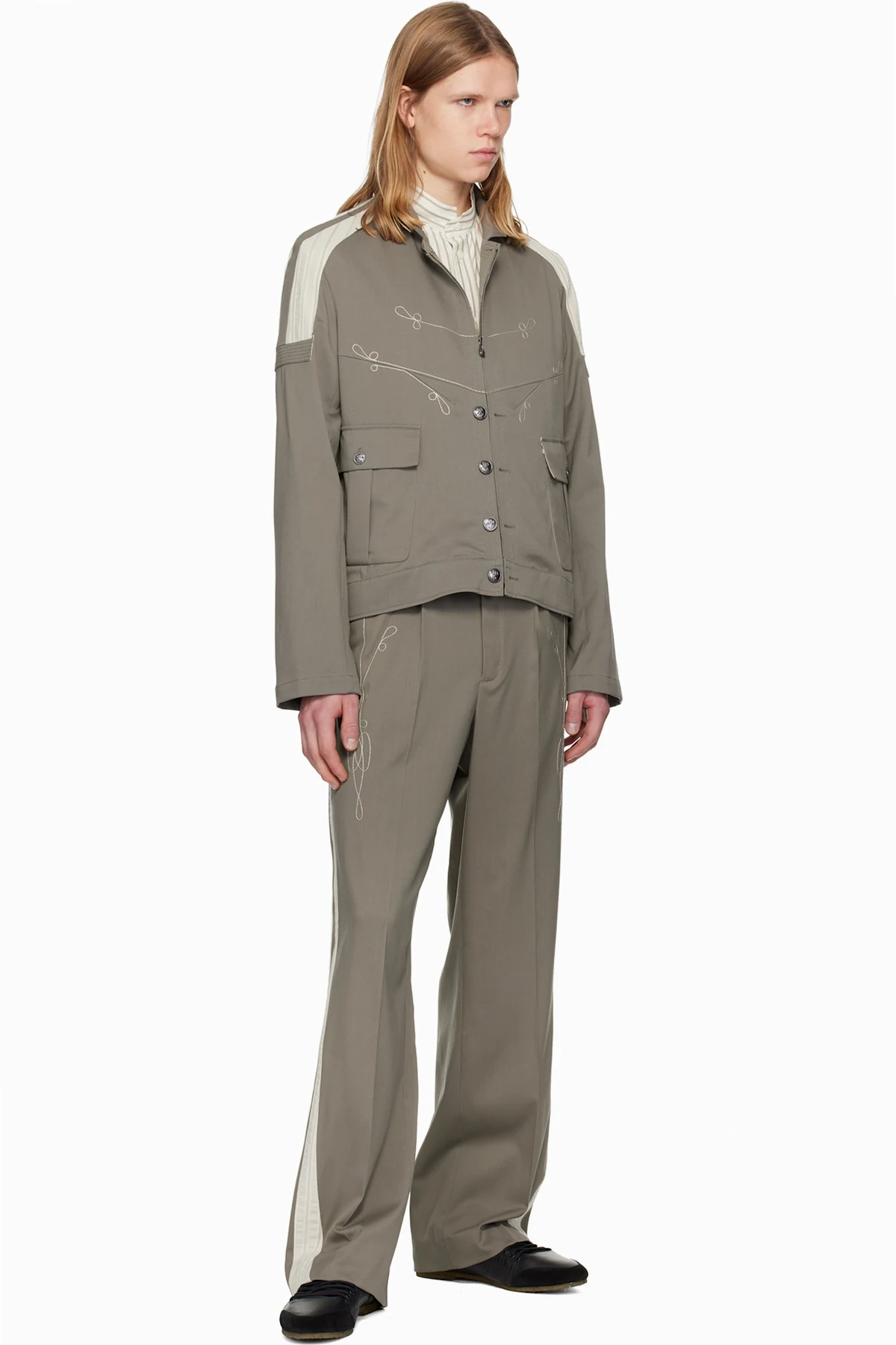 · Embroidered detailing at chest and side seams