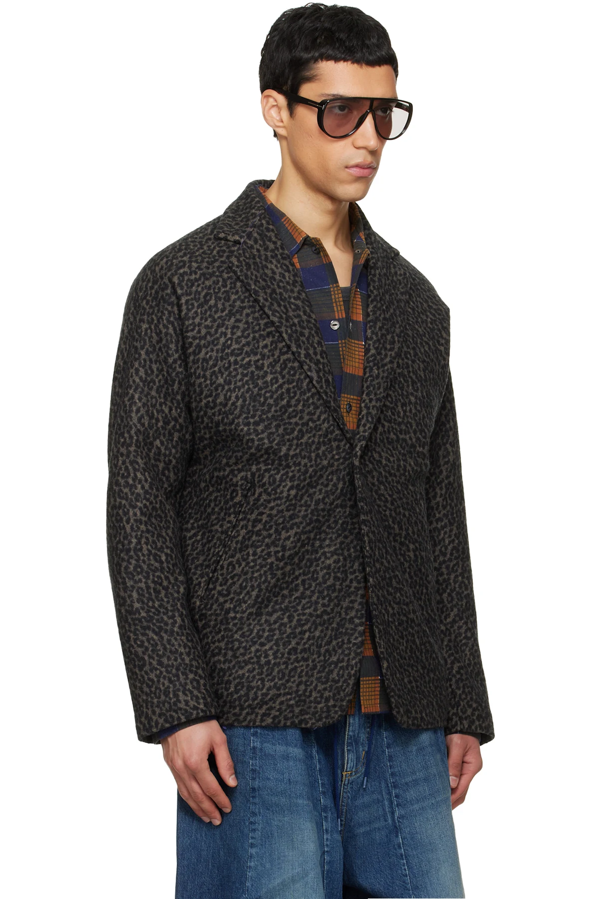 checked-pattern single-button blazer