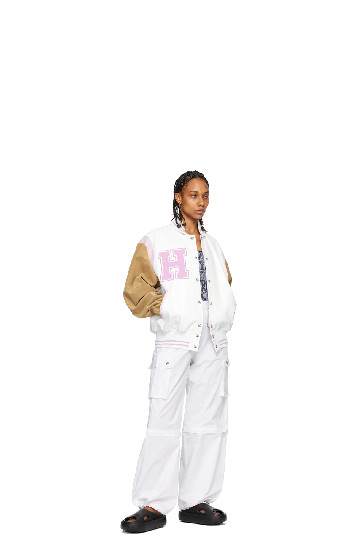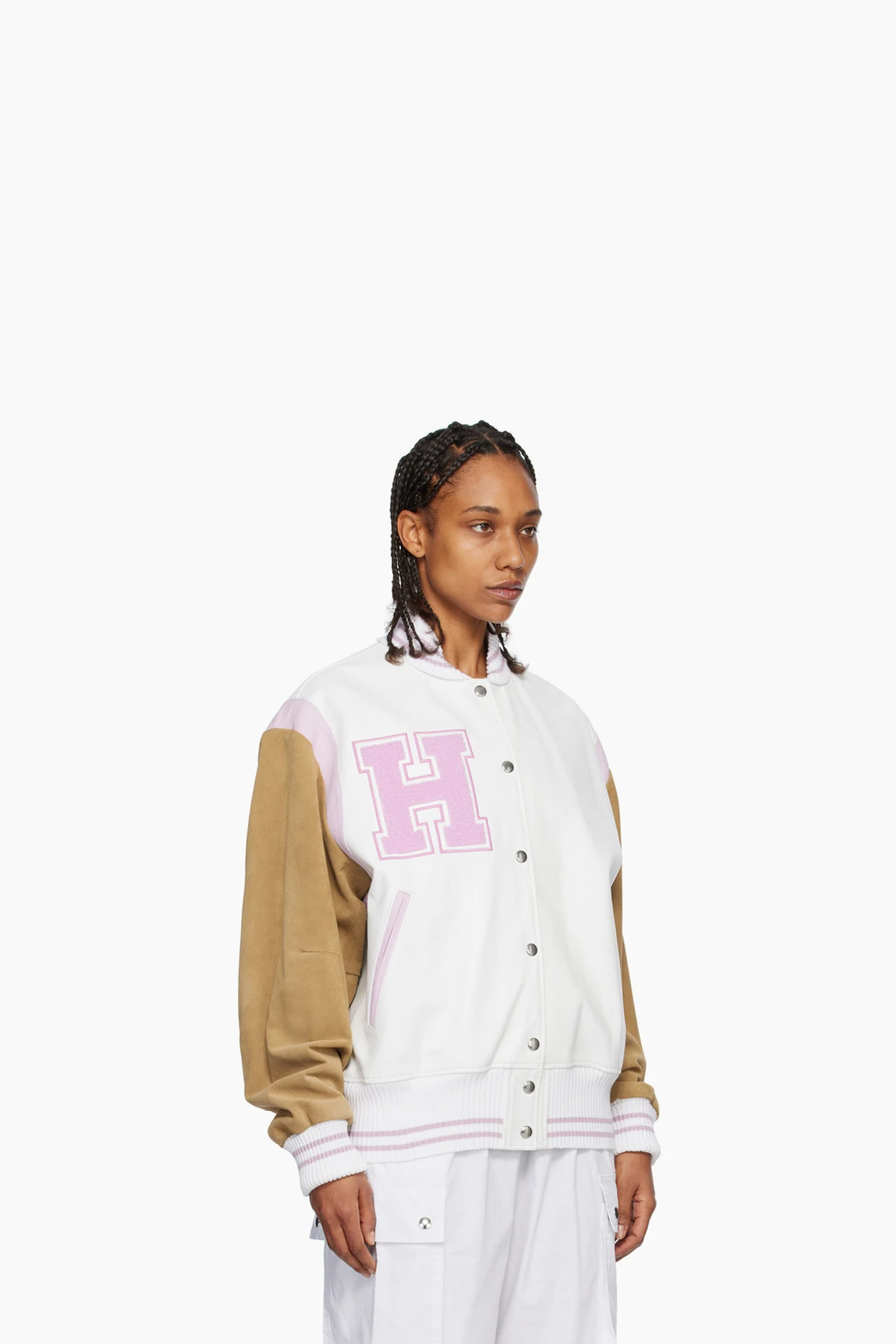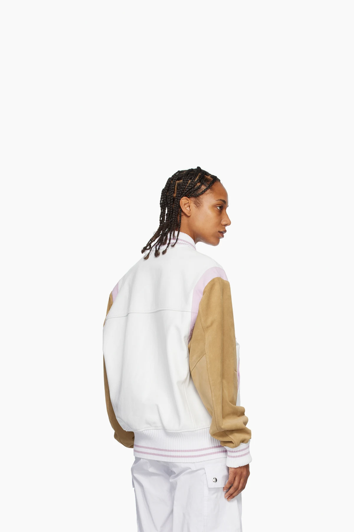 White & Pink Paneled Bomber Jacket
