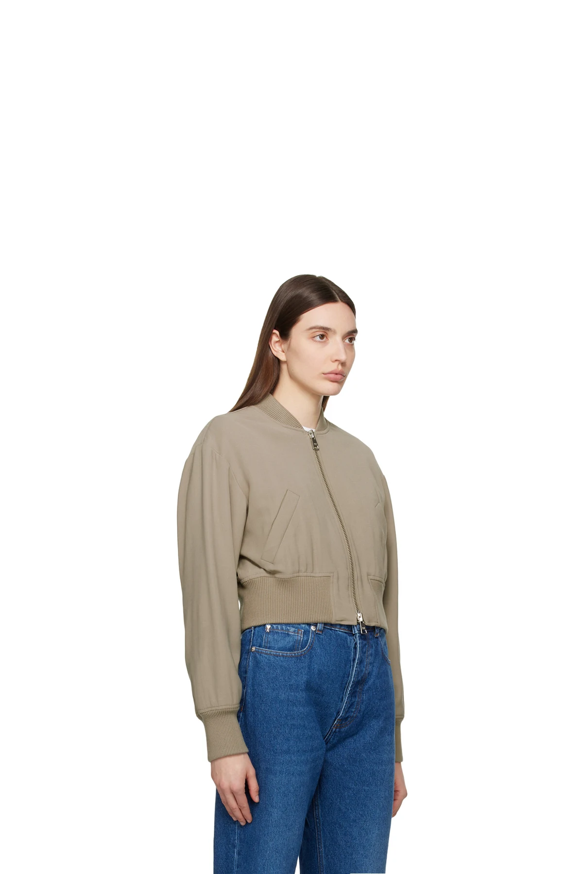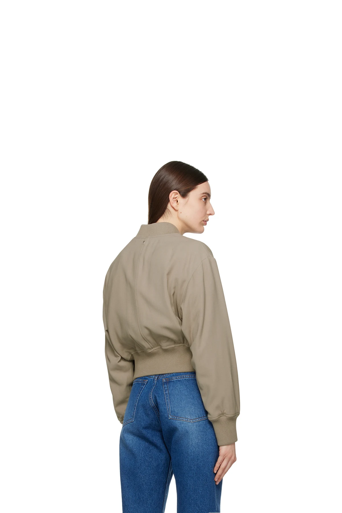 · Rib knit stand collar, hem, and cuffs