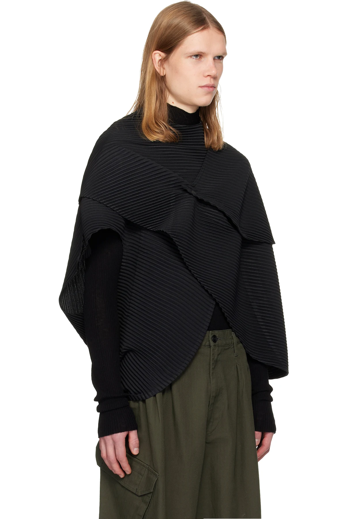 Garment-pleated tricot vest.