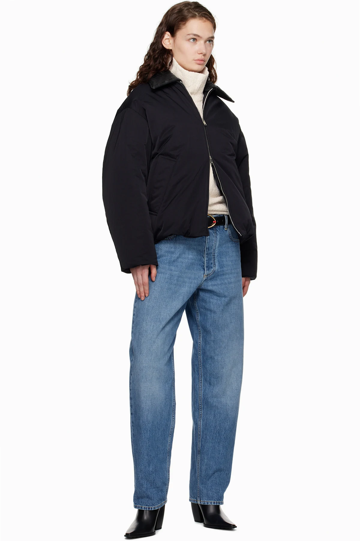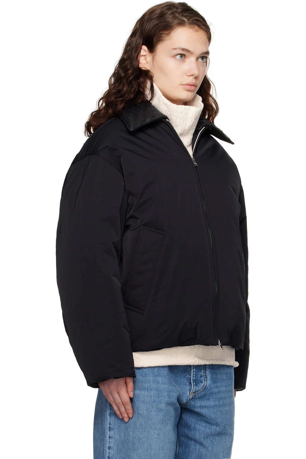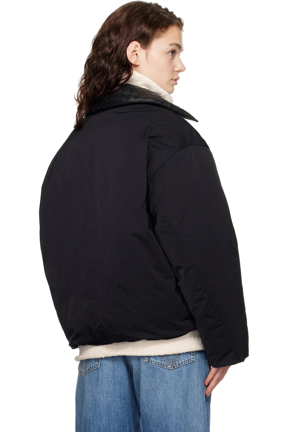 Down-filled nylon taffeta jacket. Detachable intrecciato-woven lambskin trim at spread collar.