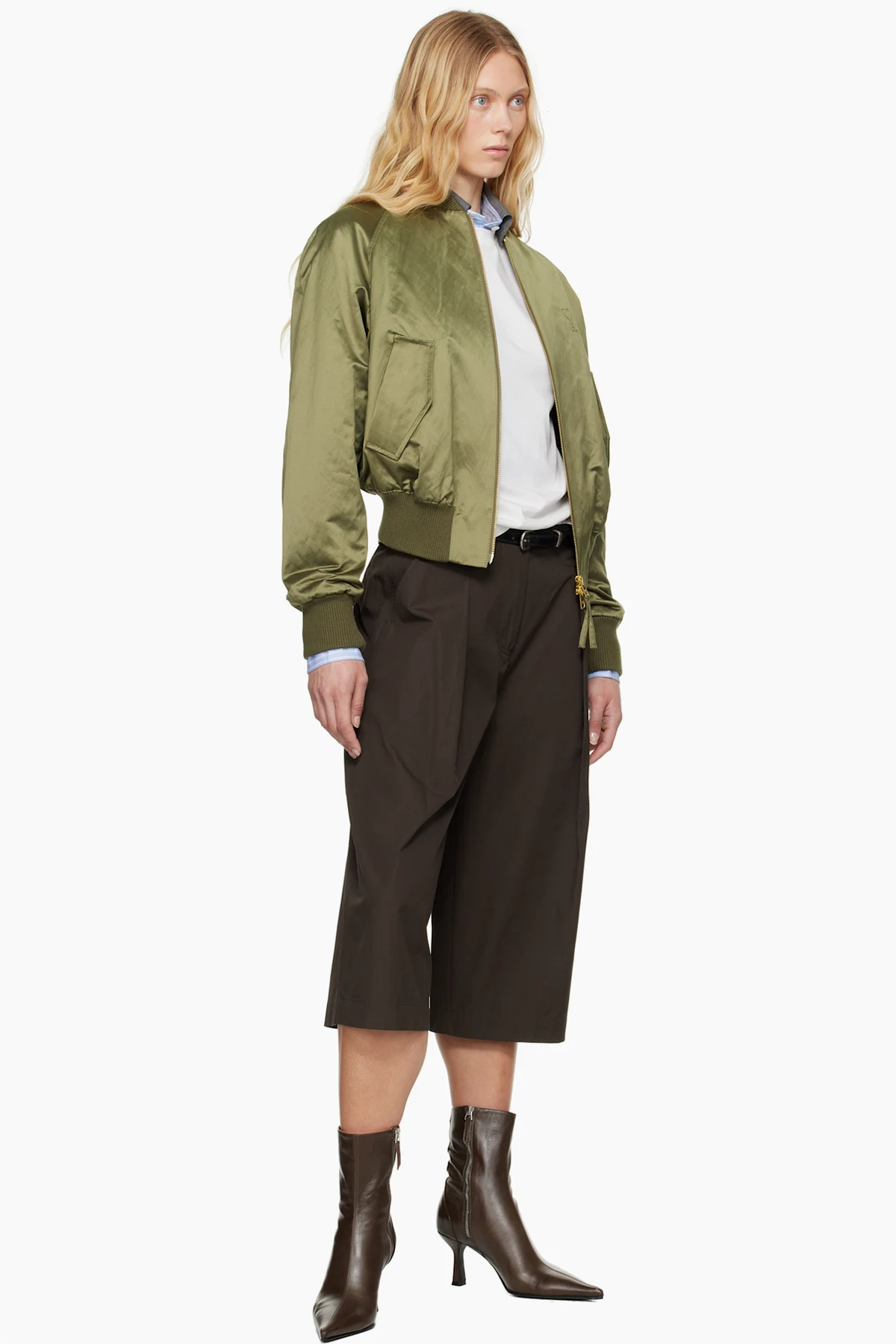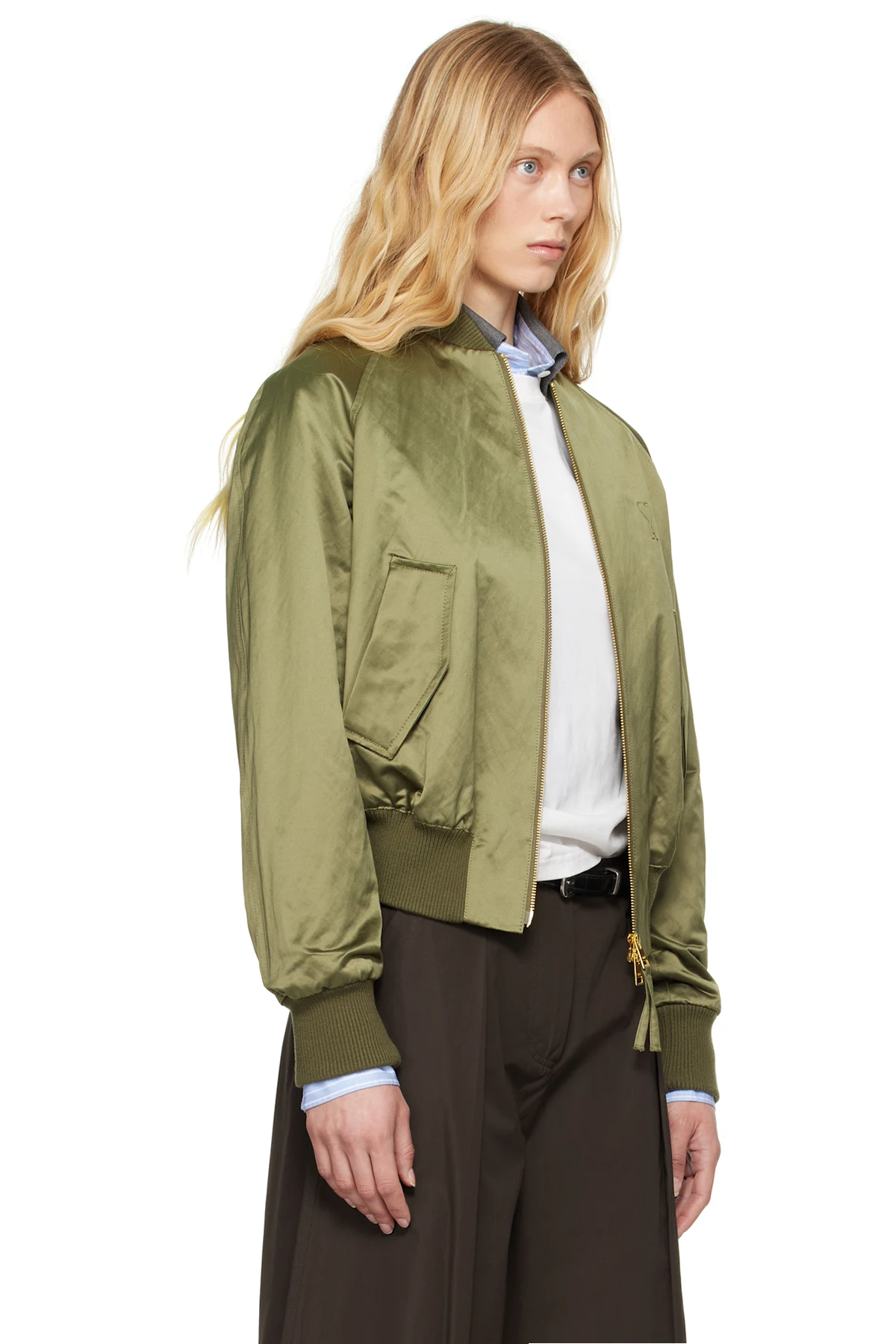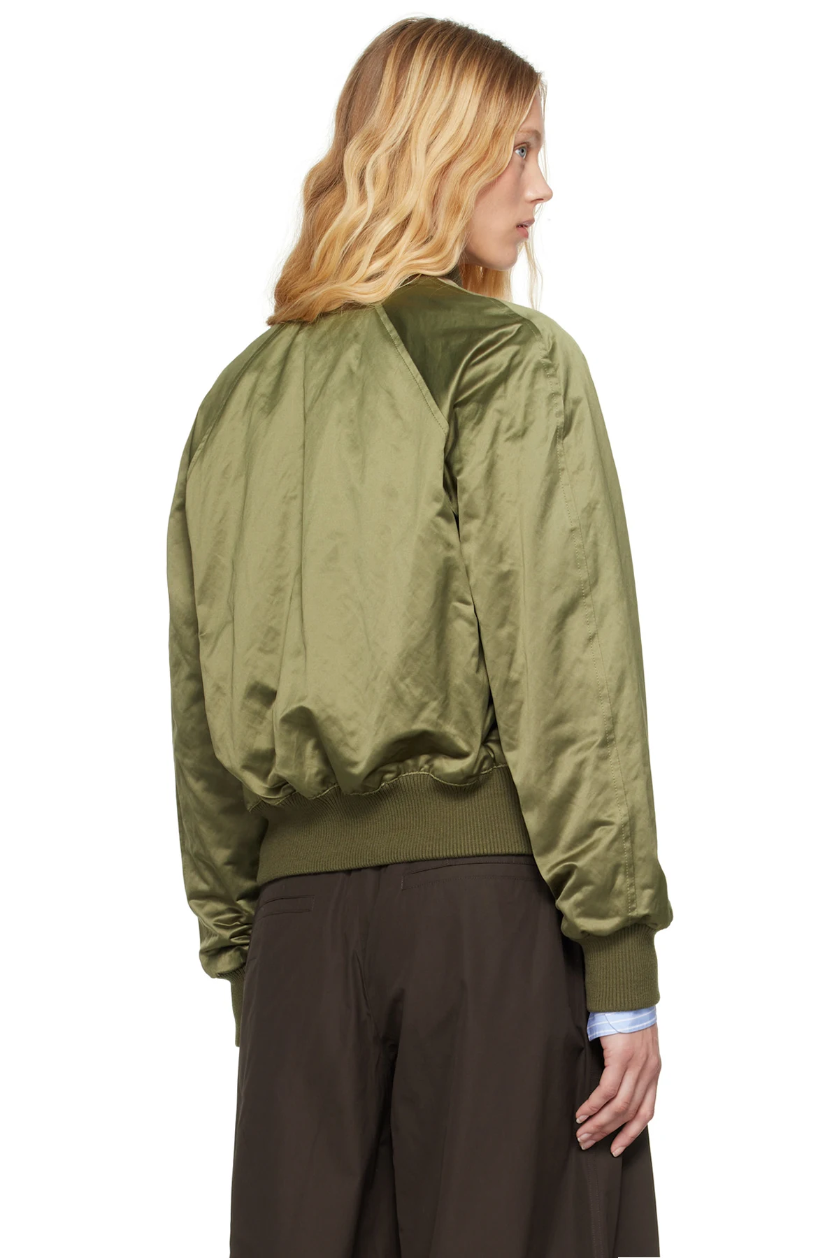 Green Cotton Satin Ami de Coeur Bomber Jacket