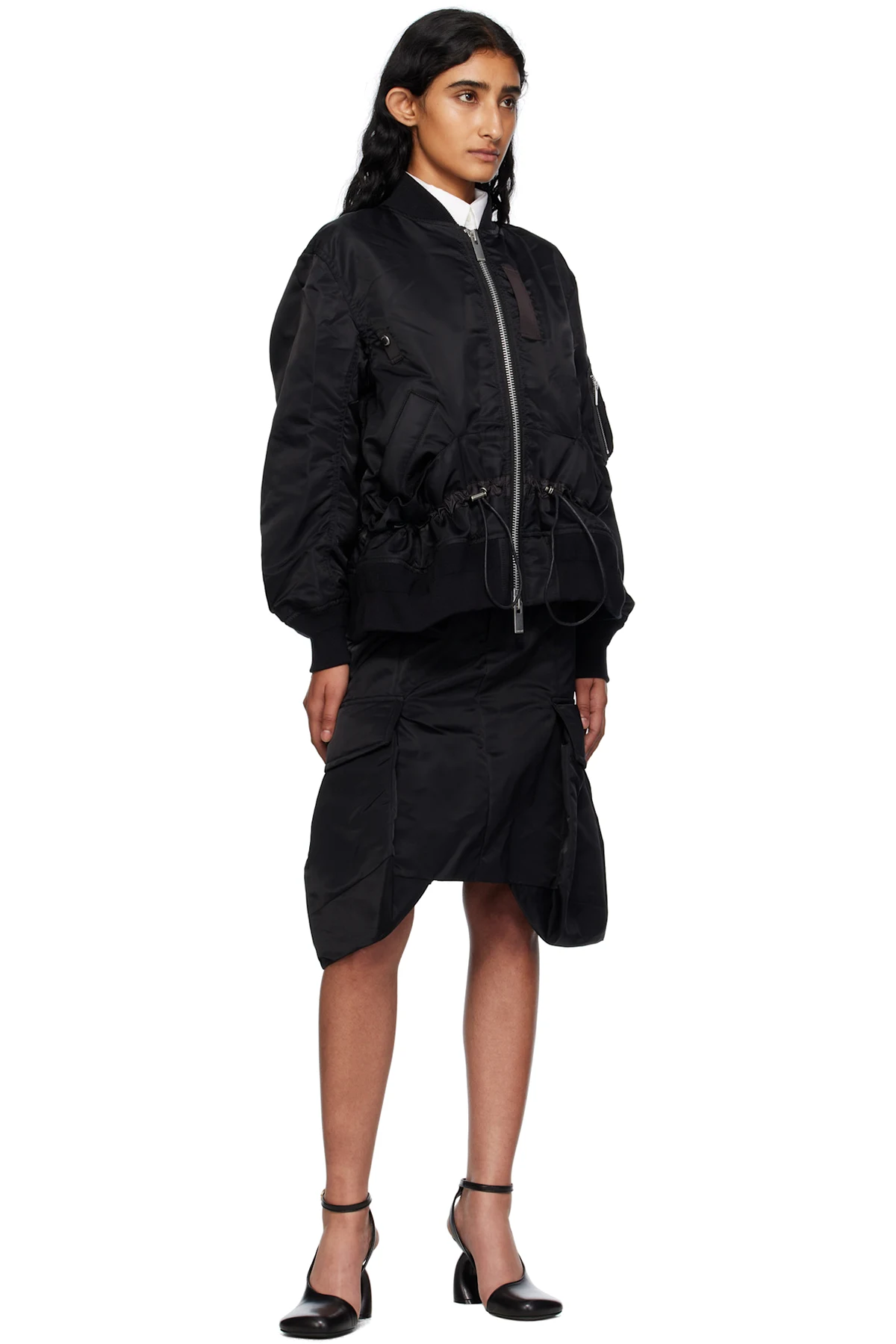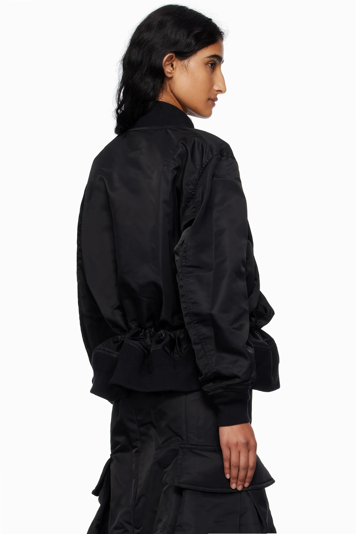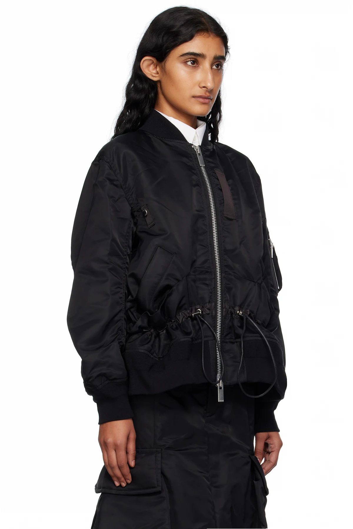 Black Nylon Twill Blouson Bomber Jacket