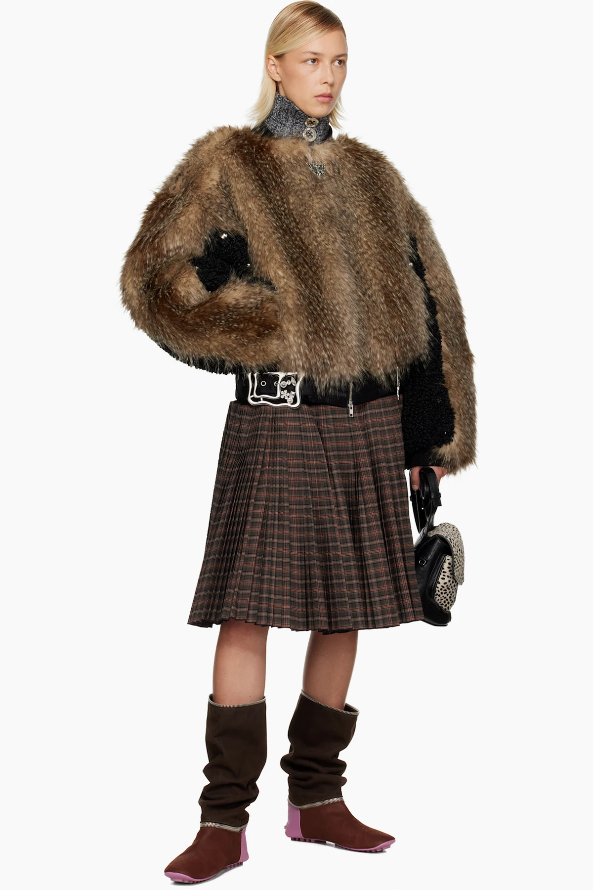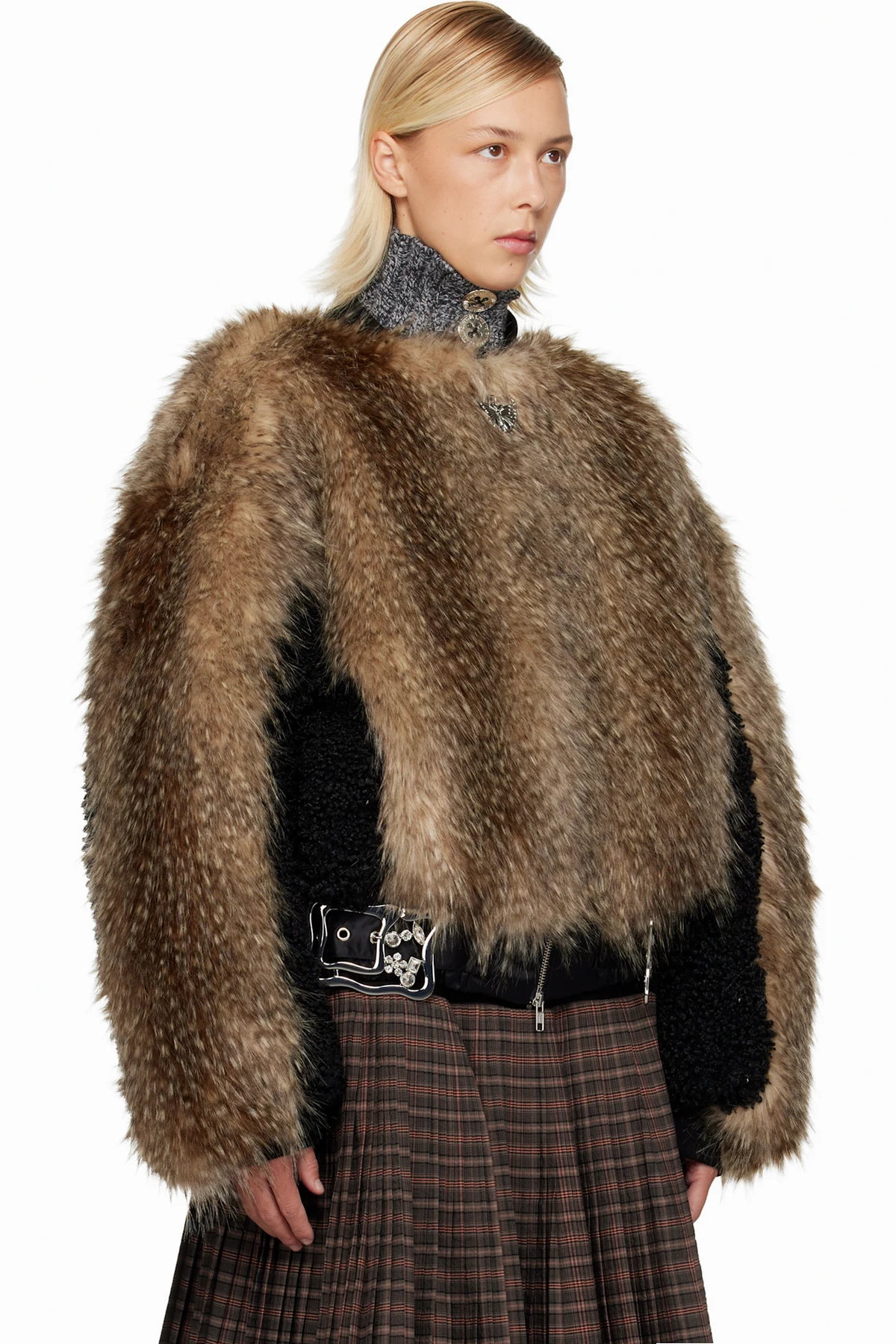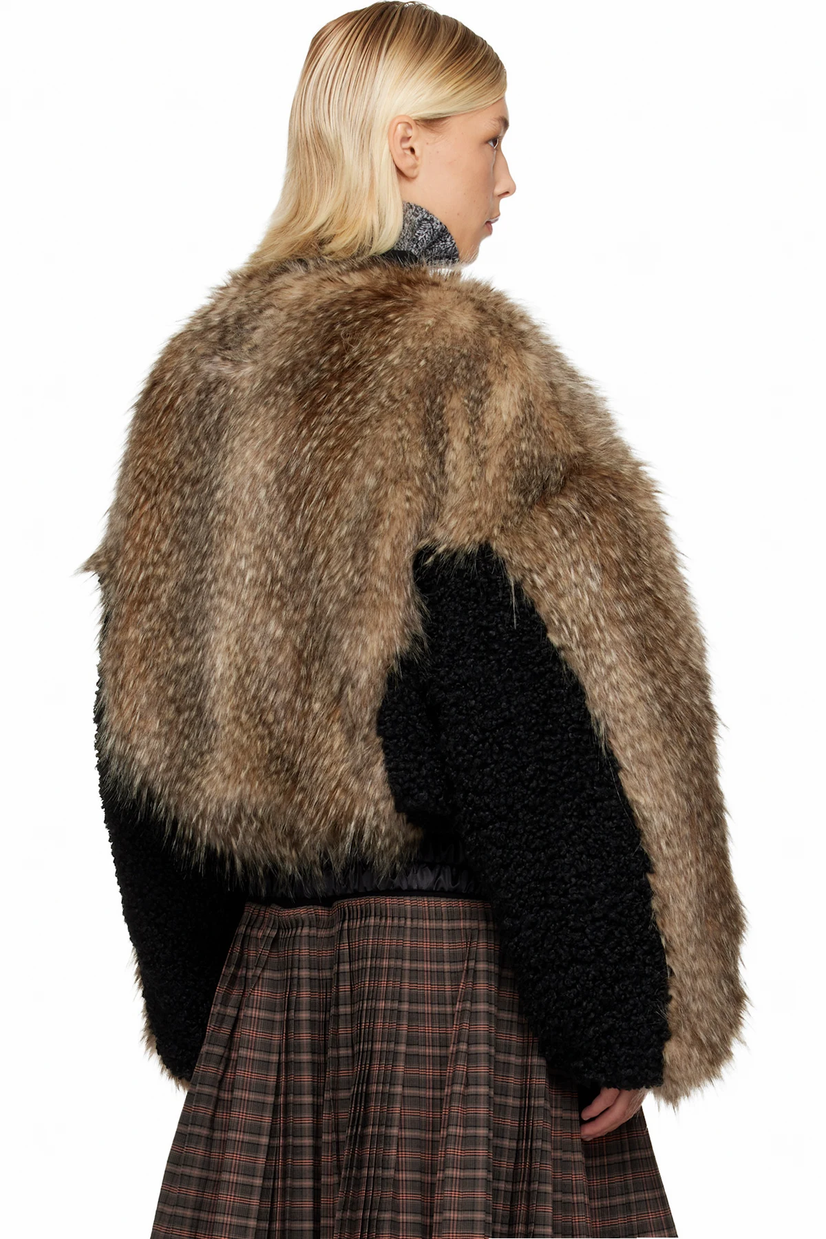 Black & Beige French Kiss Faux-Fur Bomber Jacket