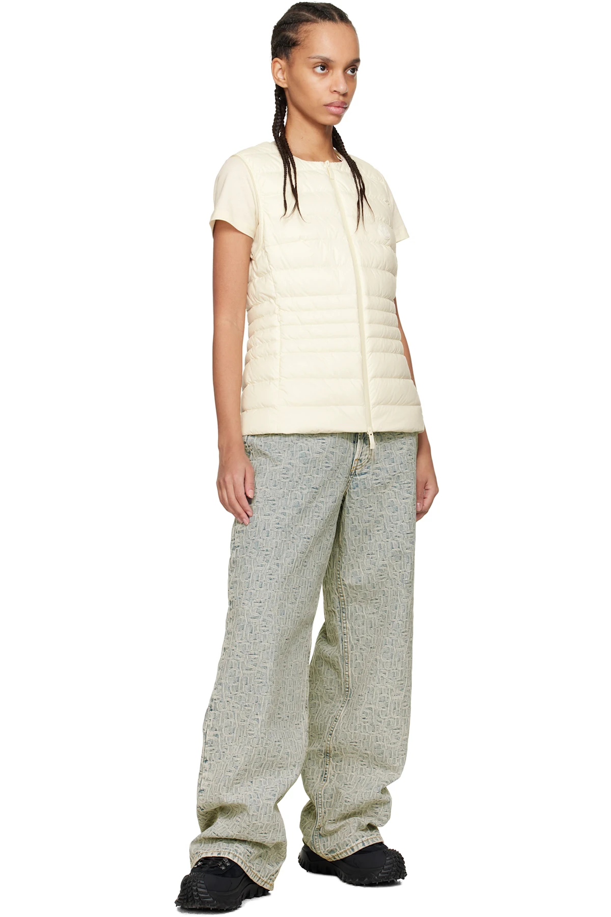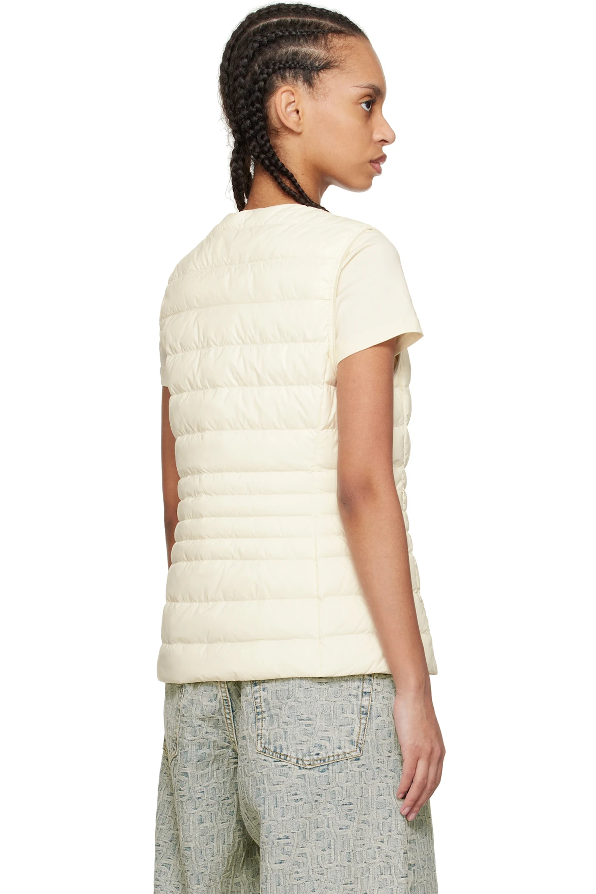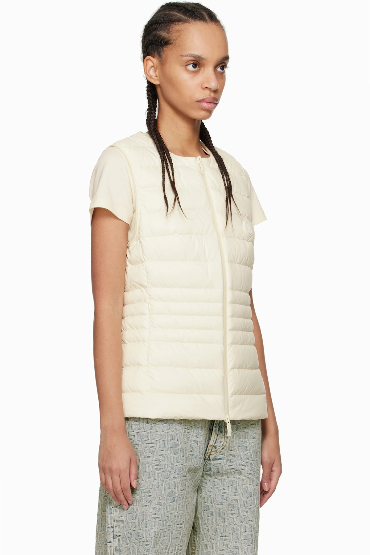 Down-filled and quilted lightweight recycled nylon taffeta vest.
